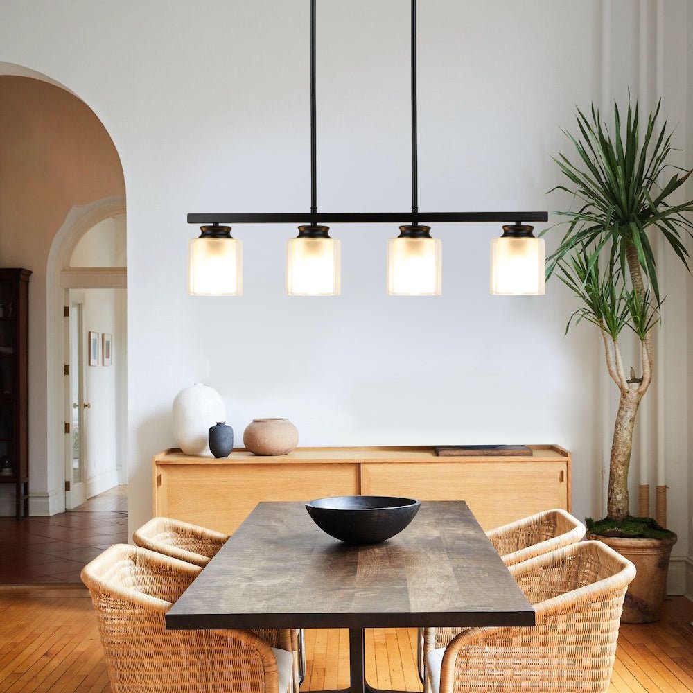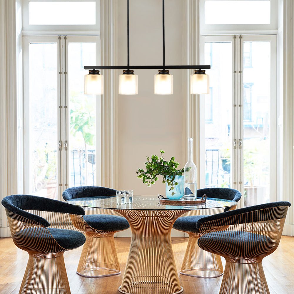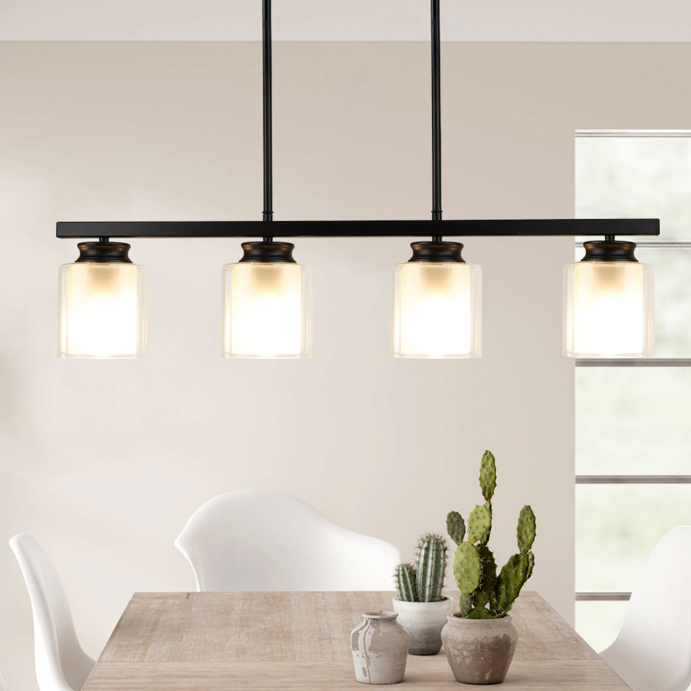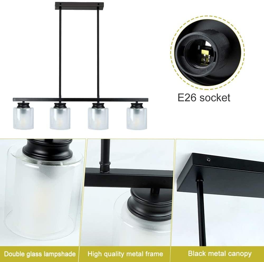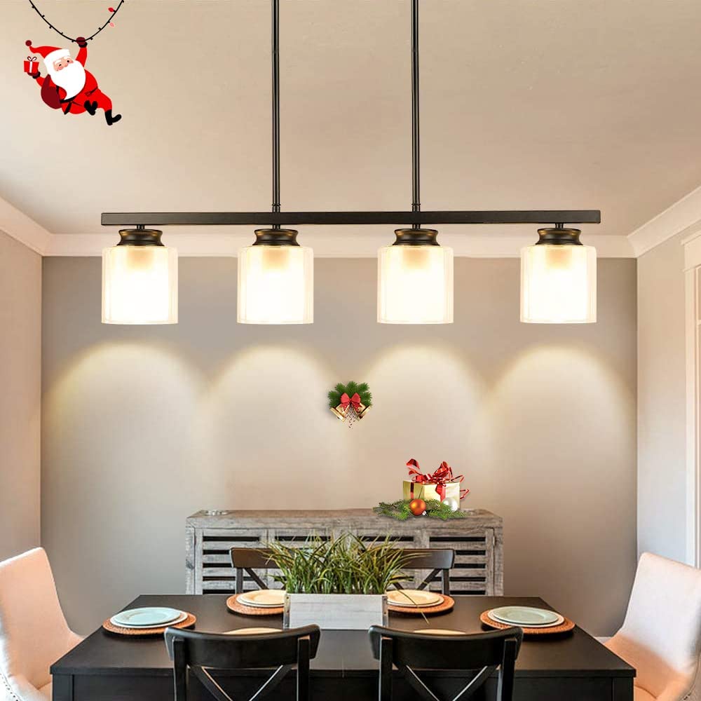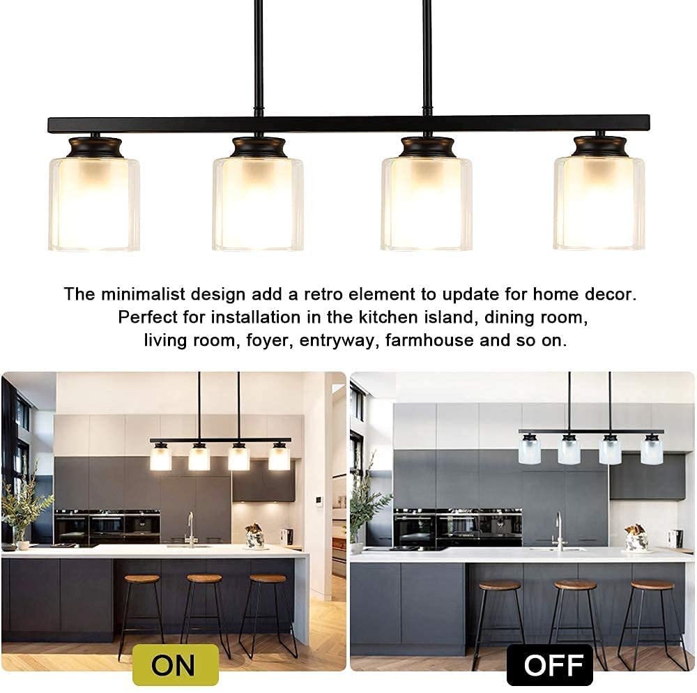DINGLILIGHTING Kattovalaisin, Vintage 4-vaalea mattamusta metalliriippuvalaisin kaksoislasivarjostimilla, osittain upotettava teollisuuskattokruunu keittiösaarelle, ruokailu, ravintola, kahvila