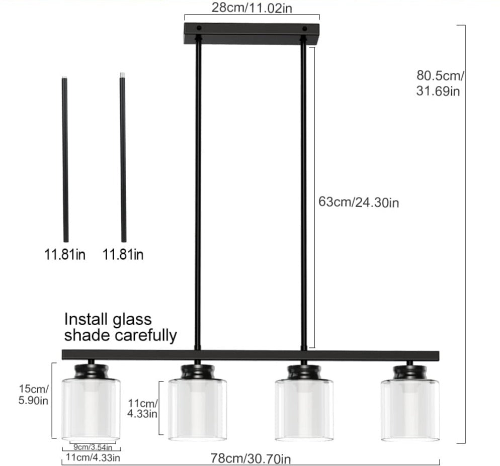 - 【Riippuvalaisimen koko】 Kattokatos: L 11,02 x L 4,5 x K 0,99 tuumaa. Kokonaispituus: 31,69 tuumaa, kokonaisleveys: 30,7 tuumaa, lampunvarjostin: L 4,33 x K 5,9 tuumaa. (Ei-säädettävä)