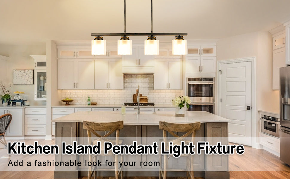 DLLT Kitchen Island riippuvalaisin, 4 valoa metalliset maalaistalon kattokruunut, vintage uppoasennettava kattovalaistus lasivarjostimella ruokasaliin, eteiseen, ravintolaan, baariin