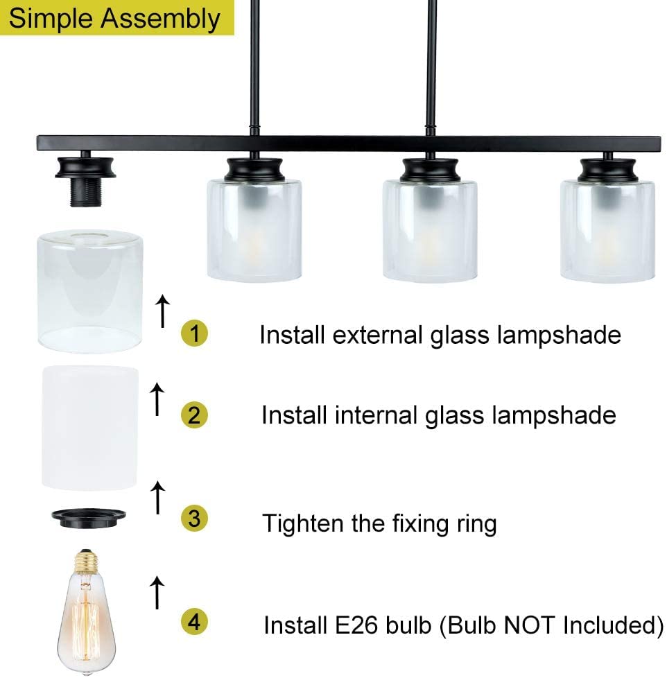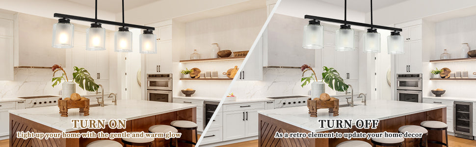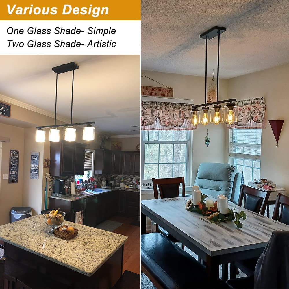 - 【Vintage Industrial Style】Mustat kattokruunut, joissa on 4 kirkasta lasisävyä ja 4 himmeä lasisävyä, lisäävät retroelementin kodin sisustuksen päivittämiseen. Se on täydellinen kattovalaisin asennettavaksi keittiösaarekkeeseen, ruokasaliin, makuuhuoneeseen, olohuoneeseen, eteiseen ja mihin tahansa huoneeseen, josta haluat.