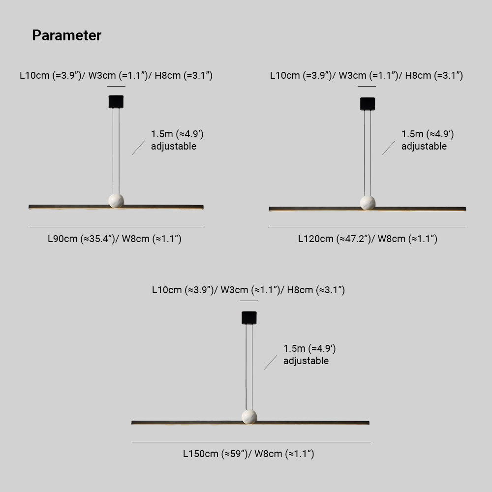 Reunariippuvalaisin 2 väriä, metallia ja marmoria, 35,4"/47,2"/59"