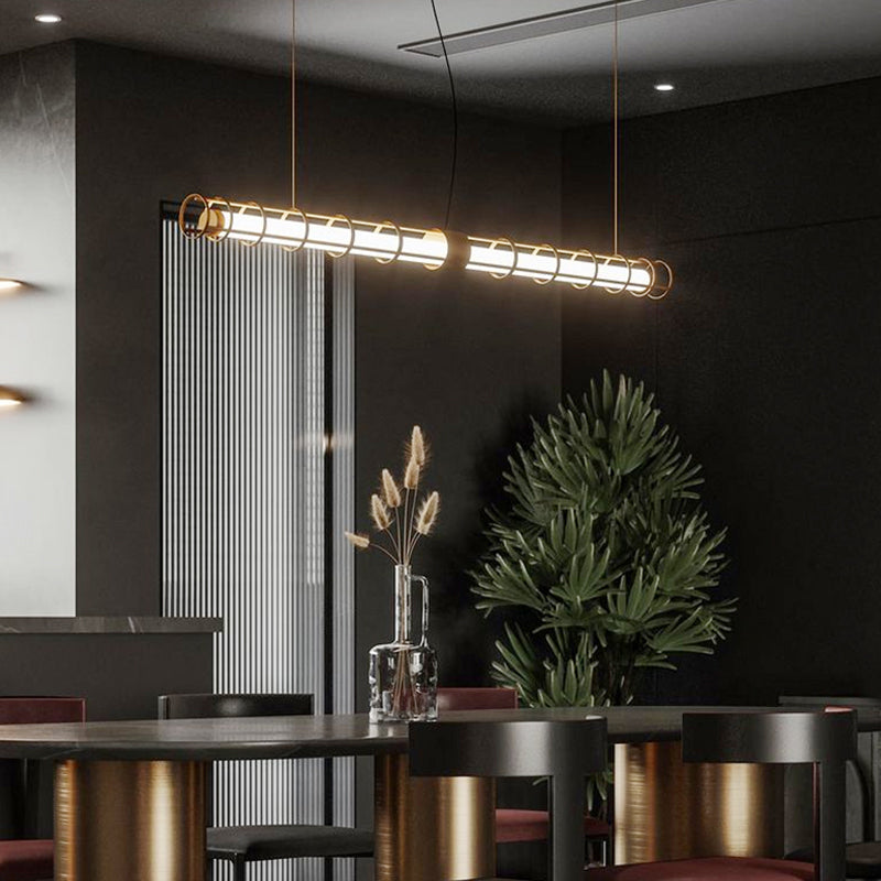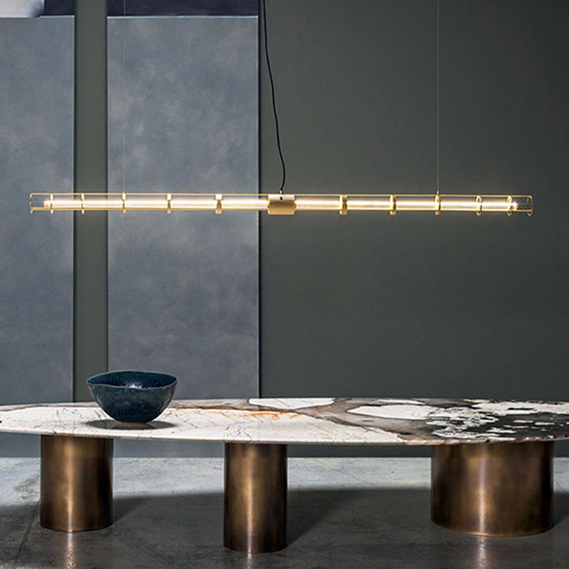 Edge-moderni, minimalistinen lineaarinen metalli-/lasiriippuvalaisin, kulta