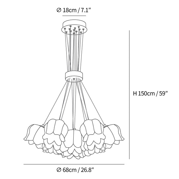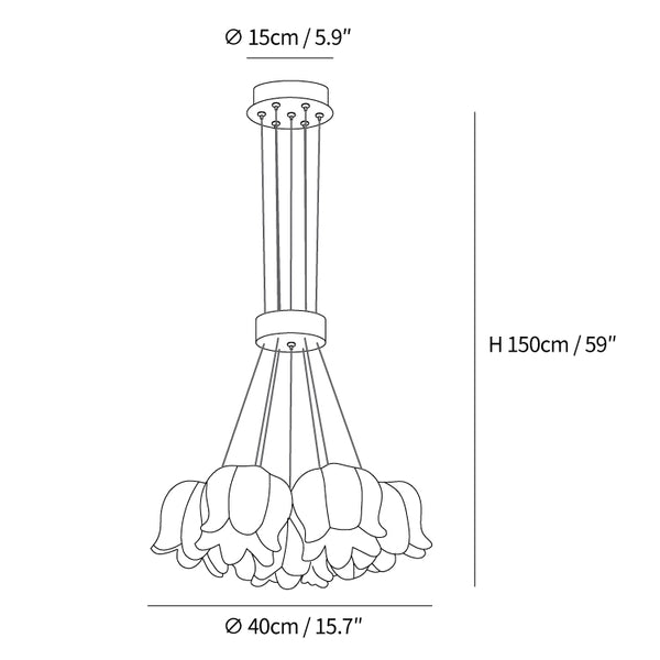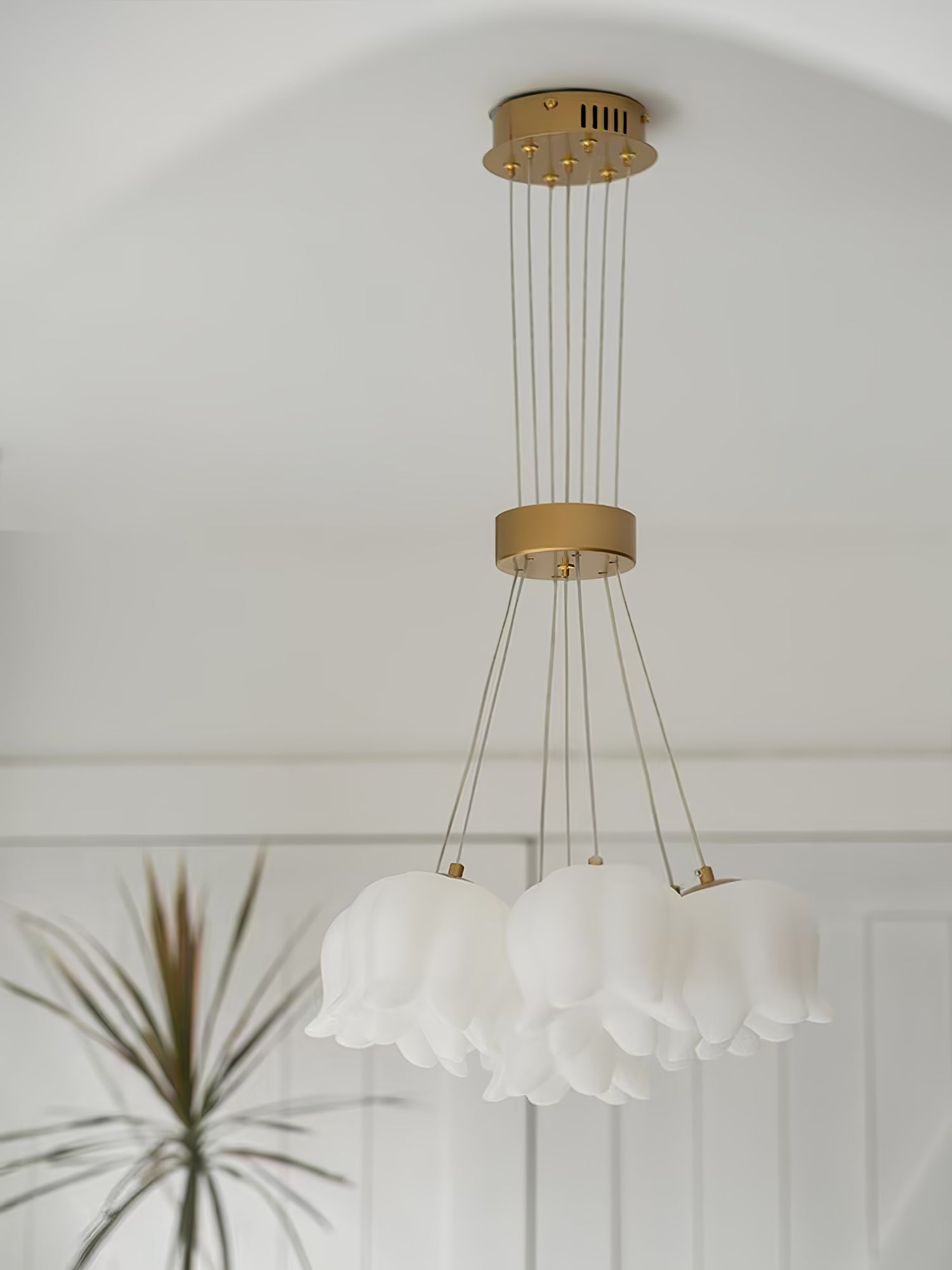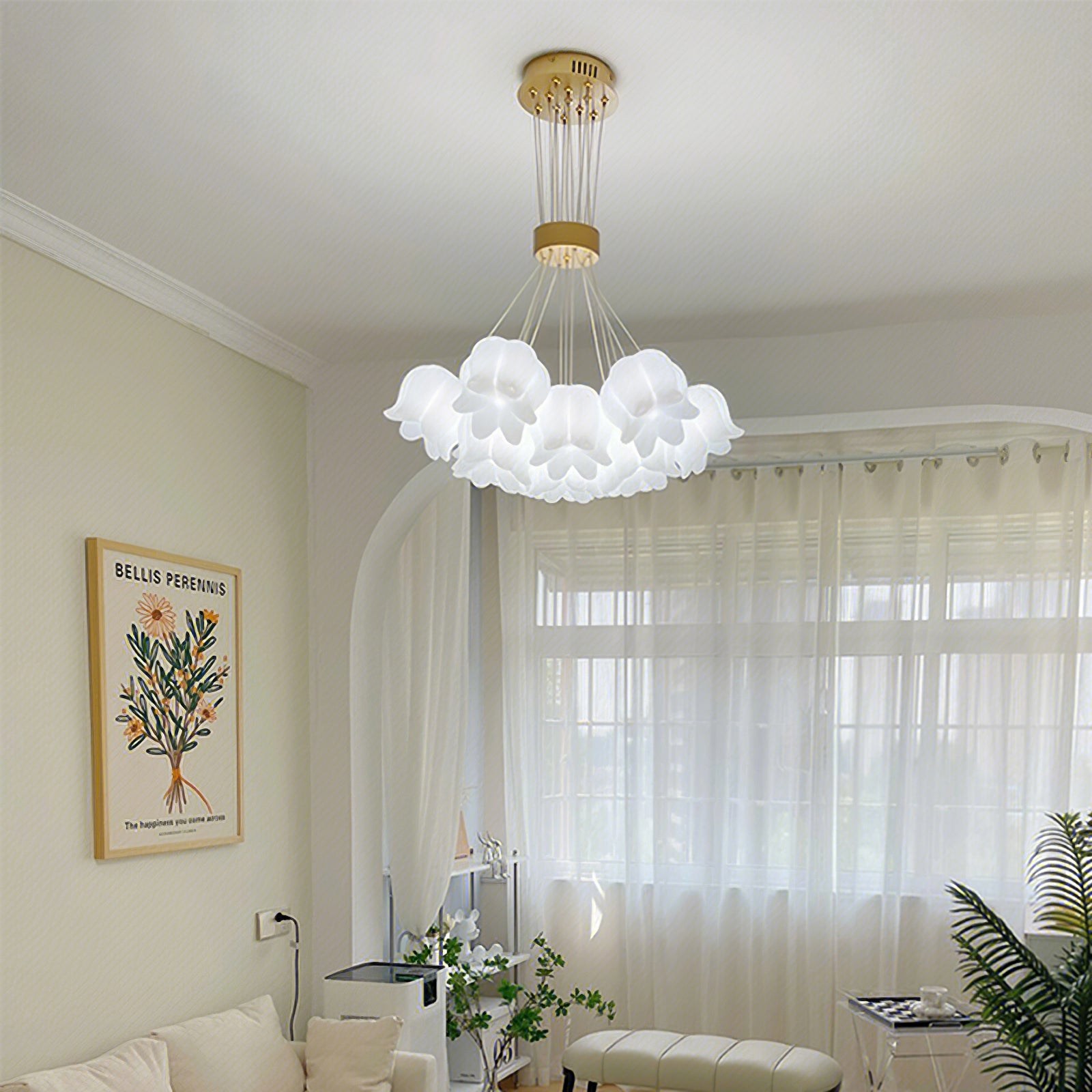 Elegant Floral Pendant Light on upea riippuvalaisin, joka tunnetaan tyylikkäästä muotoilustaan ja kukkamaisesta varjostimestaan. Tämä riippuvalaisin yhdistää moderneja ja luonnollisia elementtejä tuomaan ripauksen romantiikkaa ja eleganssia mihin tahansa sisätilaan. Lampunvarjostimessa on kukkakuvio ja herkät terälehdet, jotka säteilevät pehmeää ja lempeää valoa luoden lämpimän ja romanttisen tunnelman.