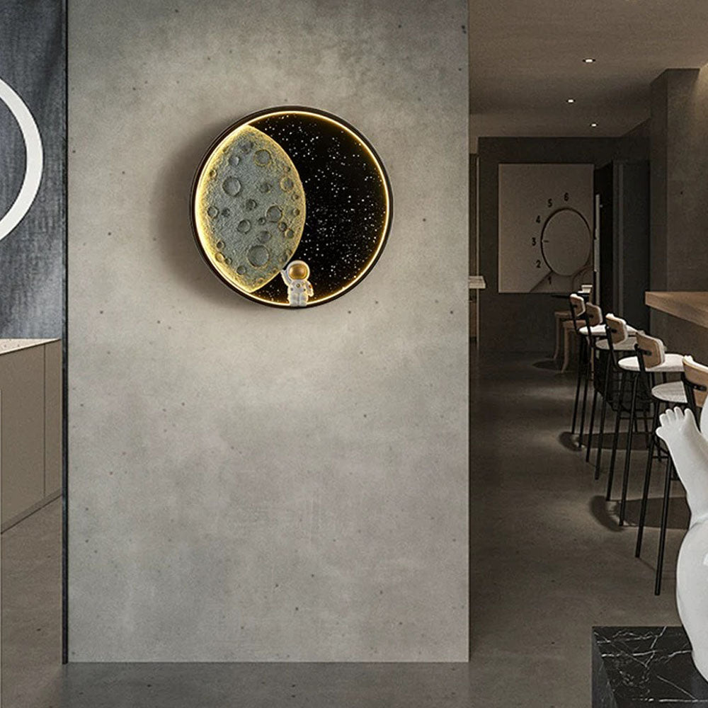 - Tässä seinävalaisimessa yhdistyvät universumin elementit moderniin muotoiluun korostaen alkuperäistä ja luovaa muotoilutyyliä.