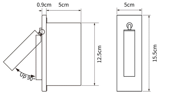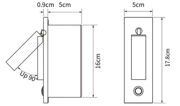 Vie vähän tilaa, koska suljettuna se istuu samalla tasolla seinän kanssa. Se voidaan asentaa kumpaan tahansa suuntaan. Yksi tämän liitoskappaleen pääominaisuuksista on se, että kiinnitys toimii kytkimenä – lamppu syttyy välittömästi, kun vedät sen ulos huuhteluasennosta, ja sammuu, kun sitä työnnetään taaksepäin.