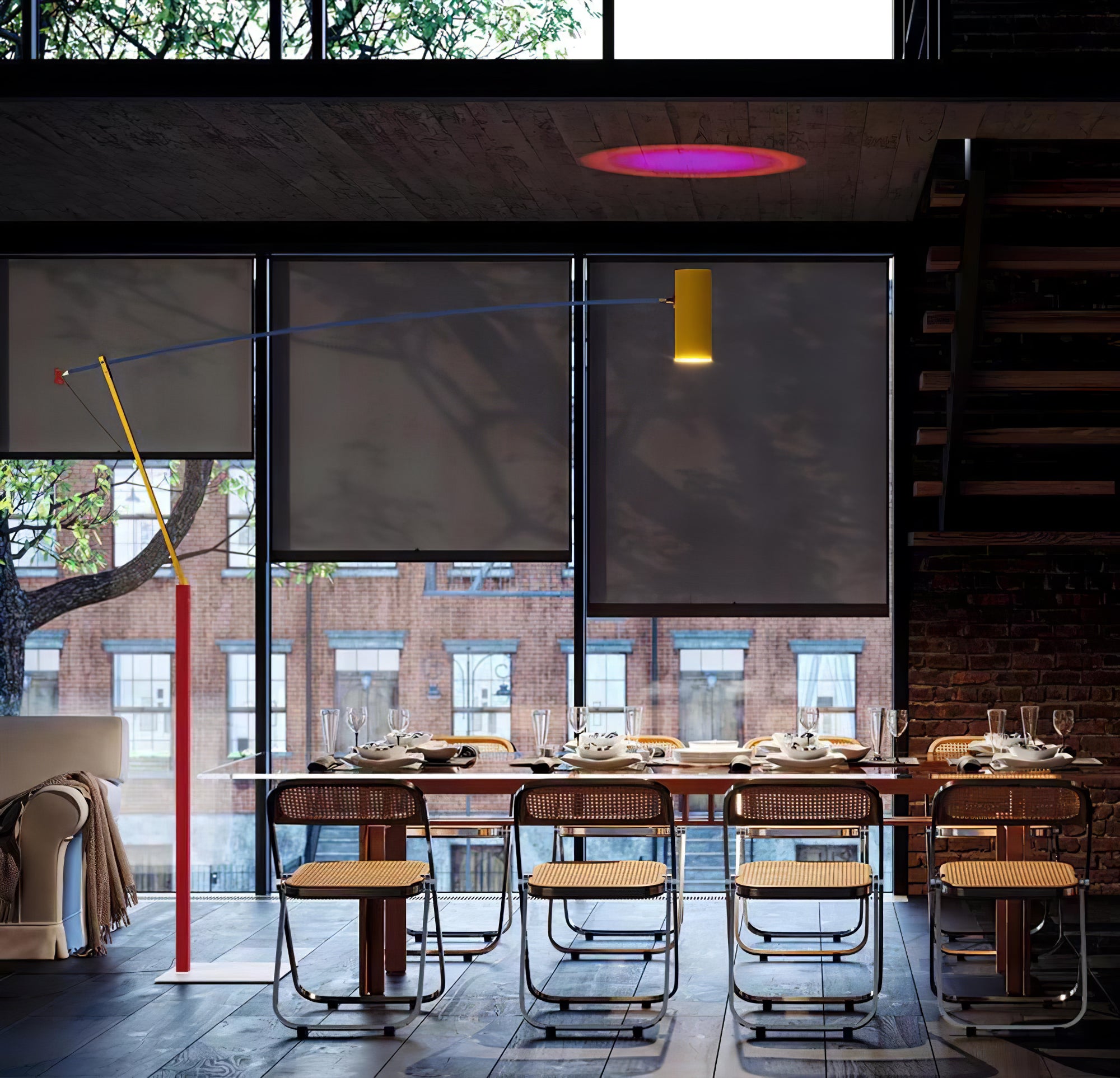 Ettorino-lattiavalaisimessa on sekoitus elegantteja päävärejä ja innovatiivinen patenttijärjestelmä, joka luo yksinkertaisen mutta tarkan ilmeen. Sen tunnusmerkki on punaisen tanssivan hahmon toiminnallinen yksityiskohta. Valaisin on suunniteltu valaisemaan riittävästi työpintoja, koska se on säädettävä ja käännettävä. Sen väriä käytetään välittämään uudestisyntymistä ja iloa.
