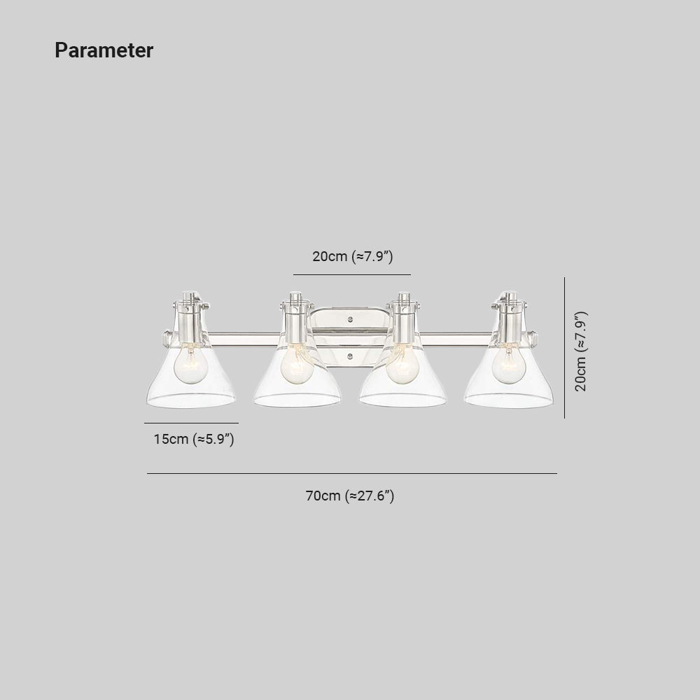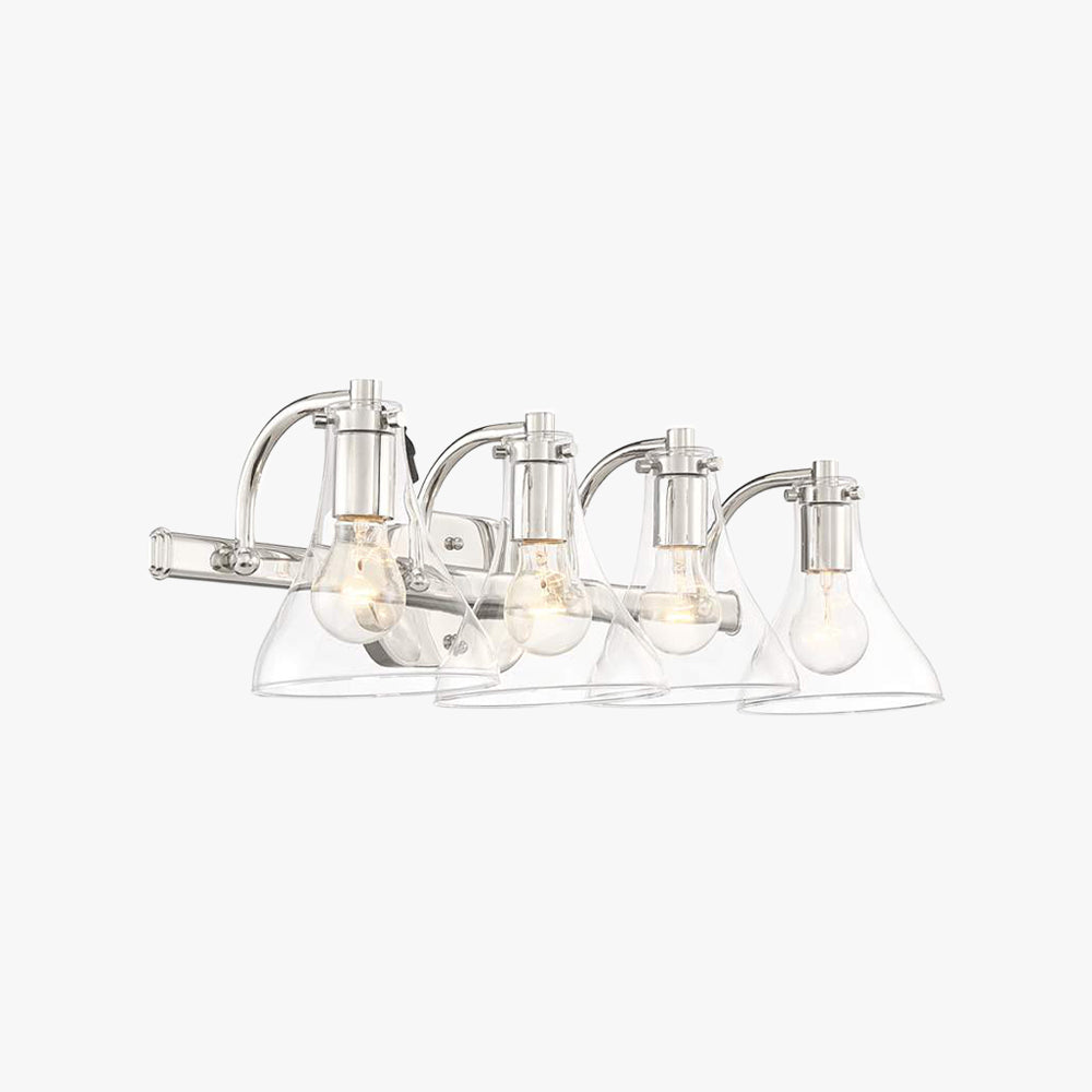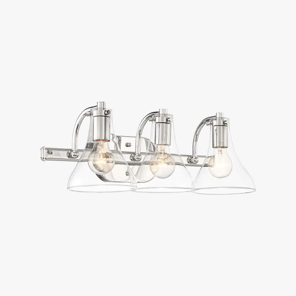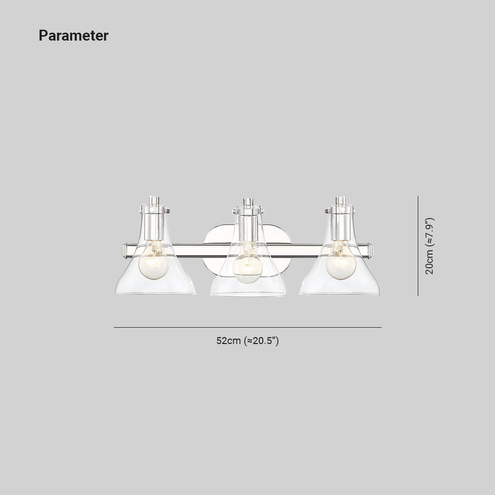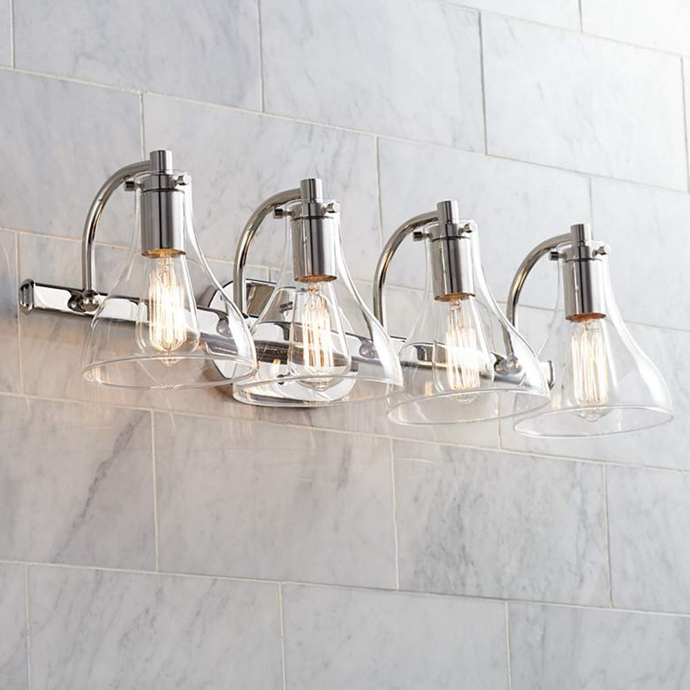 Eyrn-seinävalaisin moderni, metalli-/lasipeili edessä turhamaisuus, hopea, kylpyhuone