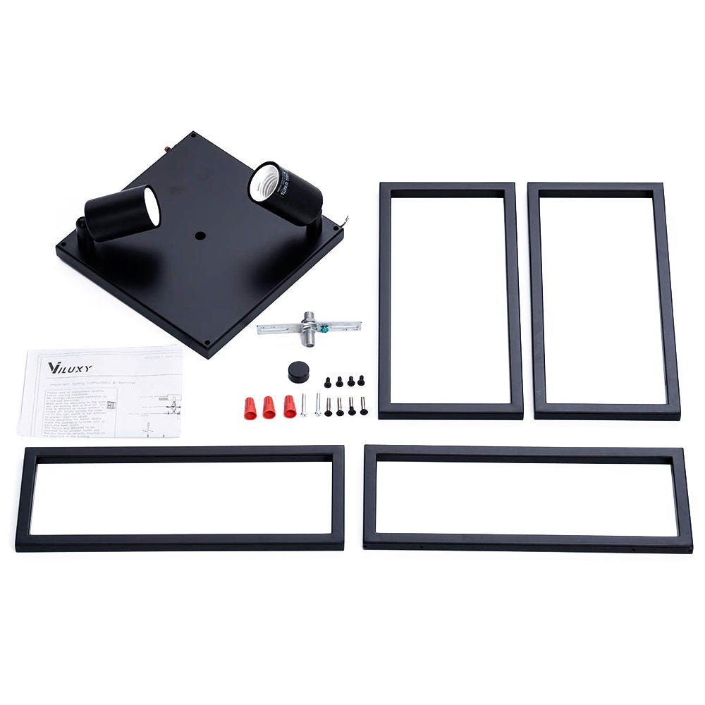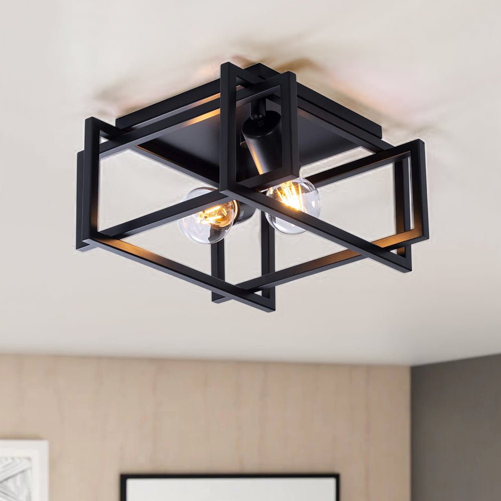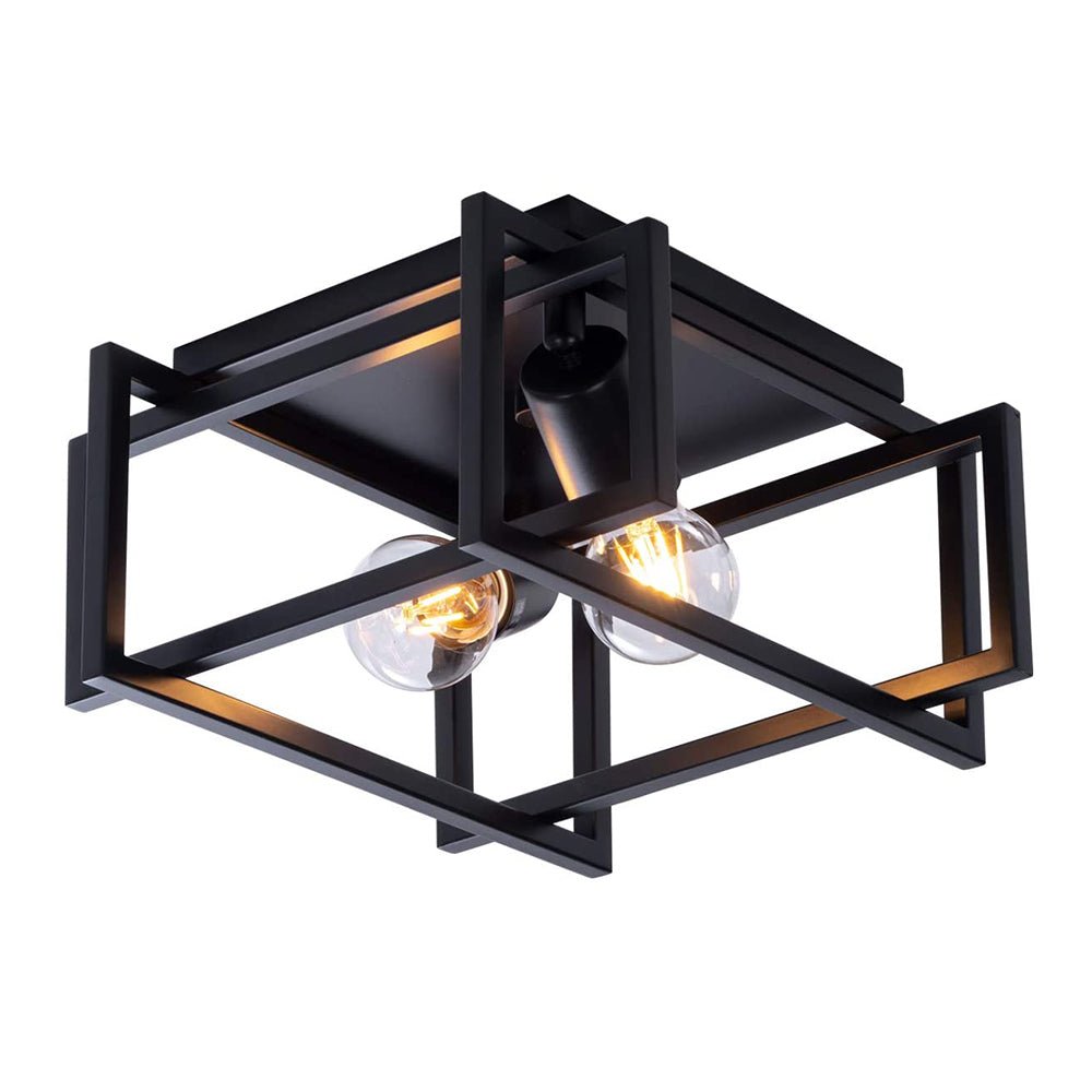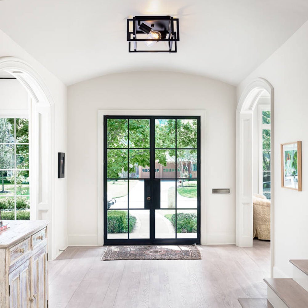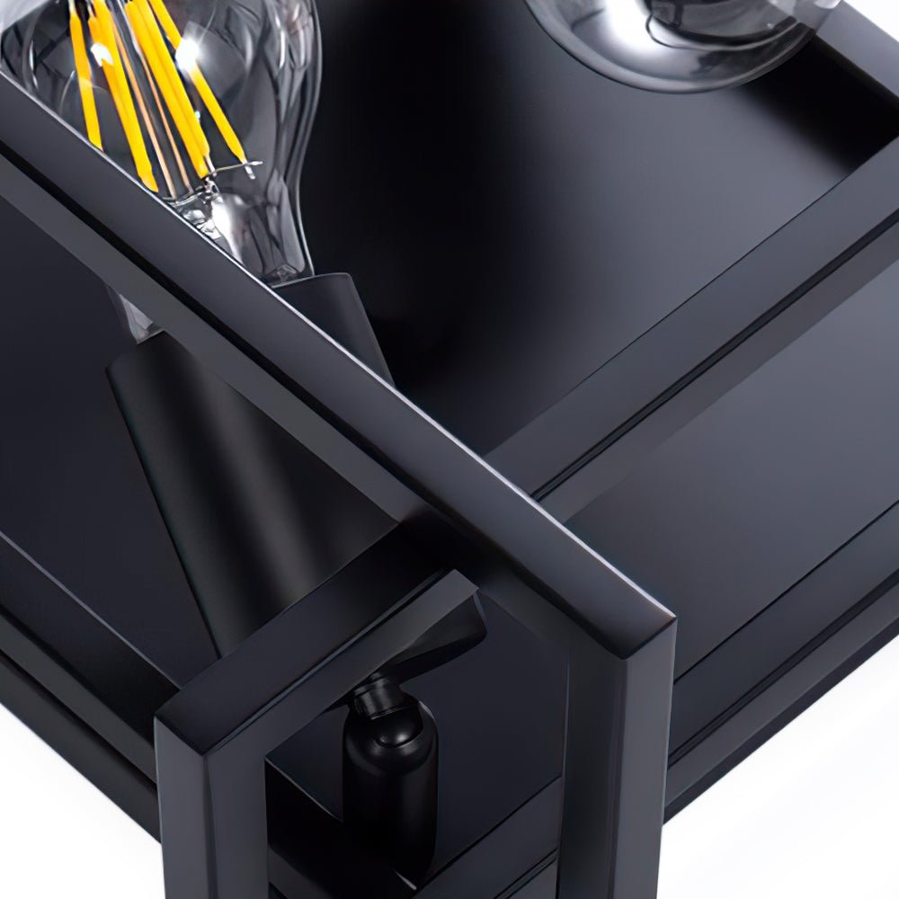 Kaksi valoa • Metallirunko • Avoin neliömuotoilu • Mattamusta • E26 Keskikantaiset polttimot (ei sisälly) • Kiinteä • UL-listattu