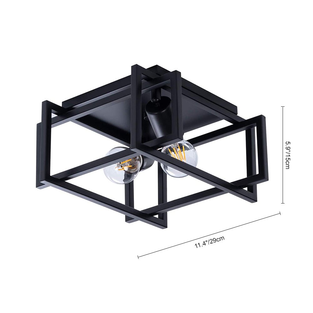 Kestävästä metallista valmistettu neljä suorakaiteen muotoista kehystä rakentavat tämän geometrisen uppoasennettavan valaisimen älykkäästi. Tässä nelikulmaisessa metallissa uppoasennetussa valossa on minimalistinen avoin häkki, jossa on kaksi esillä olevaa keskipitkällä pohjalla olevaa E26-polttimoa (ei sisällä). Mattamusta viimeistely lisää tyylikkään teollisen ilmeen. Tämä suorakaiteen muotoinen uppoasennettava kattovalaisin sopii täydellisesti eteiseen, eteiseen, keittiöön, makuuhuoneeseen tai pesulaan, ja se sopii sekä perinteiseen että moderniin maalaistalon sisustukseen.