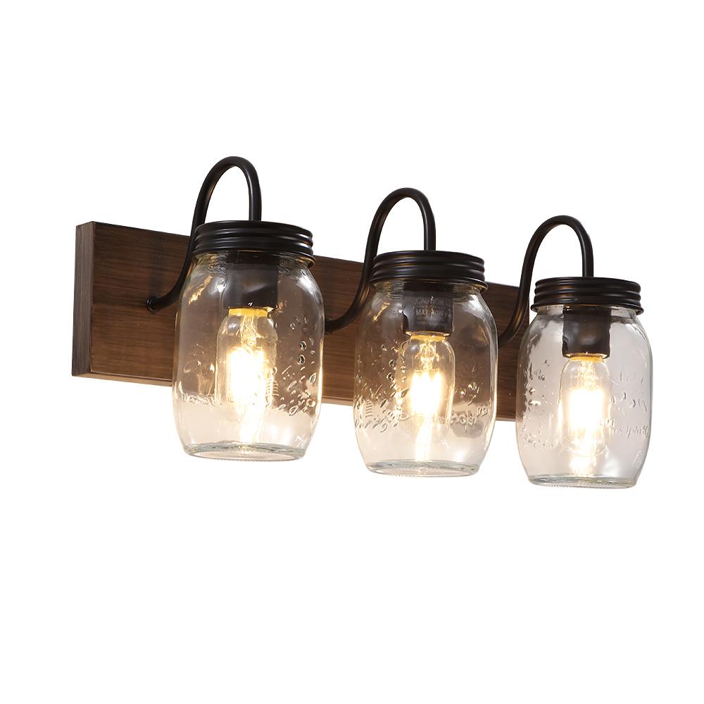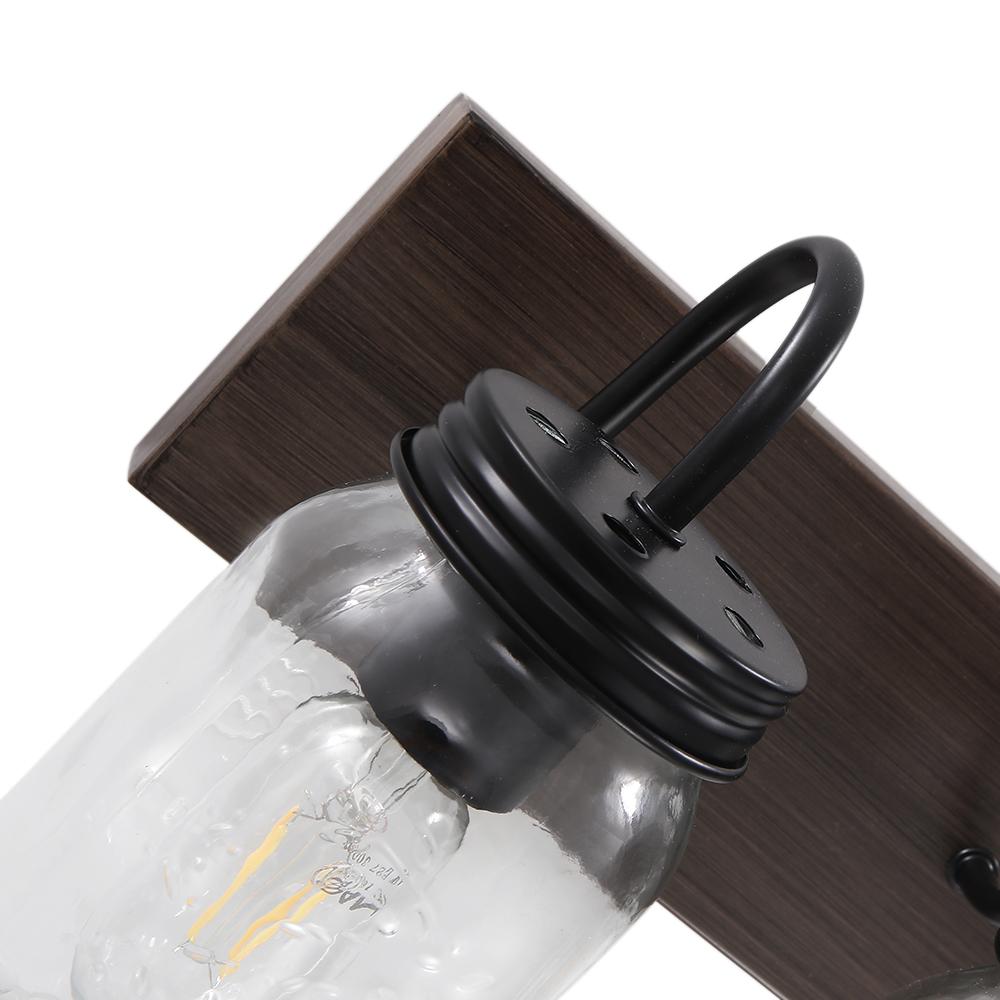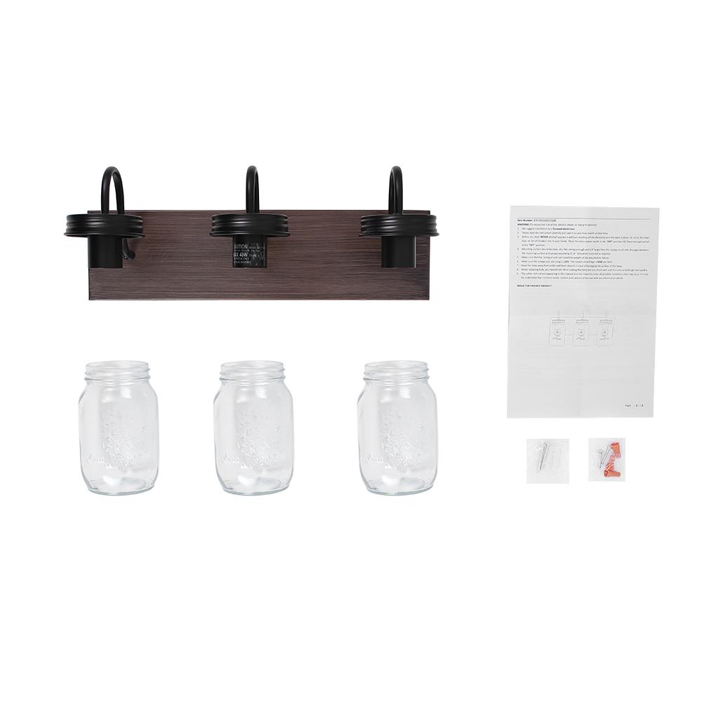 Työskenteletpä sitten perinteisessä tai modernissa maalaistalossa, tämä muurattu purkillinen turhamaisuusvalo esittelee mielenkiintoisen yhdistelmän metalliosia, maalaismaista puuta ja kylvettyä lasia. Kolme hanhenvartta tulee suorakaiteen muotoisesta tekopuisesta taustalevystä tukemaan muurauspurkkien varjostimia. Tämä 3-valoninen meikkiseinävalaisin on yhteensopiva E26/E27-polttimoiden kanssa (eivät sisälly) valaisemaan peiliäsi, kylpyhuonettasi, pukeutumistilaasi, oviaukkoasi tai muita asuinnurkkauksia. Lisää maalaismainen valopilkku täydentääksesi kotisi sisustusta tällä maalaistalon muurauspurkkimeikkivalolla.Detail