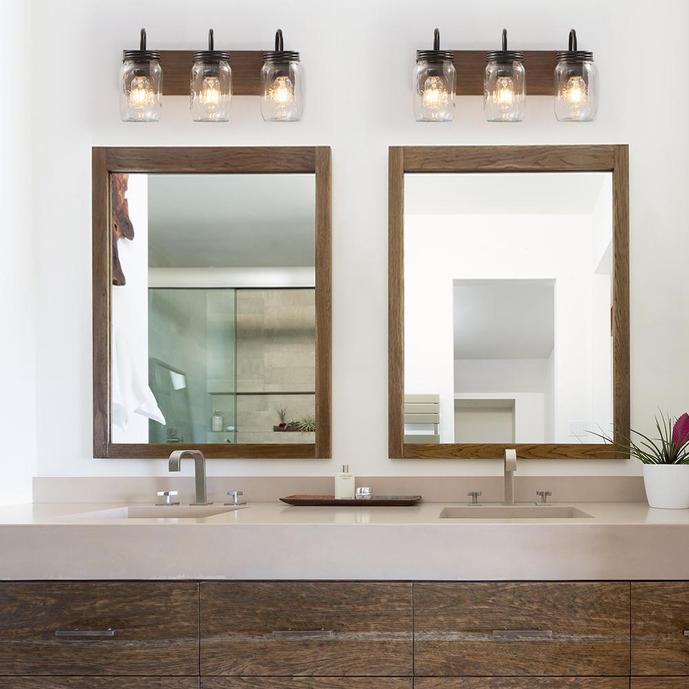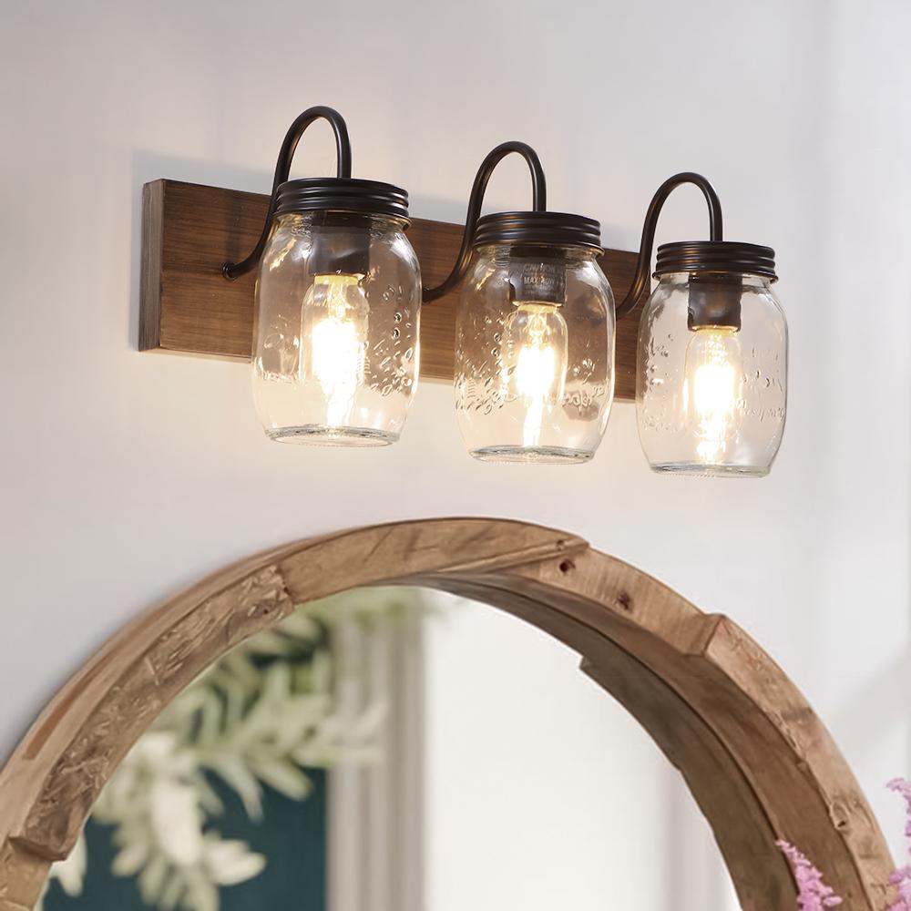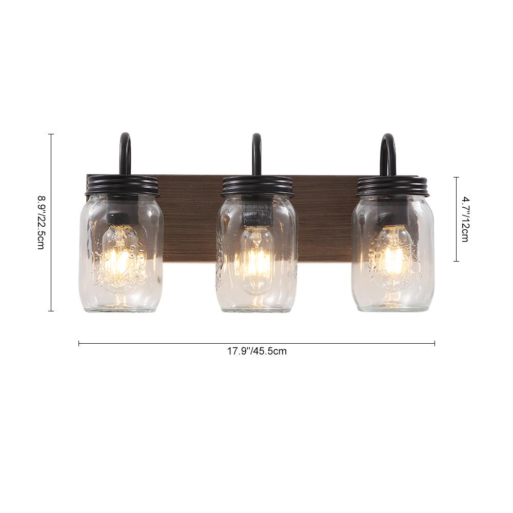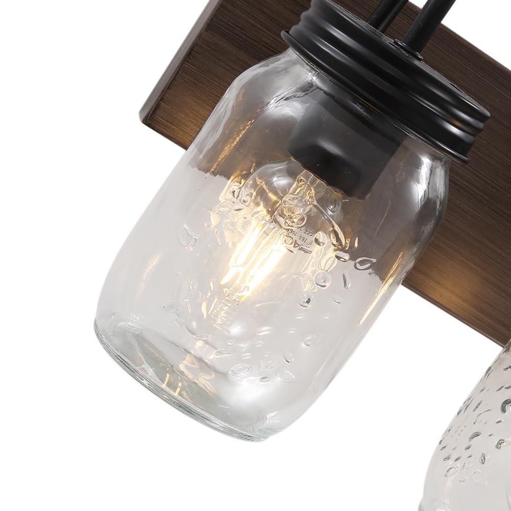 Työskenteletpä sitten perinteisessä tai modernissa maalaistalossa, tämä muurattu purkillinen turhamaisuusvalo esittelee mielenkiintoisen yhdistelmän metalliosia, maalaismaista puuta ja kylvettyä lasia. Kolme hanhenvartta tulee suorakaiteen muotoisesta tekopuisesta taustalevystä tukemaan muurauspurkkien varjostimia. Tämä 3-valoninen meikkiseinävalaisin on yhteensopiva E26/E27-polttimoiden kanssa (eivät sisälly) valaisemaan peiliäsi, kylpyhuonettasi, pukeutumistilaasi, oviaukkoasi tai muita asuinnurkkauksia. Lisää maalaismainen valopilkku täydentääksesi kotisi sisustusta tällä maalaistalon muurauspurkkimeikkivalolla.Detail