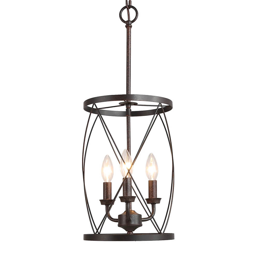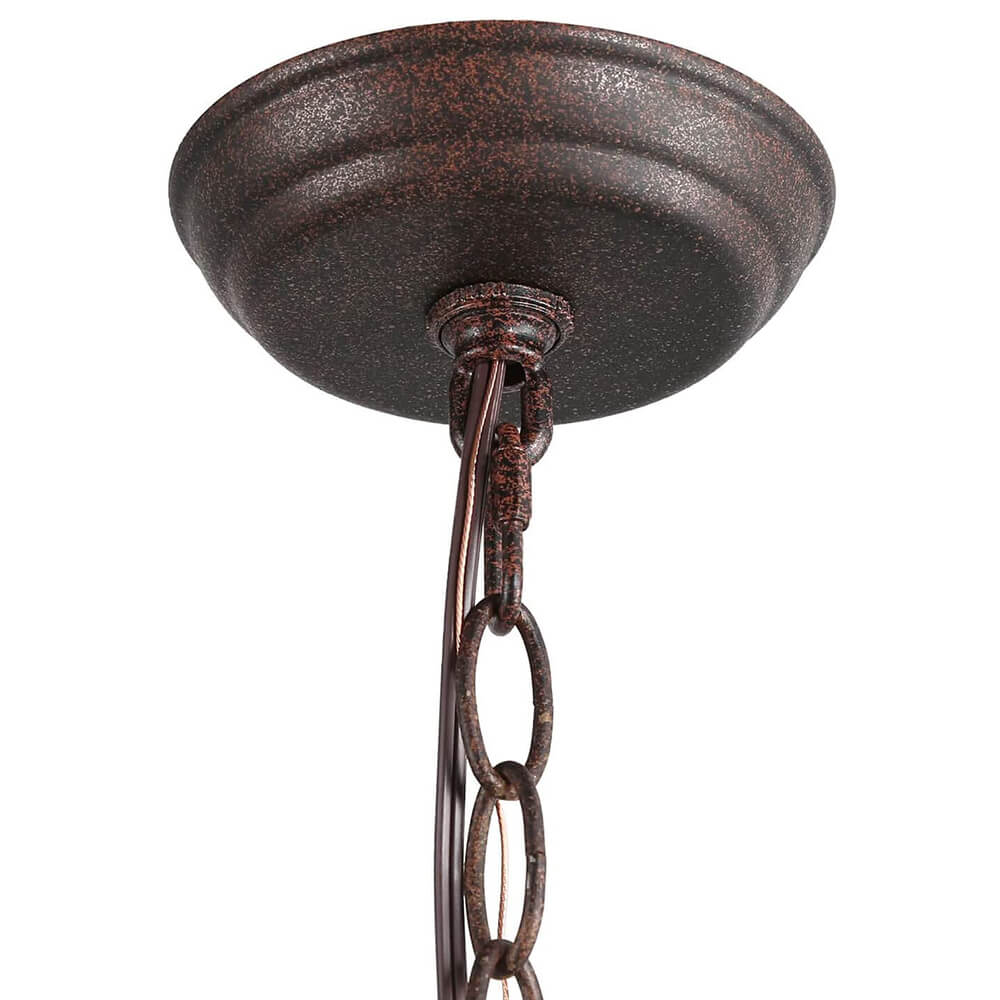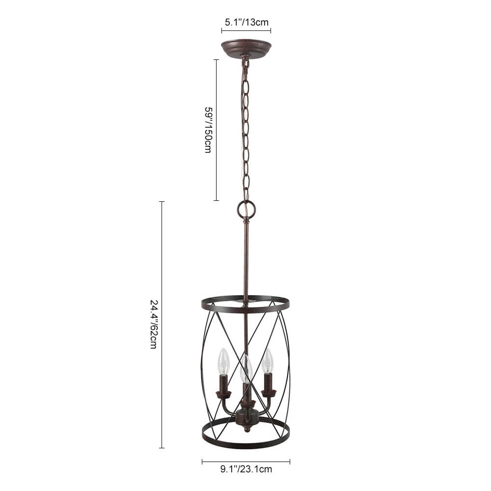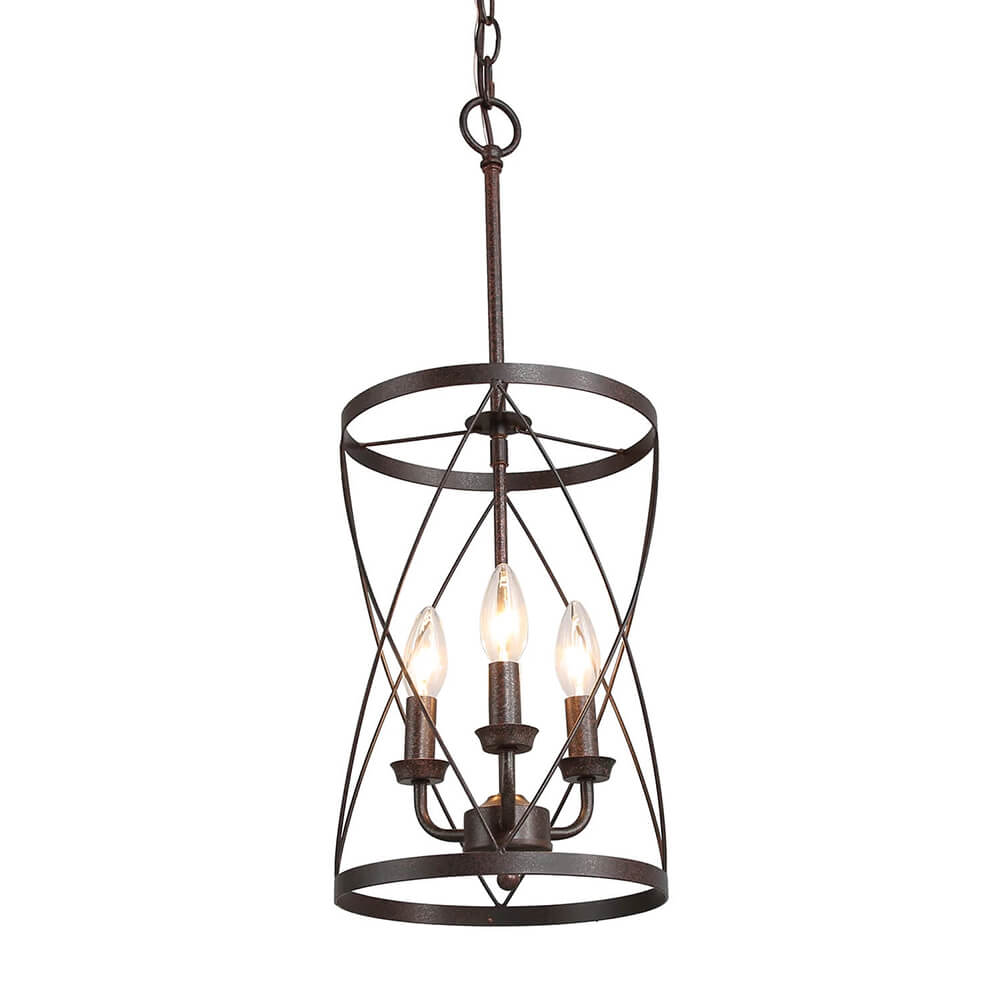 Teollisuusruosteviimeistelyn kaareva ristikkäinen avoin kehys on tämän maalaistalon metallisylinteririippuvalaisimen avainkohta. Kolme esillä olevaa keskikantaista E26/E27-lamppua (ei sisälly toimitukseen), jotka sijaitsevat kynttilän kannassa, täydentävät tämän metallisen riippuvalaisimen perinteistä ilmettä. Sopivaan ketjuun ripustettu maalaistalon sylinteririippuvalaisin on mukautuva kaltevaan kattoon. Tämä moderni maalaistalo riipus on täydellinen kaluste muuttaa keittiösaareke, ruokasali, kotibaari, pesula ja eteinen.Detail