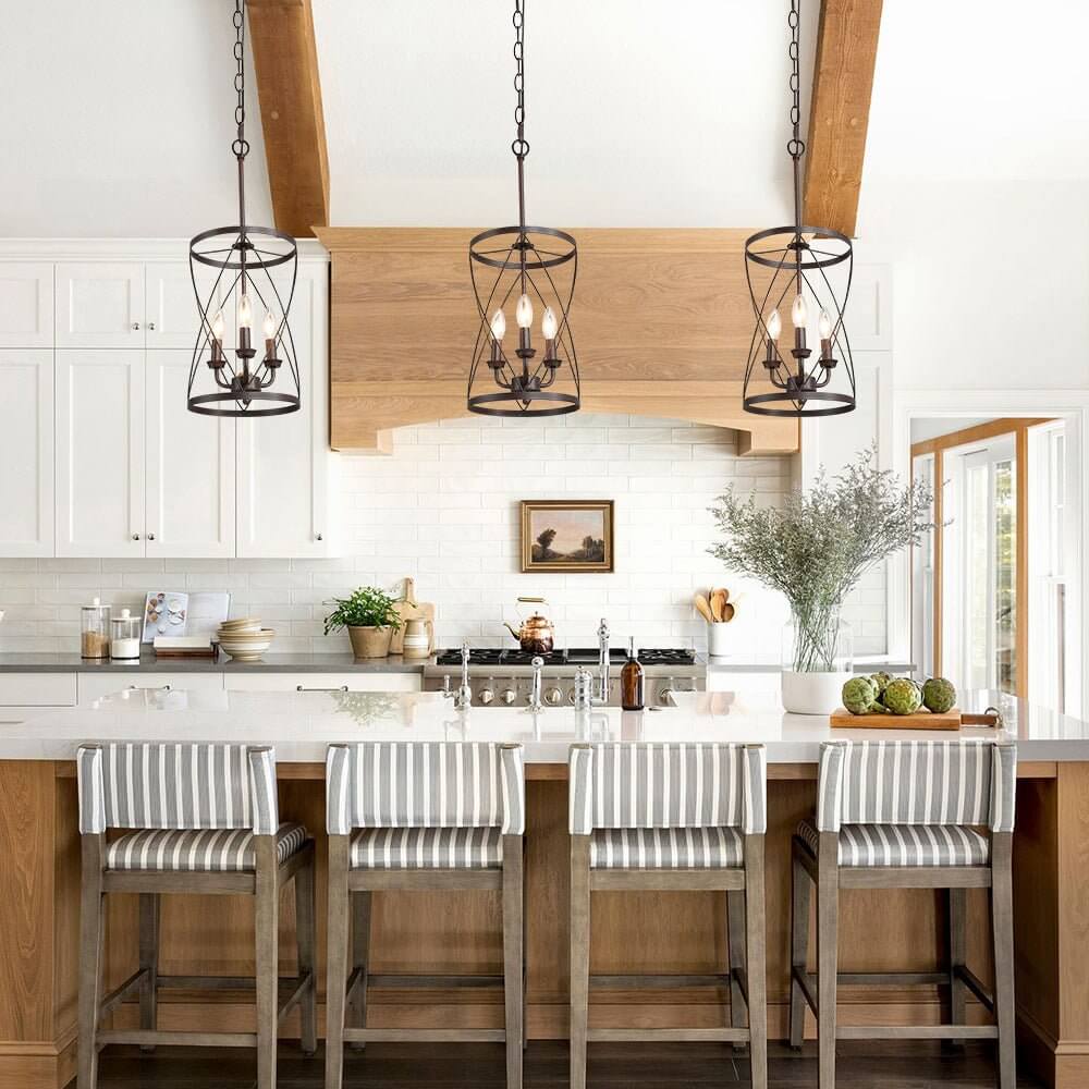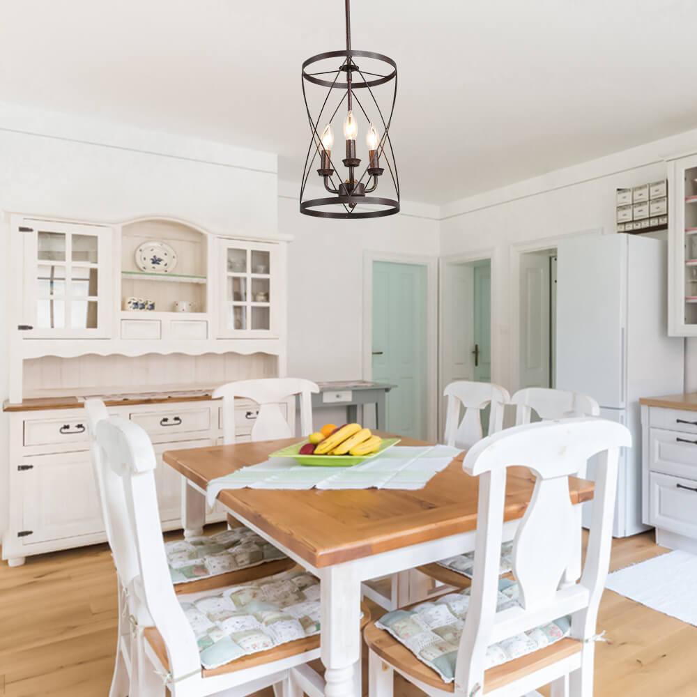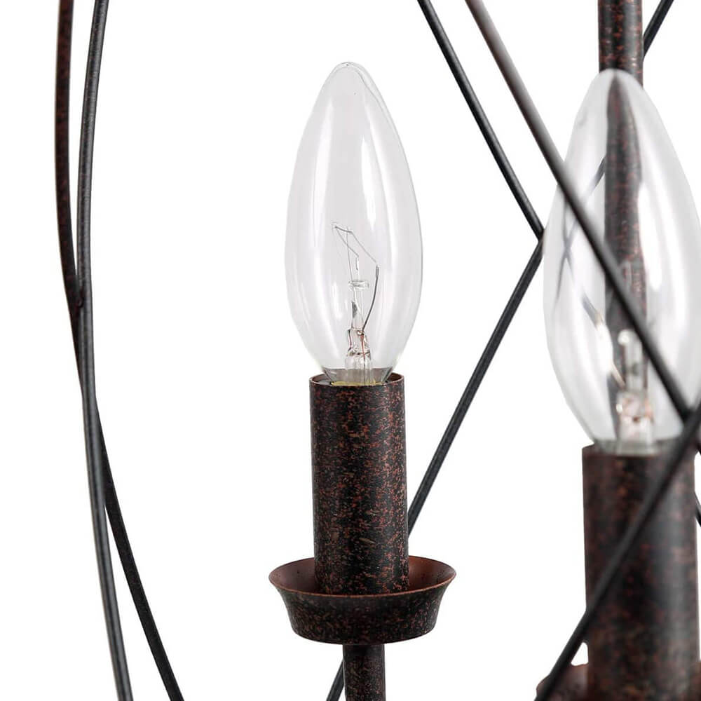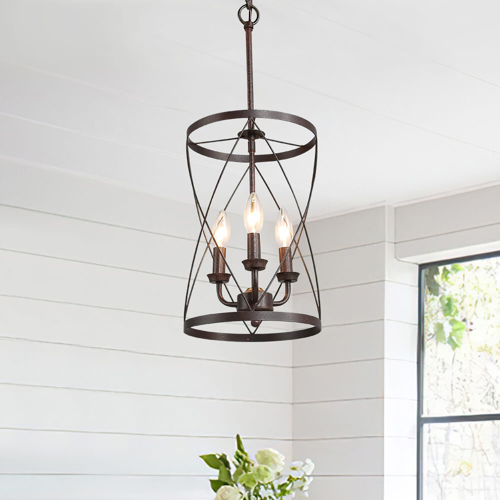 Teollisuusruosteviimeistelyn kaareva ristikkäinen avoin kehys on tämän maalaistalon metallisylinteririippuvalaisimen avainkohta. Kolme esillä olevaa keskikantaista E26/E27-lamppua (ei sisälly toimitukseen), jotka sijaitsevat kynttilän kannassa, täydentävät tämän metallisen riippuvalaisimen perinteistä ilmettä. Sopivaan ketjuun ripustettu maalaistalon sylinteririippuvalaisin on mukautuva kaltevaan kattoon. Tämä moderni maalaistalo riipus on täydellinen kaluste muuttaa keittiösaareke, ruokasali, kotibaari, pesula ja eteinen.Detail