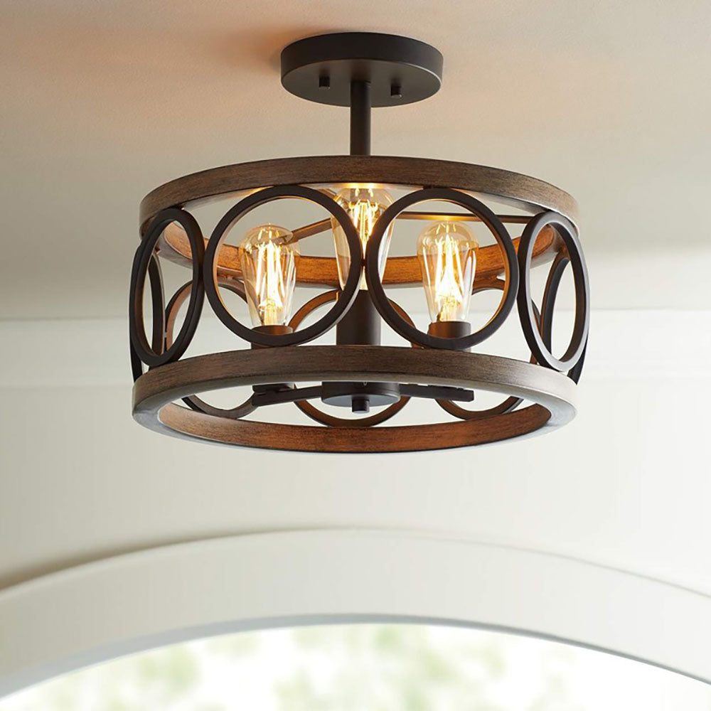 Lisää kotiisi maalaismaista charmia maalaistalon puolitasossa asennettavalla 5-lampuisella pyöreällä kattovalaisimellamme. Tässä tyylikkäässä valaisimessa yhdistyy vintage-vaikutteinen muotoilu ja moderni toiminnallisuus, mikä luo lämpimän ja kutsuvan tunnelman. Viisi pyöreään kehikkoon koteloitua valoa tarjoavat runsaasti valaistusta mihin tahansa tilaan, joten se on ihanteellinen valinta keittiöön, käytävään tai makuuhuoneeseen.