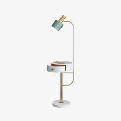 Tämä pöytälattiavalaisin tarjoaa modernin muotoilun, muodon ja toiminnan yhdistelmän tyylikkään ilmeen makuuhuoneeseesi. Monikäyttöinen, jota voidaan käyttää päätypöytä- ja lattiavalaisimena olohuoneessa tai yöpöytänä ja yöpöydän valonlähteenä. Tämä lattiavalaisin, jossa on lasinen pöytätaso ja tekomarmorinen tarjotinpöytä, sopii mihin tahansa sisustukseen.