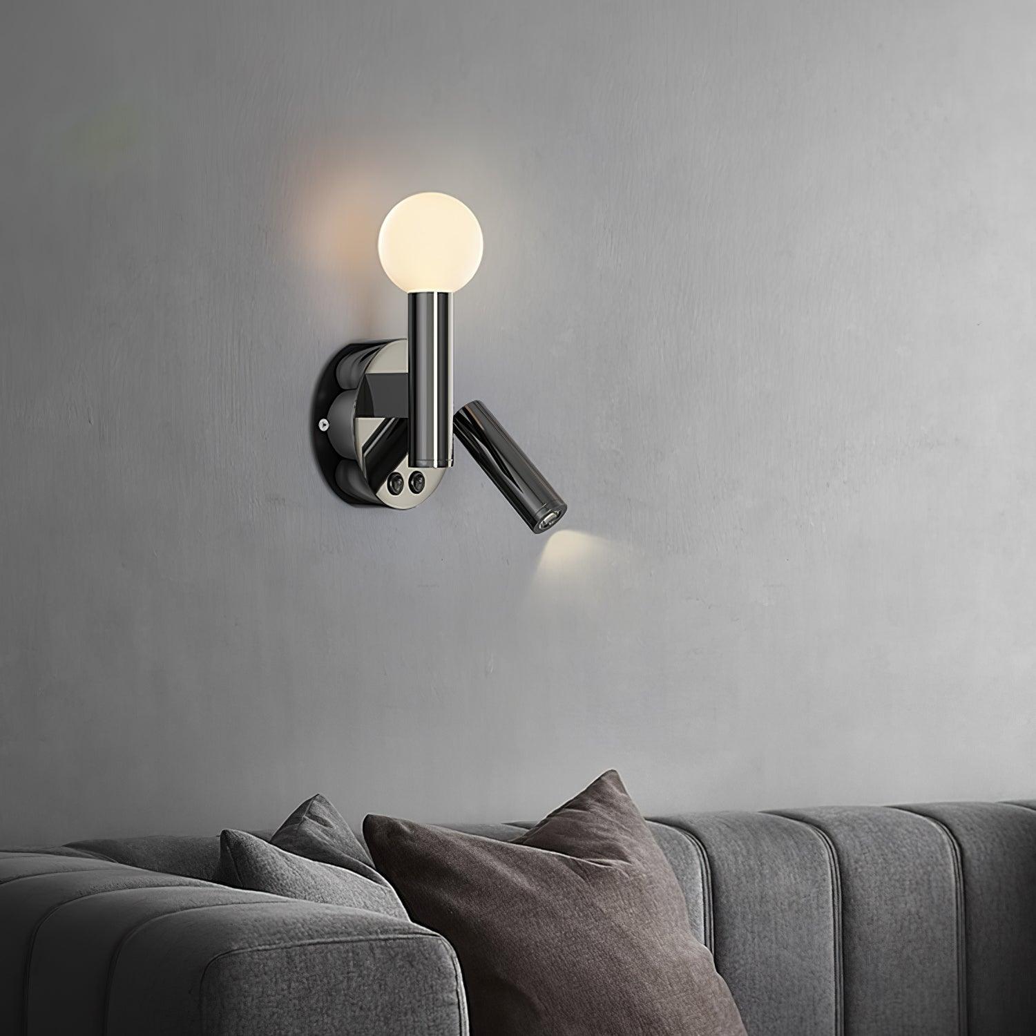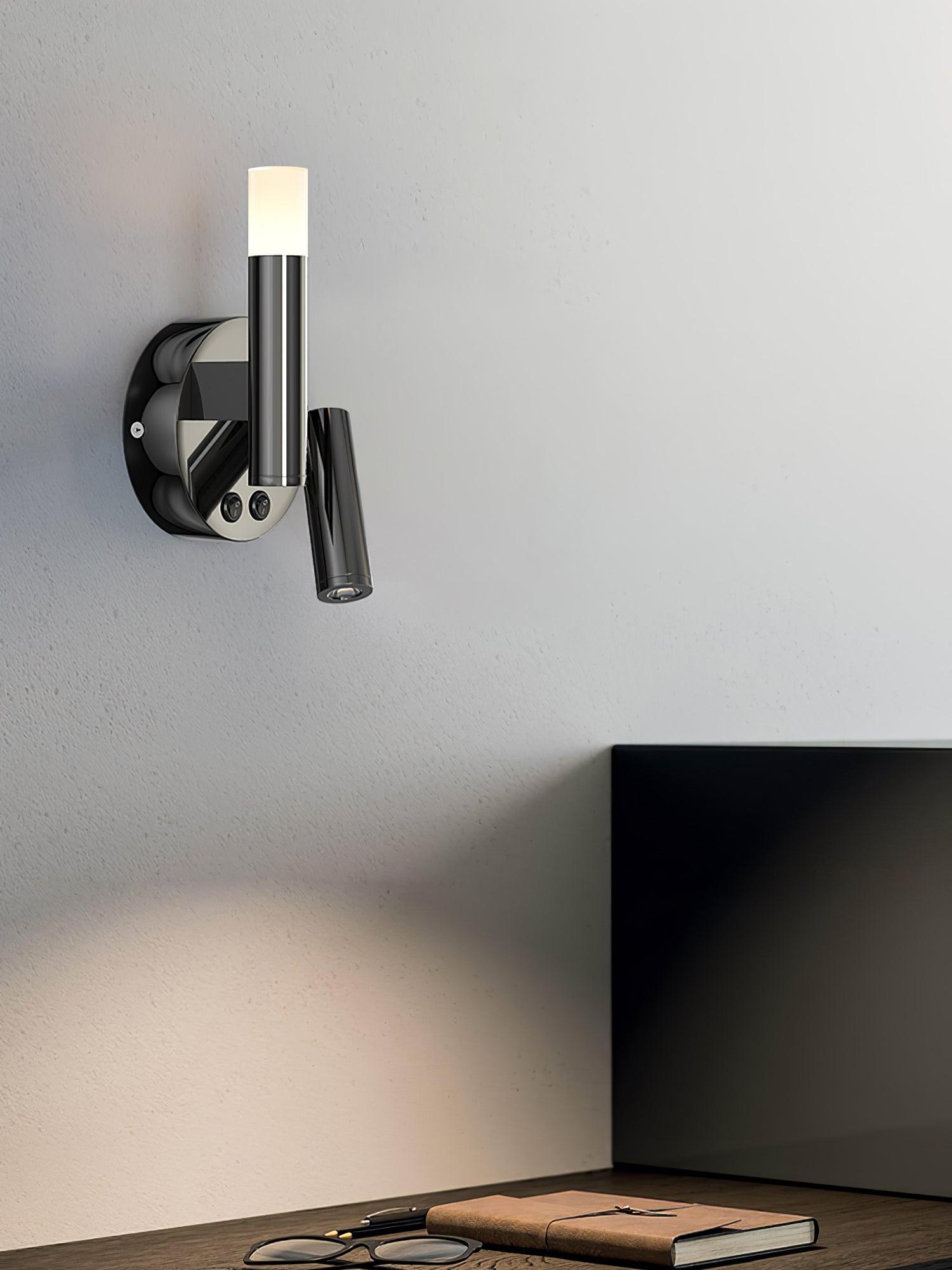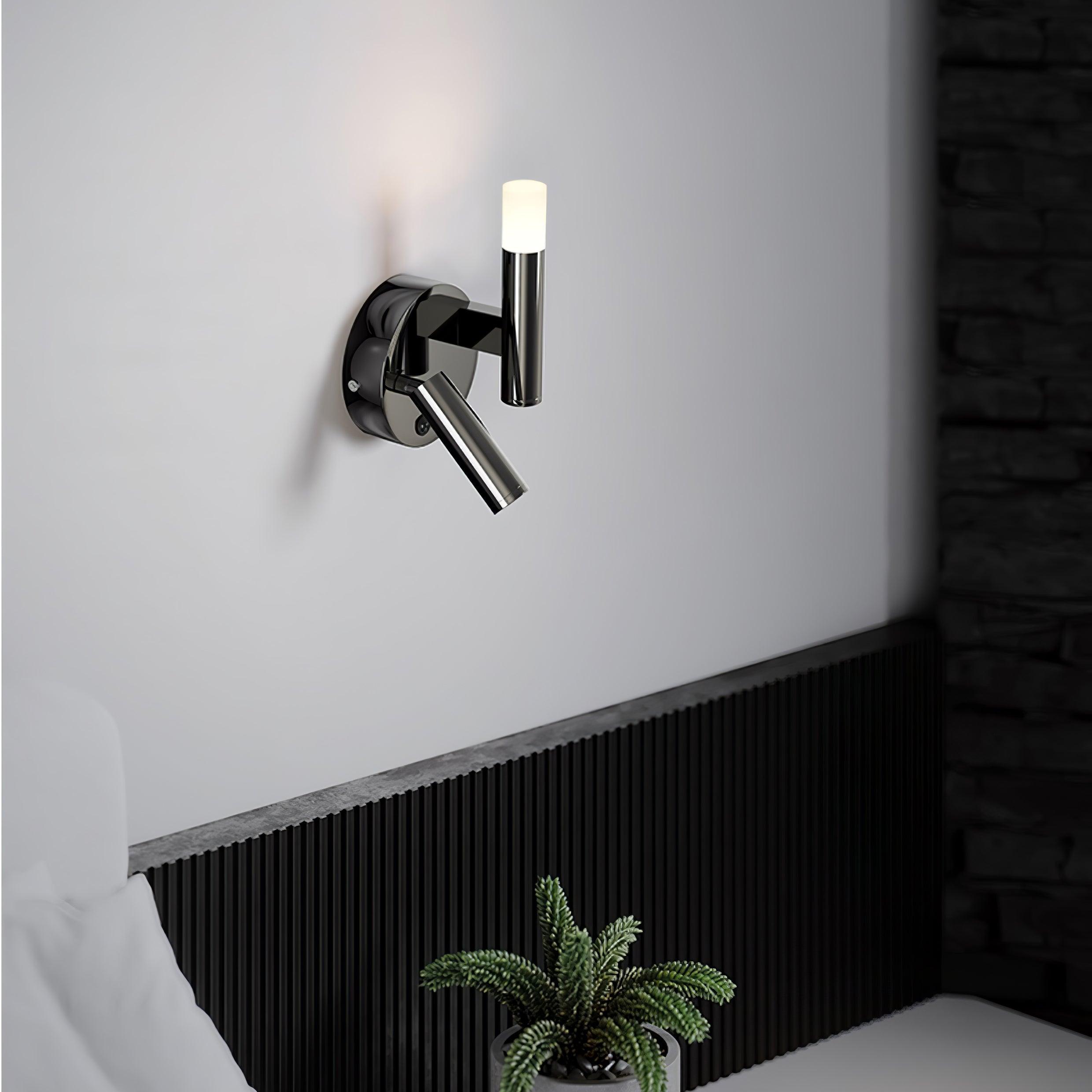 Vie vähän tilaa, koska suljettuna se istuu samalla tasolla seinän kanssa. Se voidaan asentaa kumpaan tahansa suuntaan. Yksi tämän liitoskappaleen pääominaisuuksista on, että kiinnitys toimii kytkimenä – lamppu syttyy välittömästi, kun vedät sen ulos huuhteluasennosta ja sammuu, kun sitä työnnetään taaksepäin.