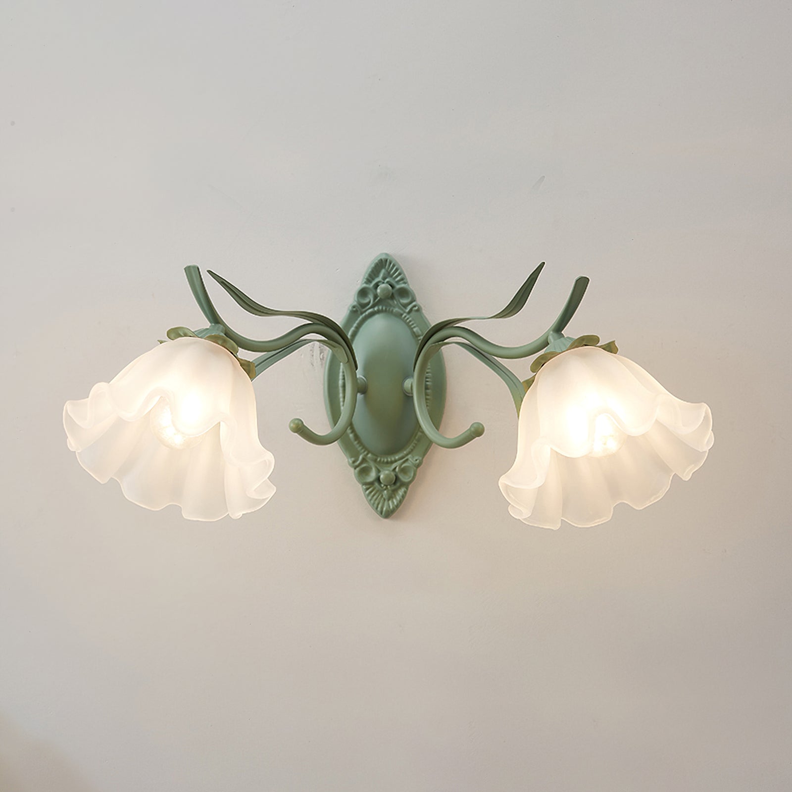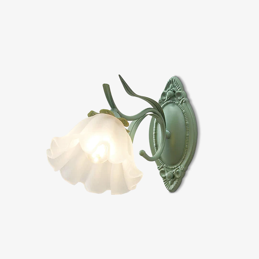 Kukan muodon inspiroima Flared Wall Light -valaisin on kukkiva muoto ja levenevät terälehdet. Metallijalusta ja oksat antavat vakautta ja lisäävät ripauksen hienostuneisuutta lamppuun. Lasiset terälehtivarjostimet säteilevät pehmeää ja lämmintä hehkua ja luovat miellyttävän valoefektin.