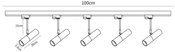 5 päätä Skoko: P 100 cm x K 20,3 cm / P 39,4" x K 10" (rata 100 cm)
