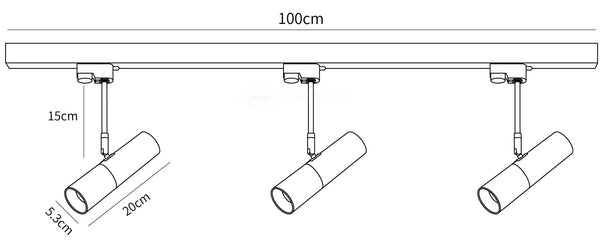 3 päätä Koko: P 100 cm x K 20,3 cm / P 39,4" x K 10" (Rata 100 cm)