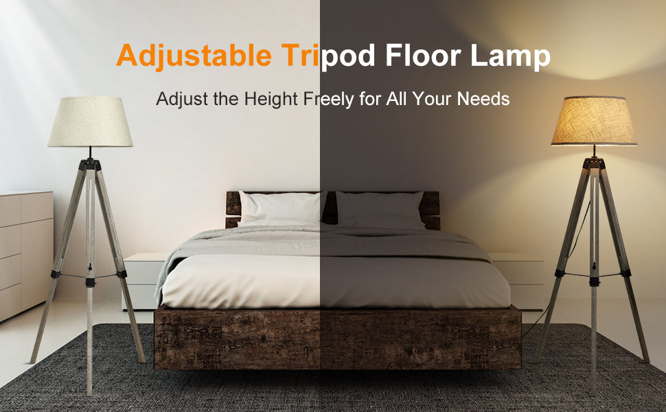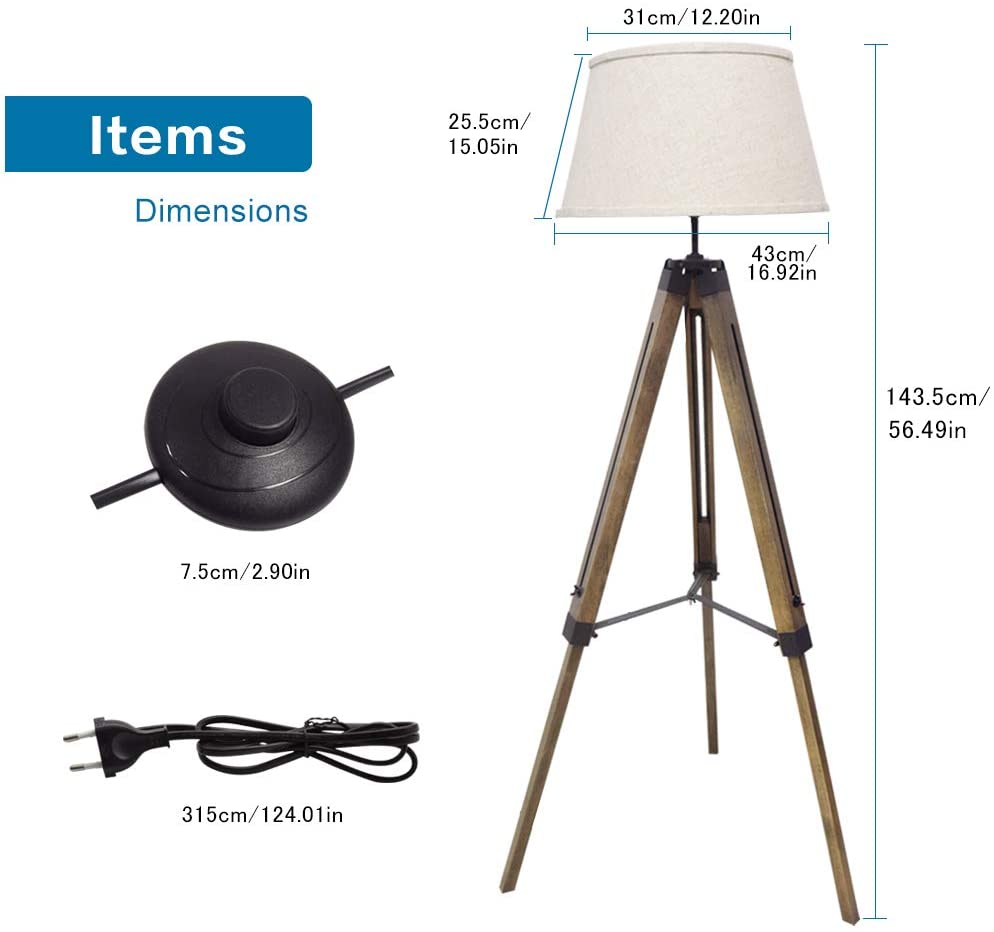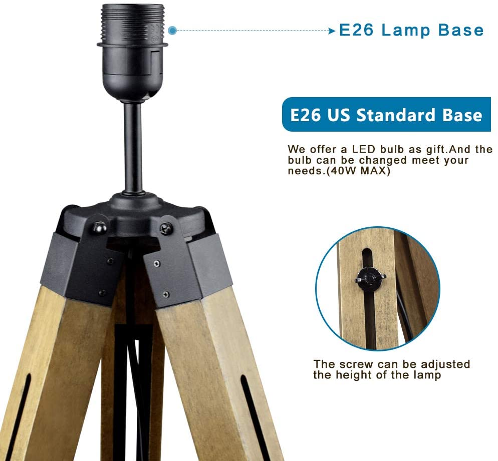 - 【Adjustable & Flexible】: The tripod floor lamp can be adjusted to the height of 3 wooden holders. You can adjust the high or low optionally of the lamp. And the cable can be built in the gap between the legs, then you will never be worried about hiding the wires.