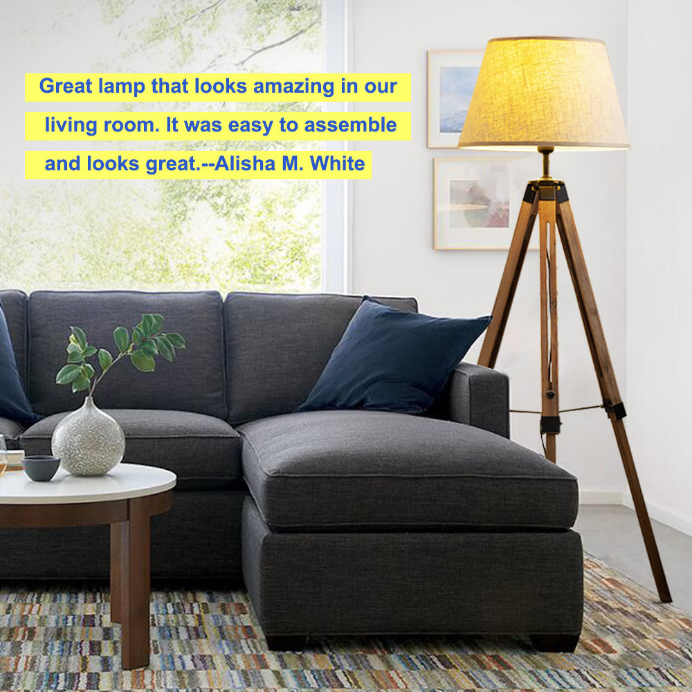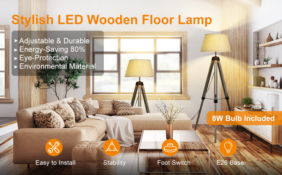 - 【Super Solid 3* Telescopic Wooden Holders】: This standing floor lamp is made of high-quality natural poplar wood. The unique wooden tripod makes the lamp stable and solid enough. What's more, with the adjustable black rotating fittings that accompanied the tripod, you can adjust the height as you want, very humanize and sturdy.