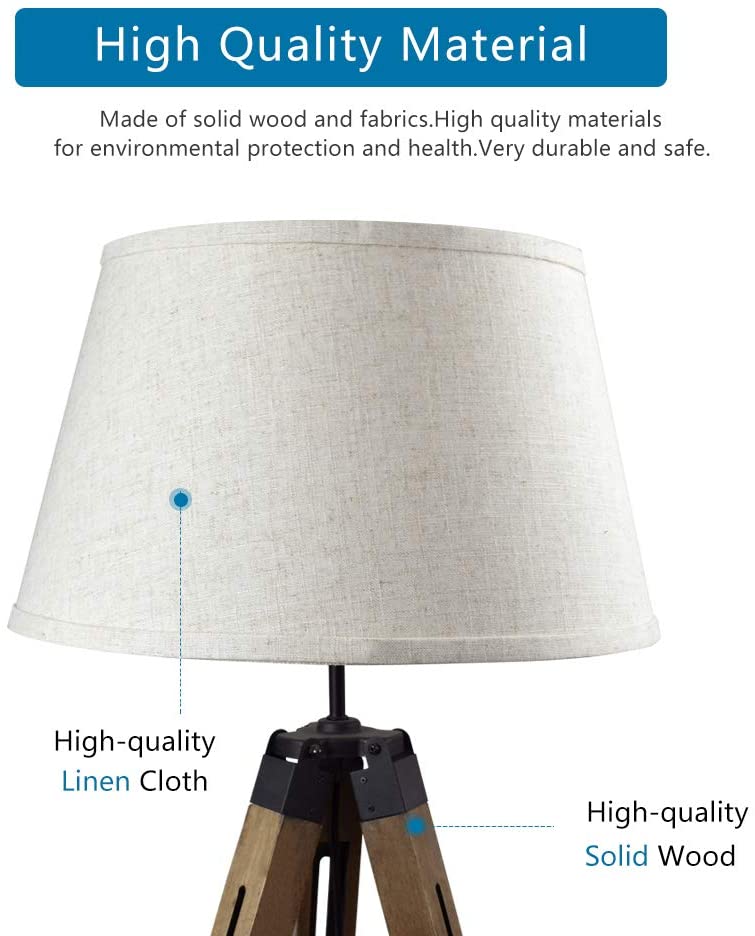 - 【 High-Quality Materials】: Tripod lamps made of solid wood and linen fabric. High-quality materials for environmental protection and health. Very durable and safe.