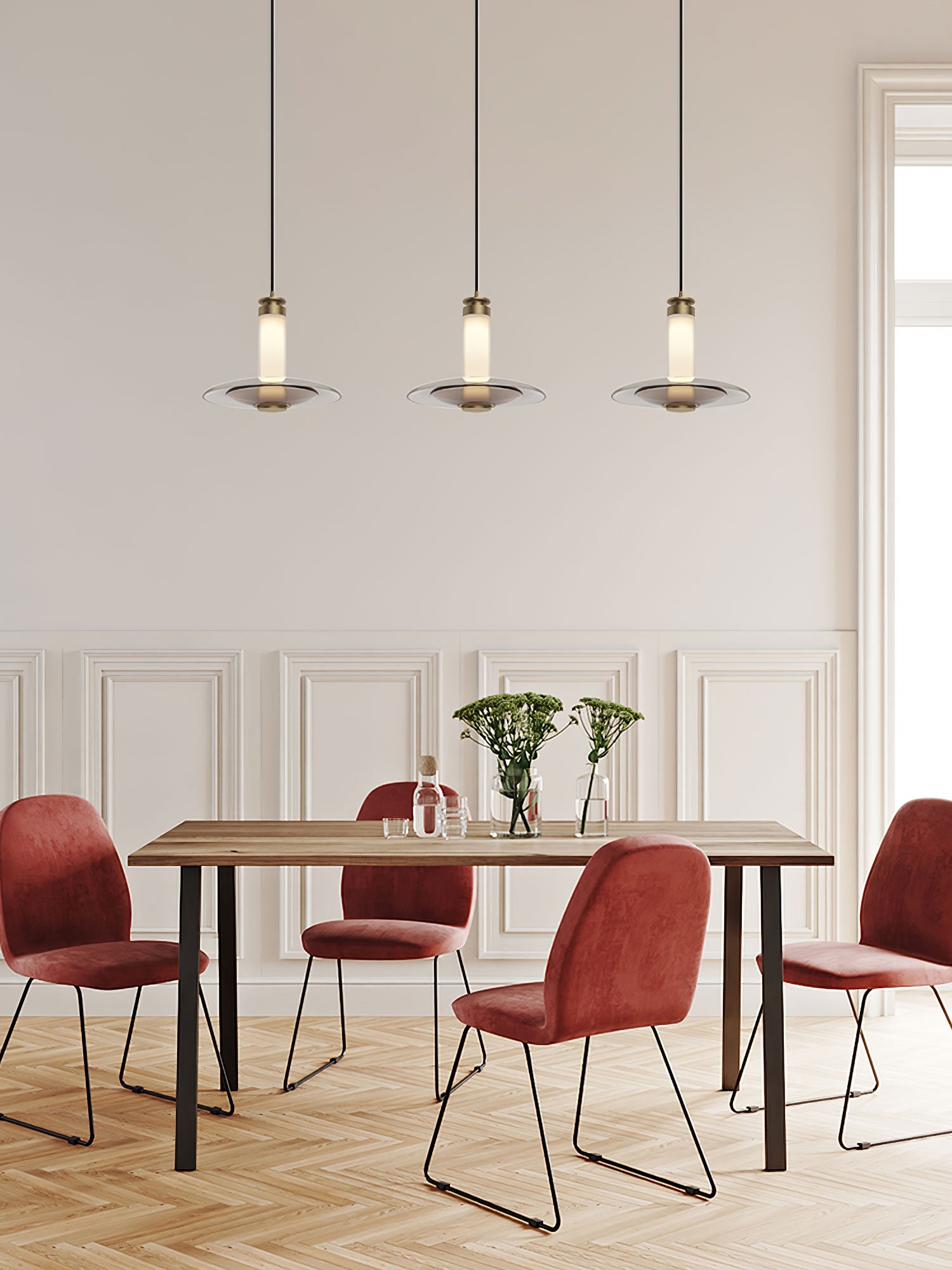 Hurralasiputken läpi säteilevä lämmin hehku tarjoaa pehmeän, tunnelmallisen valaistuskokemuksen, joka on ihanteellinen rennon tunnelman luomiseen. Metallilevyn heijastava laatu parantaa valoa ja lisää hienostuneisuutta ja syvyyttä mihin tahansa huoneeseen. Olipa kyseessä ruokailutilasi keskipiste, rauhallinen lisä makuuhuonees tai vieraanvarainen majakka sisäänkäynnissäsi, Lumina Float Glass Pendant on tarpeeksi monipuolinen sopeutuakseen mihin tahansa ympäristöön ja antaa samalla hienovaraisen mutta vaikuttavan lausunnon.