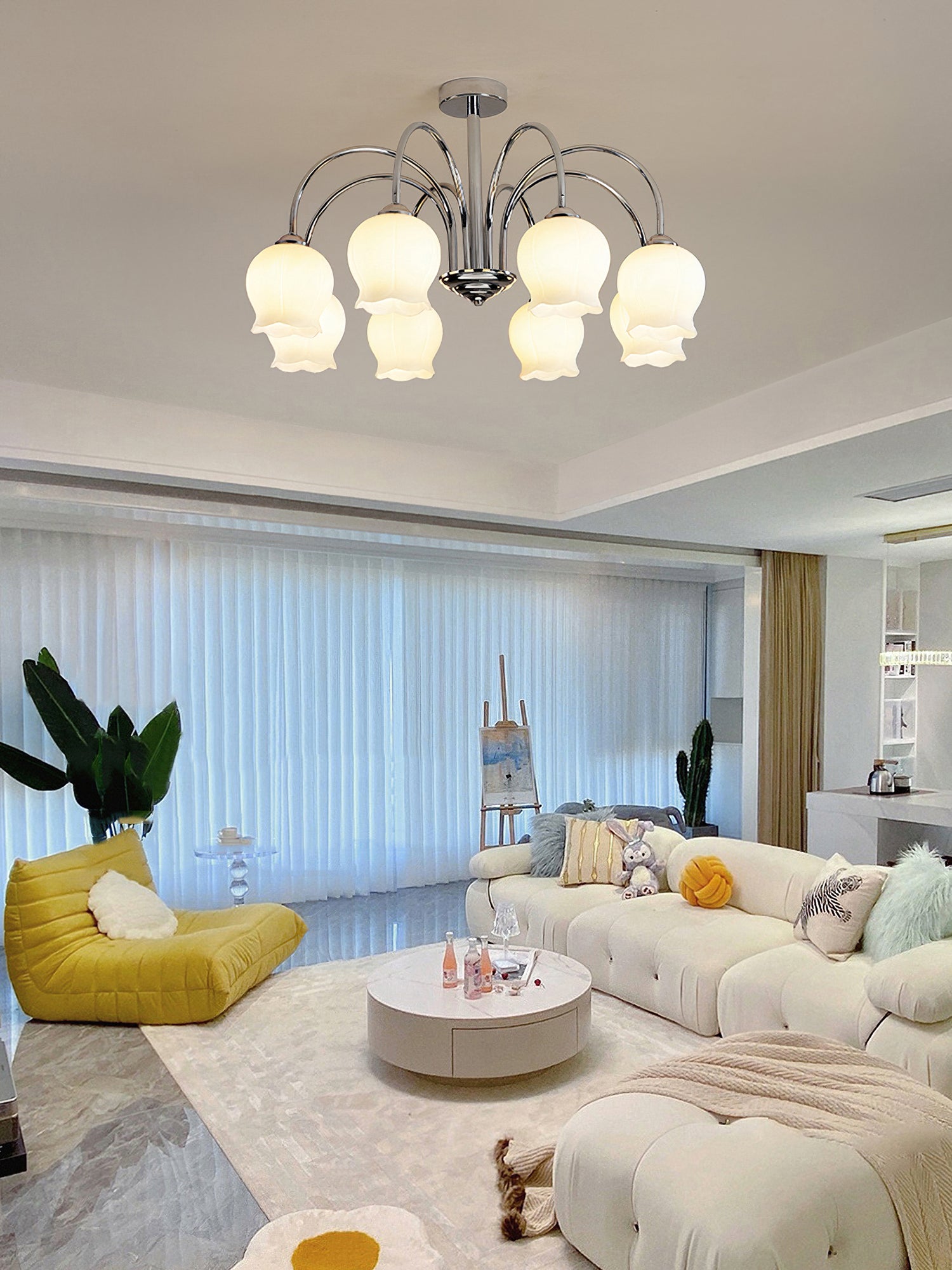Jokainen lasinen lampunvarjostin esittelee monimutkaisia kukkakuvioita, jotka vangitsevat luonnon kauneuden monimutkaisilla yksityiskohdilla. Kun valo loistaa lasivarjostimien läpi, kukkakuviot luovat herkkiä varjoja tilaan luoden romanttisen ja rauhallisen tunnelman. Tämä ainutlaatuinen muotoilu tekee Country Floral Chandelier Lampista minkä tahansa huoneen keskipisteen, tuoden mukavuutta ja nautintoa.