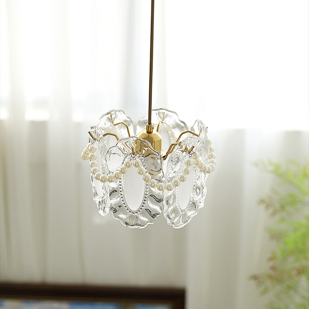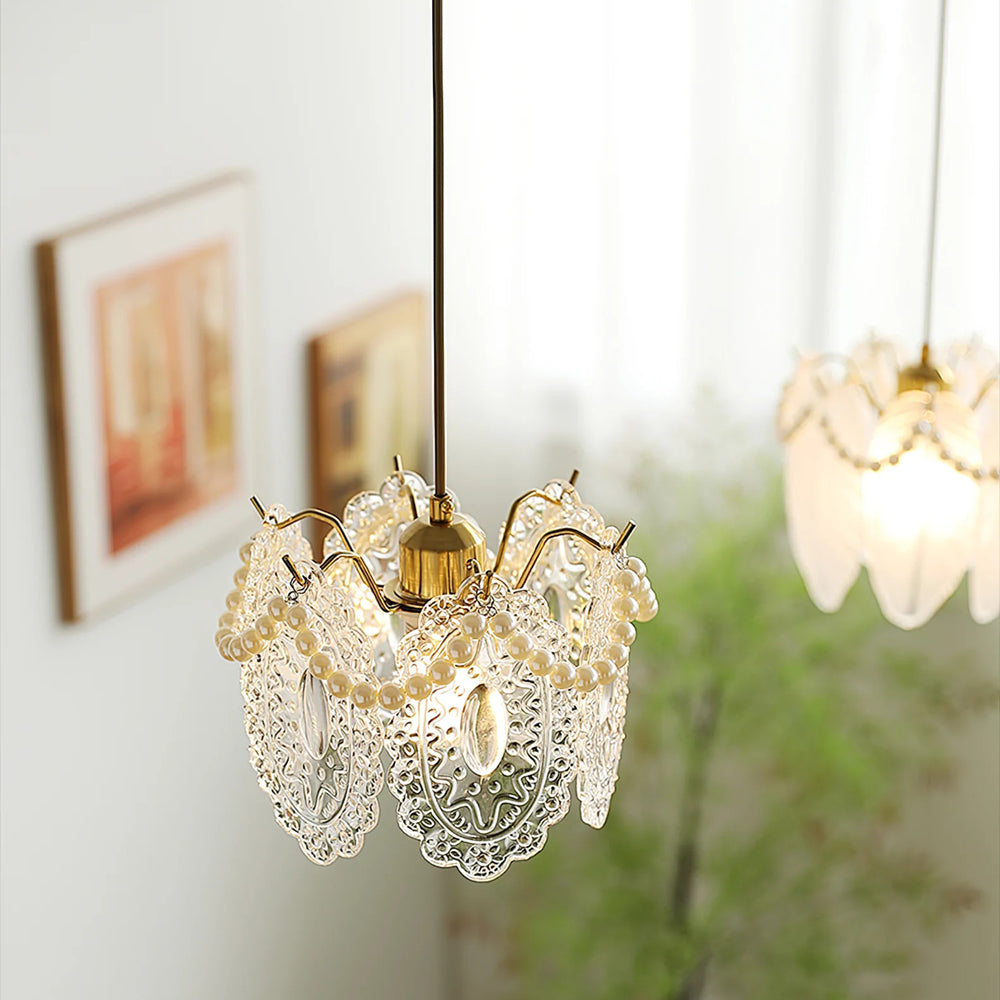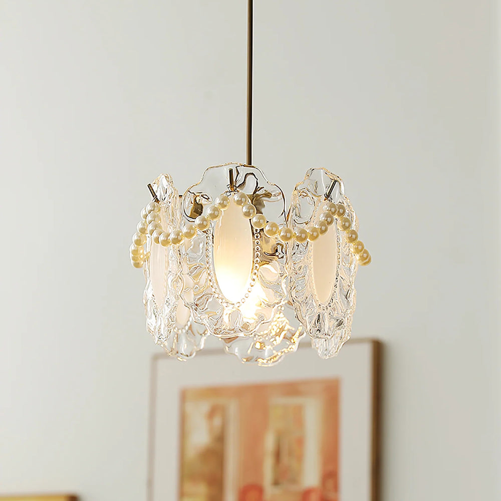 Tämä tyylikäs riippuvalaisin on hohdokas lisä siirtymäkauden ja nykyaikaisiin sisätiloihin. Kauniissa lasivarjostimessa on monimutkaisia kuvioita, jotka heijastavat ja taittavat sisällä olevan valon. Yksinään tai useita kertoja sijoitettuna tämä lamppu kiinnittää varmasti kaikkien huomion.