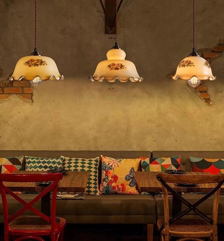 Kukallinen opaliinilasiriippuva LED-valo nenäliina-lampunvarjostimella ranskalaisessa vintage-tyylissä - Faredecor
