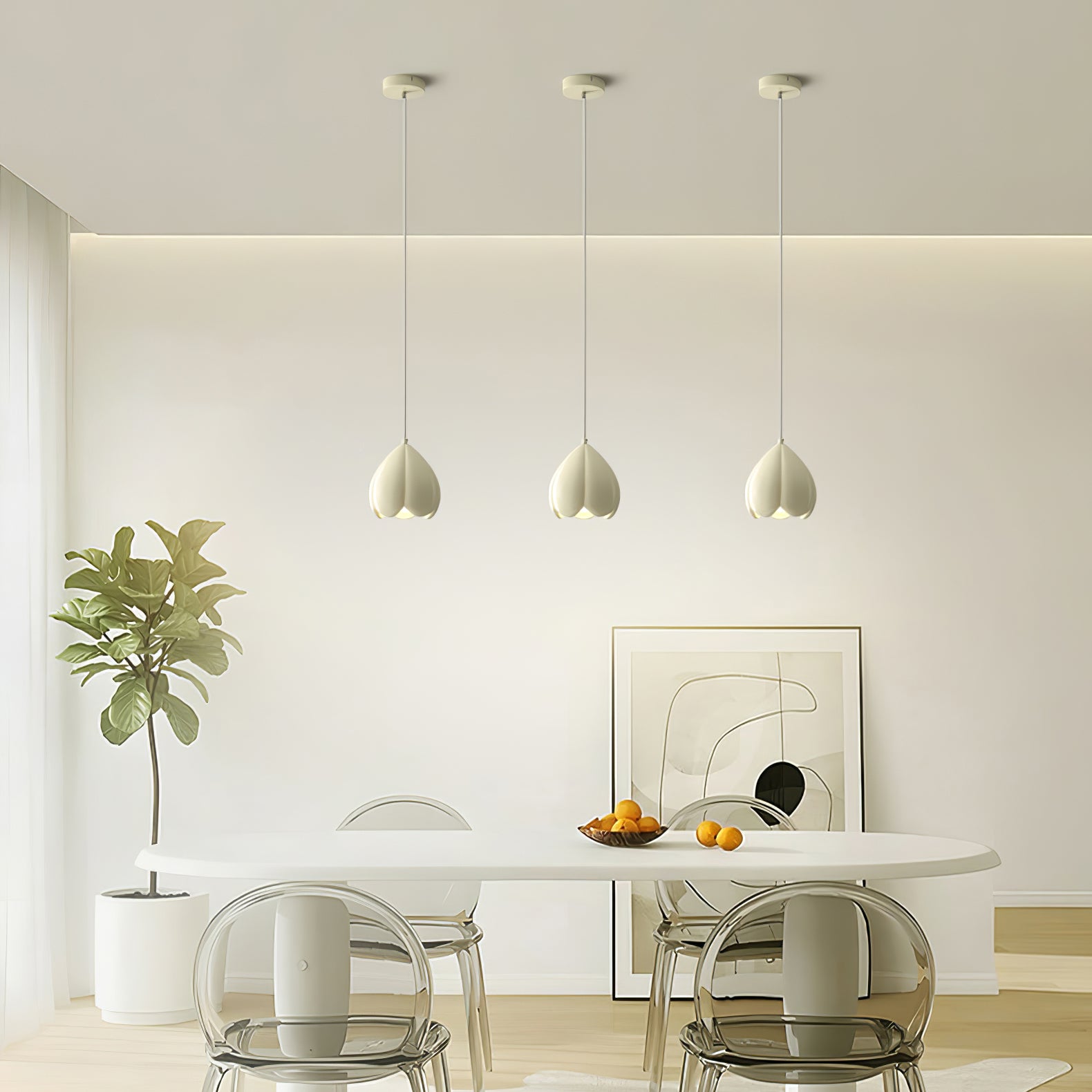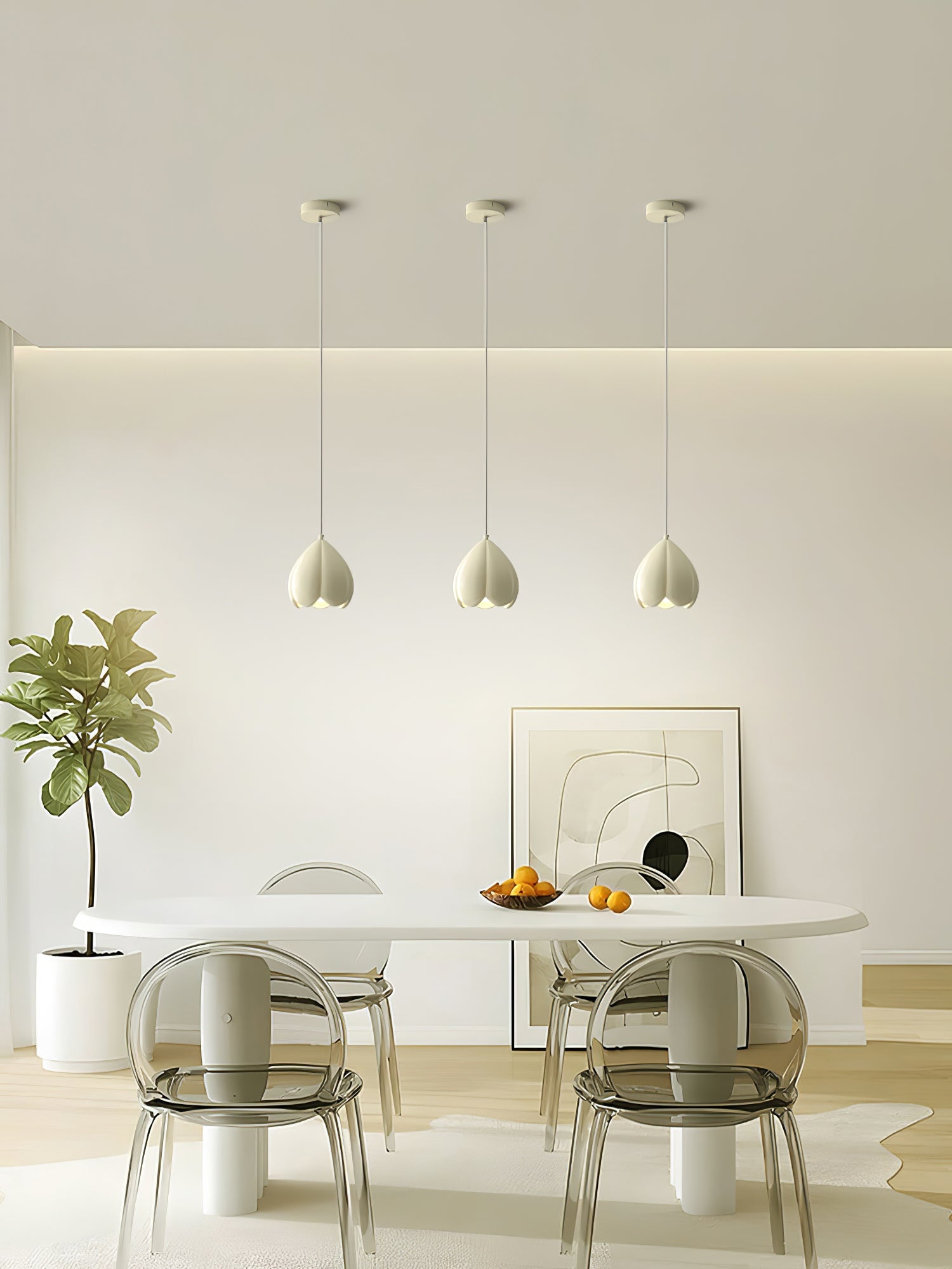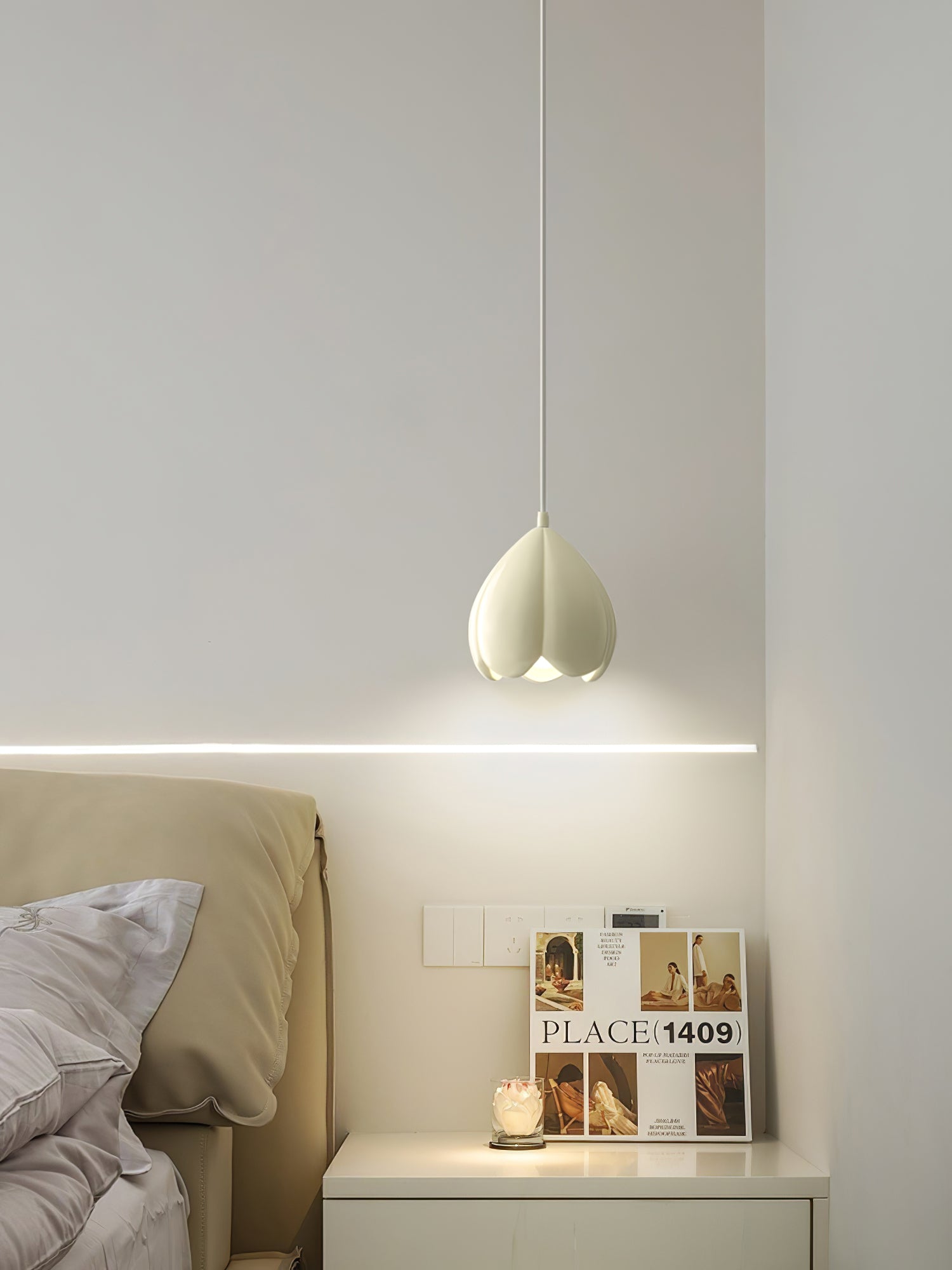 Kukkanuppu-riippuvalaisin on täydellinen yhdistelmä modernia yksinkertaisuutta ja luonnon inspiroimaa muotoilua. Tämä herkän kermanvarjostimen valaisin näyttää kukkimaan valmiilta kukalta, joka lisää ripauksen eleganssia mihin tahansa huoneeseen. Sen sulavalinjainen, minimalistinen tyyli tekee siitä täydellisen erilaisiin sisustusteemoihin.