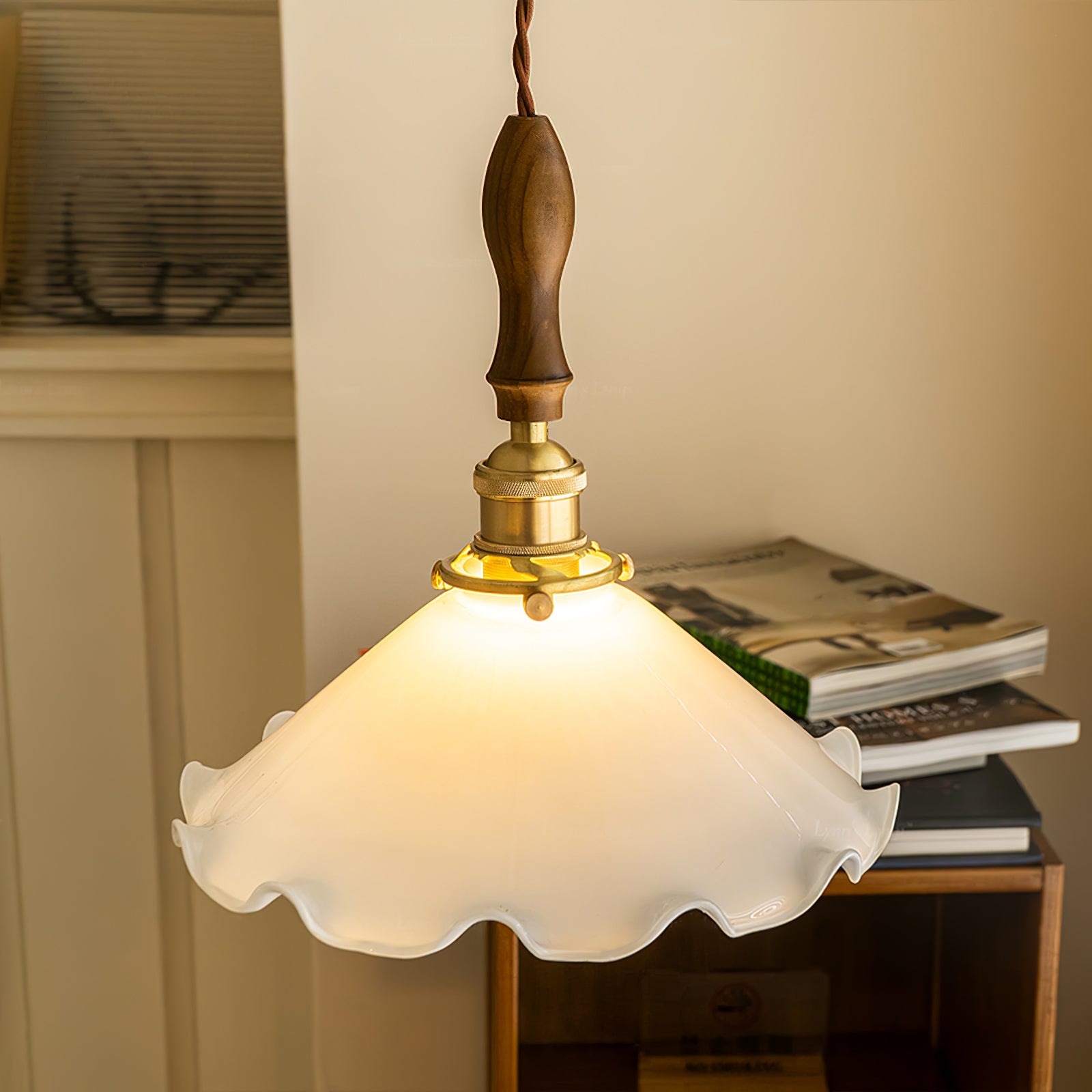 Materiaali: messinki, lasi, pähkinä.