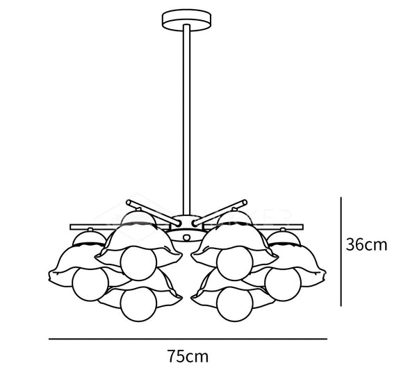 Ripustustangon pituus 50cm/19,7″. Ripustustangon pituutta voidaan muuttaa pyynnöstä.