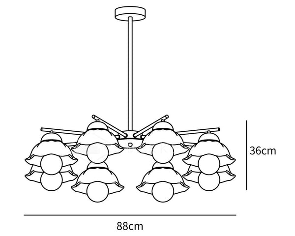 8 päätä Koko: Halkaisija 88 cm x K 36 cm / ∅ 34,6″ x K 14,2″