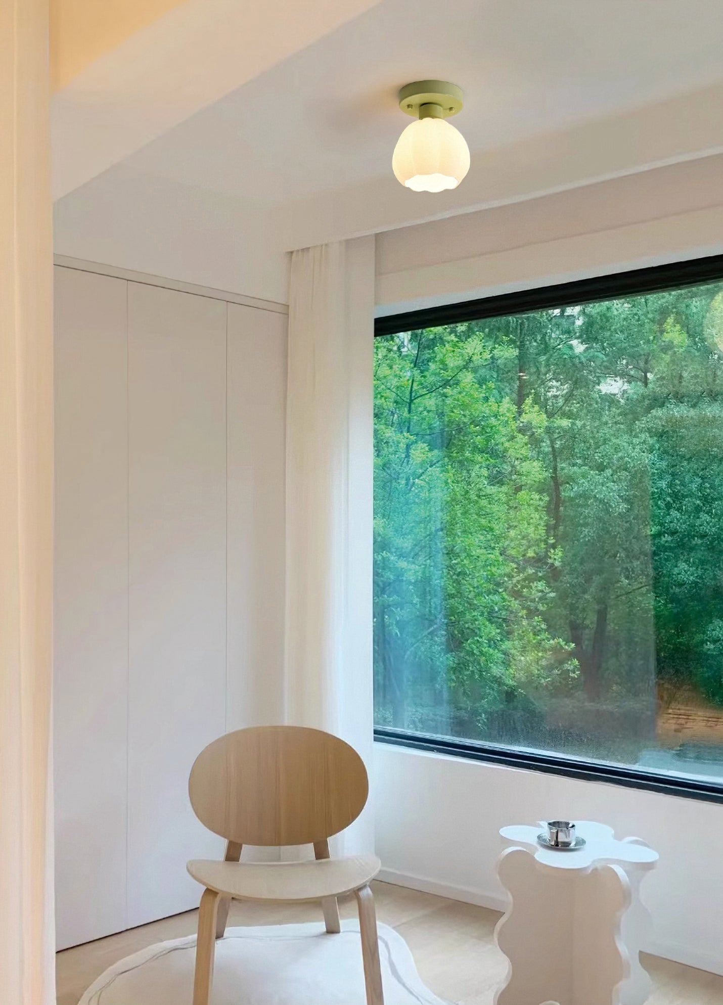 Kukkavarjostettu Semi Flushmount Light on valmistettu lasi- ja metallimateriaalien yhdistelmästä. Kukkamainen varjostin on valmistettu lasista, joka on muotoiltu hienovaraisesti luomaan kiehtovan visuaalisen vaikutelman. Metalliosat, kuten pohja ja runko, tarjoavat rakenteellista tukea ja lisäävät valaisimen yleistä esteettistä vetovoimaa. Harmoninen lasi- ja metallielementtien sekoitus lisää muotoiluun ripauksen eleganssia ja hienostuneisuutta.