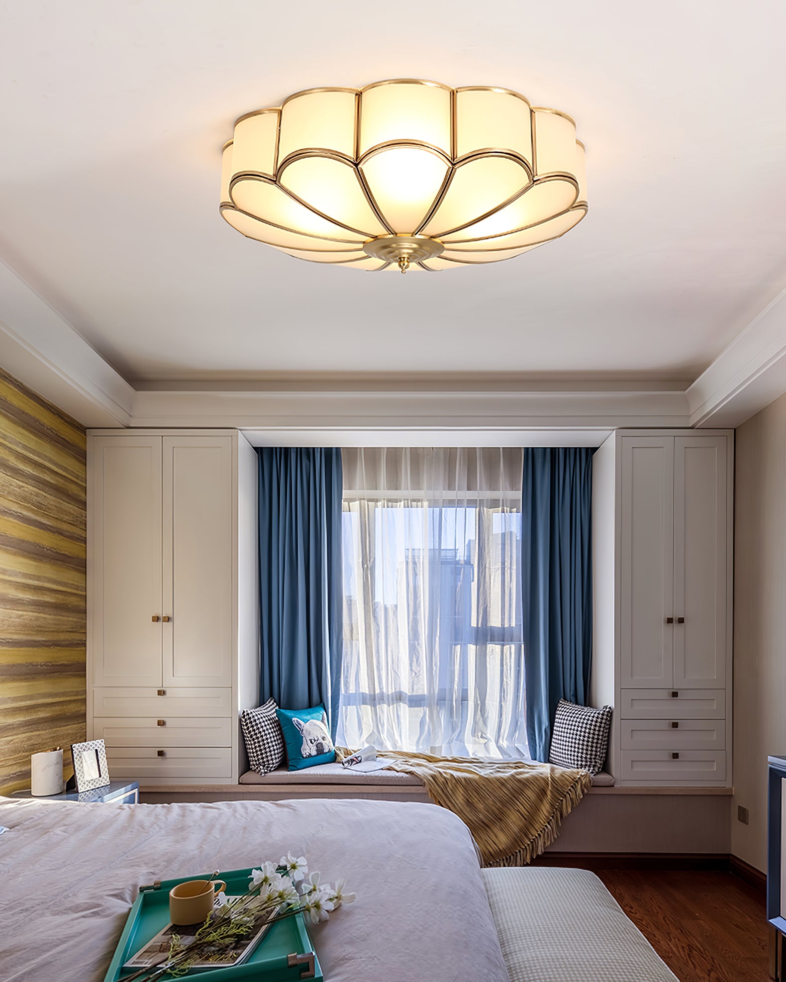 Täydellinen sekoitus taiteellisuutta ja käsityötaitoa, tämä kukkamuotoinen lasi upotettava kattovalaisin nostaa tunnelmaa minkä tahansa kodin tyyliin. Valmistettu ylellisestä himmeästä lasista messinkiviimeistelyllä, se mahdollistaa hellävaraisen valaistuksen ja kolmiulotteisen visuaalisen tehosteen koristaa minkä tahansa makuuhuoneen, työhuoneen, parvekkeen tai käytävän ripauksella postmodernia kevyttä ylellisyyttä.