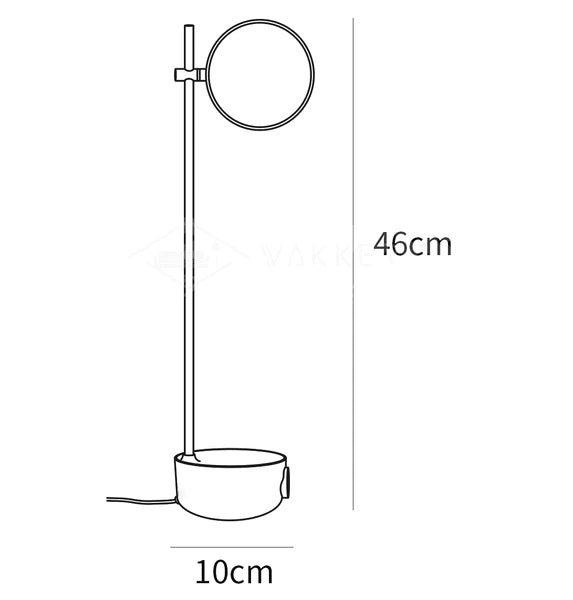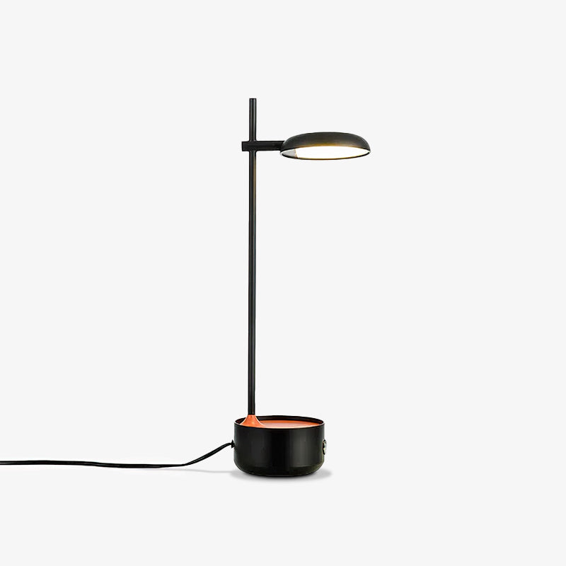 Focal LED-pöytävalaisin matala astia taskussa pitämiseen. Sen pohja on painotettu vastapainoksi lampun päälle, joka kallistuu vasemmalle tai oikealle ja myös pyörii 180 astetta ohuessa pylvässään tarkan valaistuksen ohjaamiseksi.
