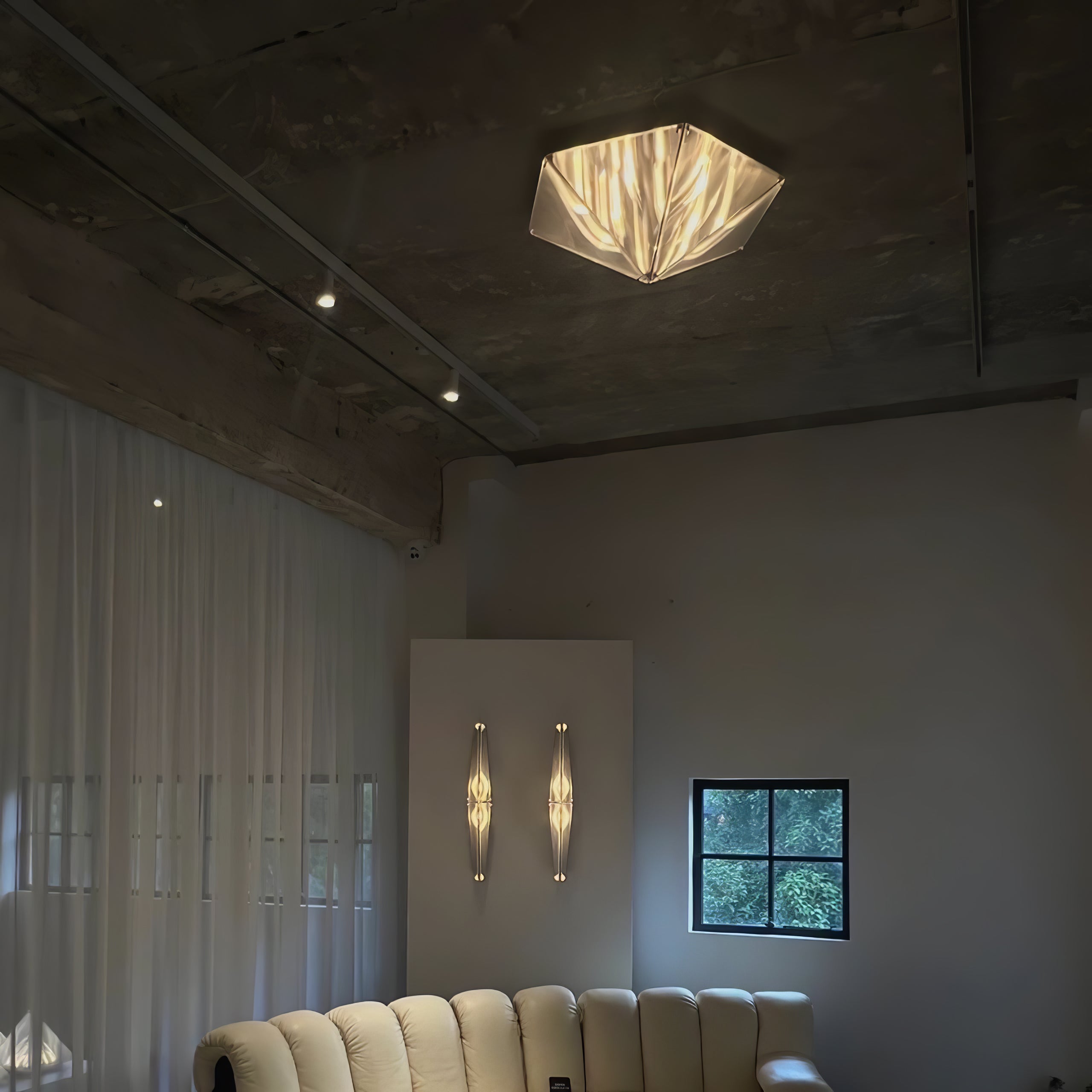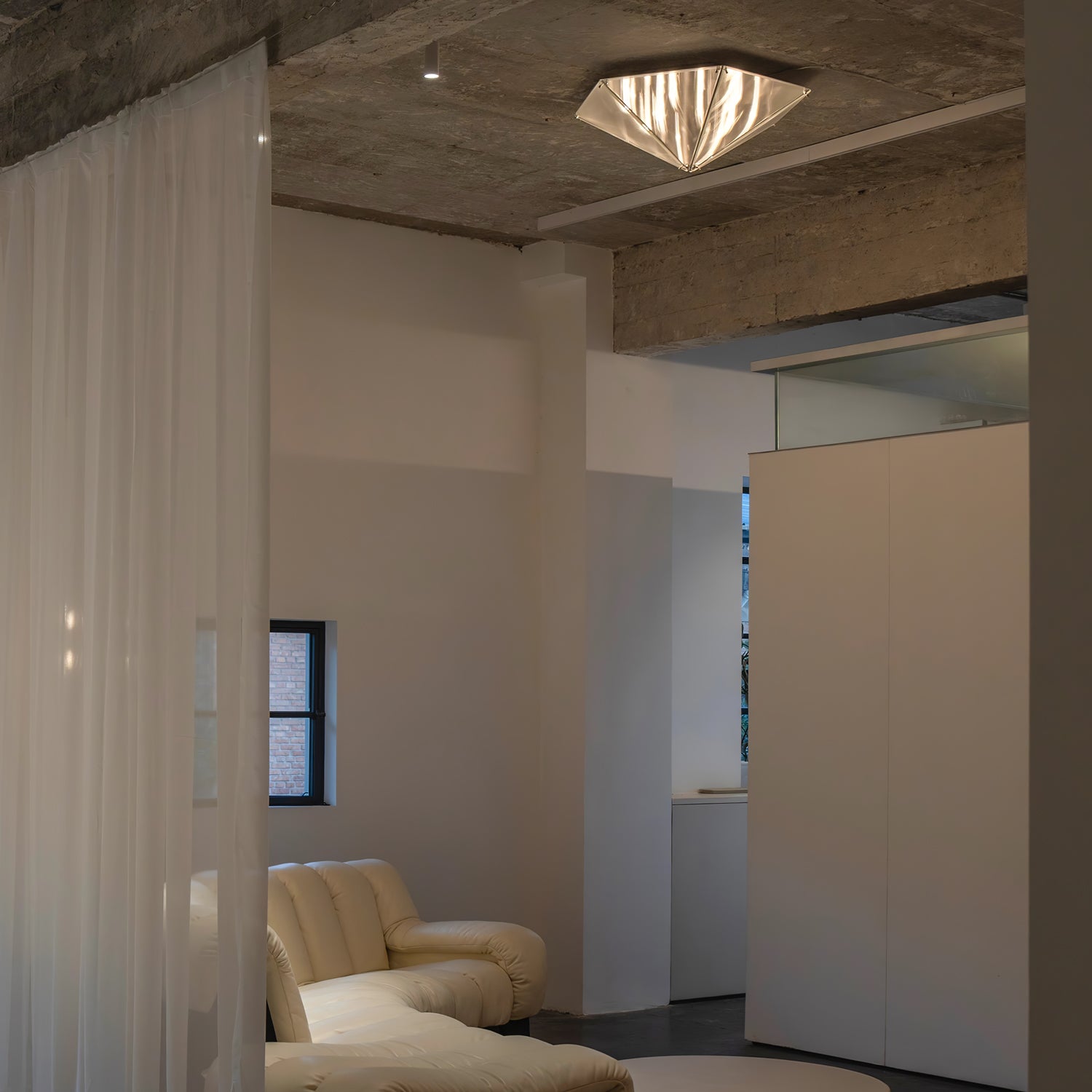 'Fragment' Celing -valaisin Käytetty kuvioitu lasi, joka voi vääristää valon suuntaa ja luoda erikoisvaikutelman, joka on saanut inspiraationsa länsimaisen goottilaisen kirkon arkkityypistä ja kirkon värikkäiden ikkunoiden luomasta salaperäisestä tunnelmasta muuttaen arkkitehtonisen kielen hänen valaistukseensa sarja 'fragment'.