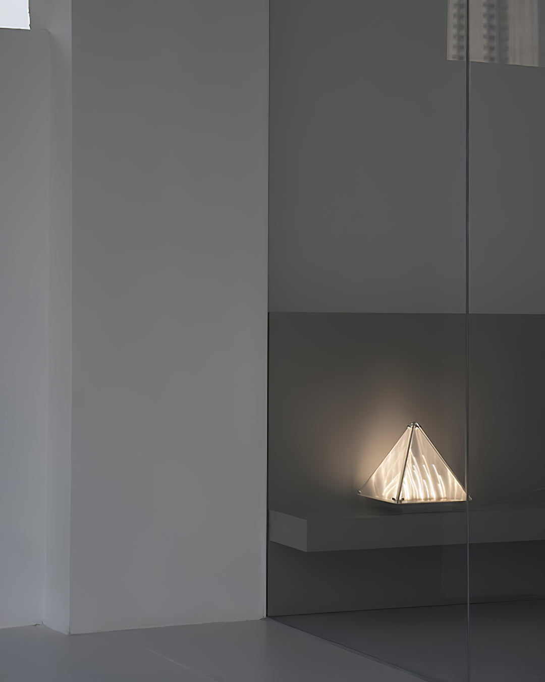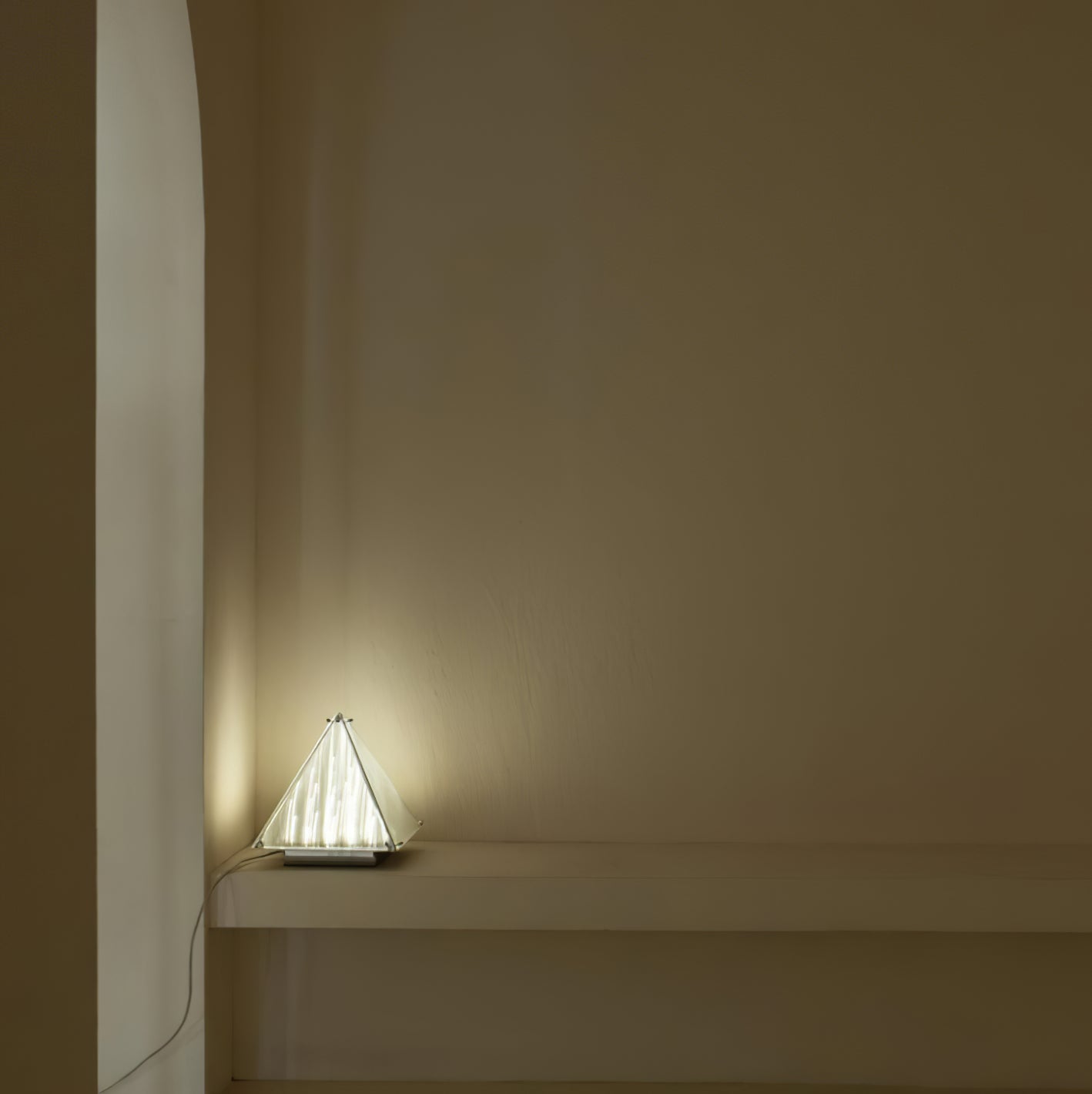 'Fragment' Pöytävalaisin käytetty Kuvioitu lasi, joka voi vääristää valon suuntaa ja luoda erikoisvaikutelman, joka on saanut inspiraationsa länsimaisen goottilaisen kirkon arkkityypistä ja kirkon värikkäiden ikkunoiden luomasta salaperäisestä tunnelmasta muuttaen arkkitehtonisen kielen hänen valaistukseensa sarja 'fragment'.