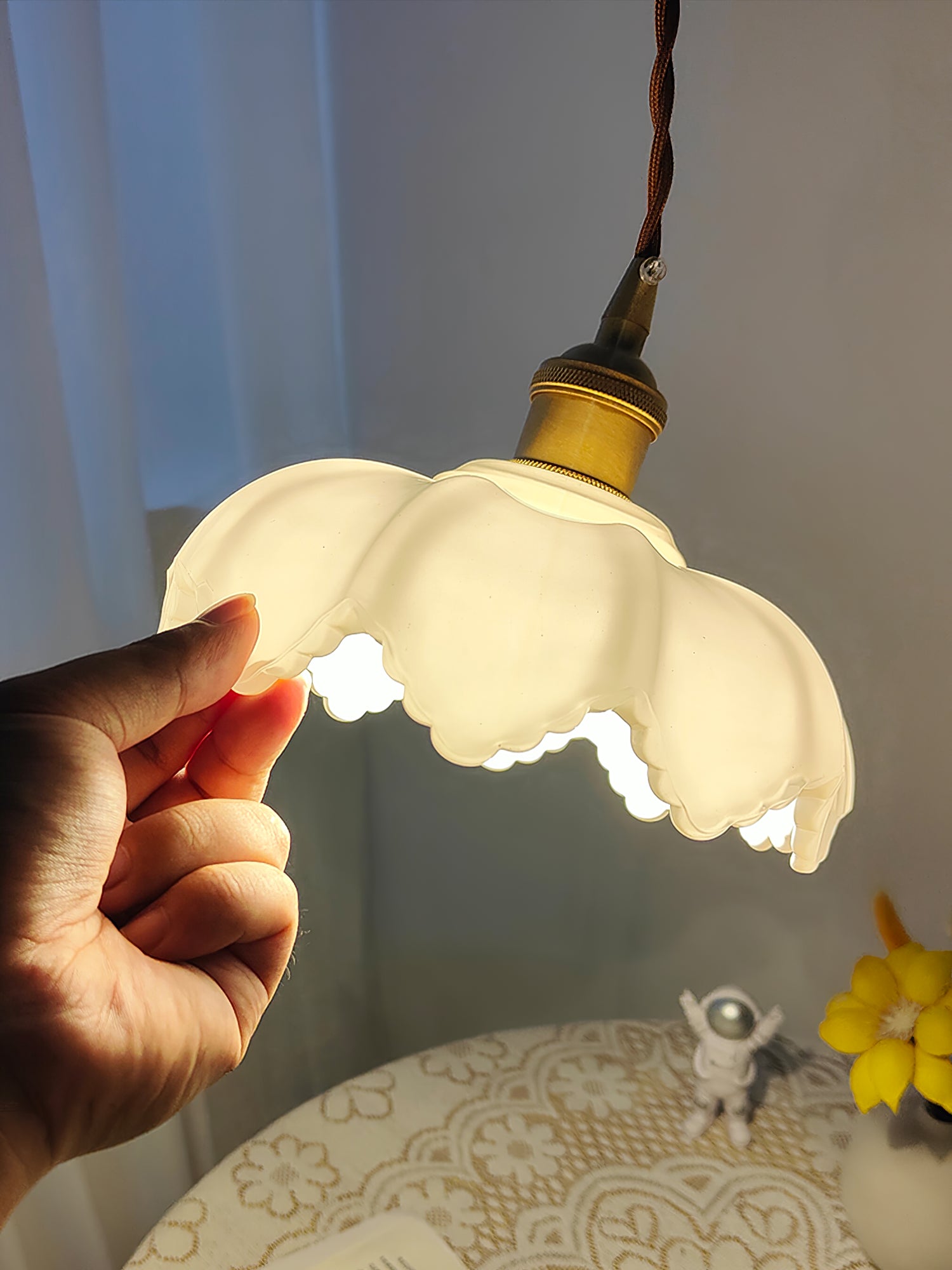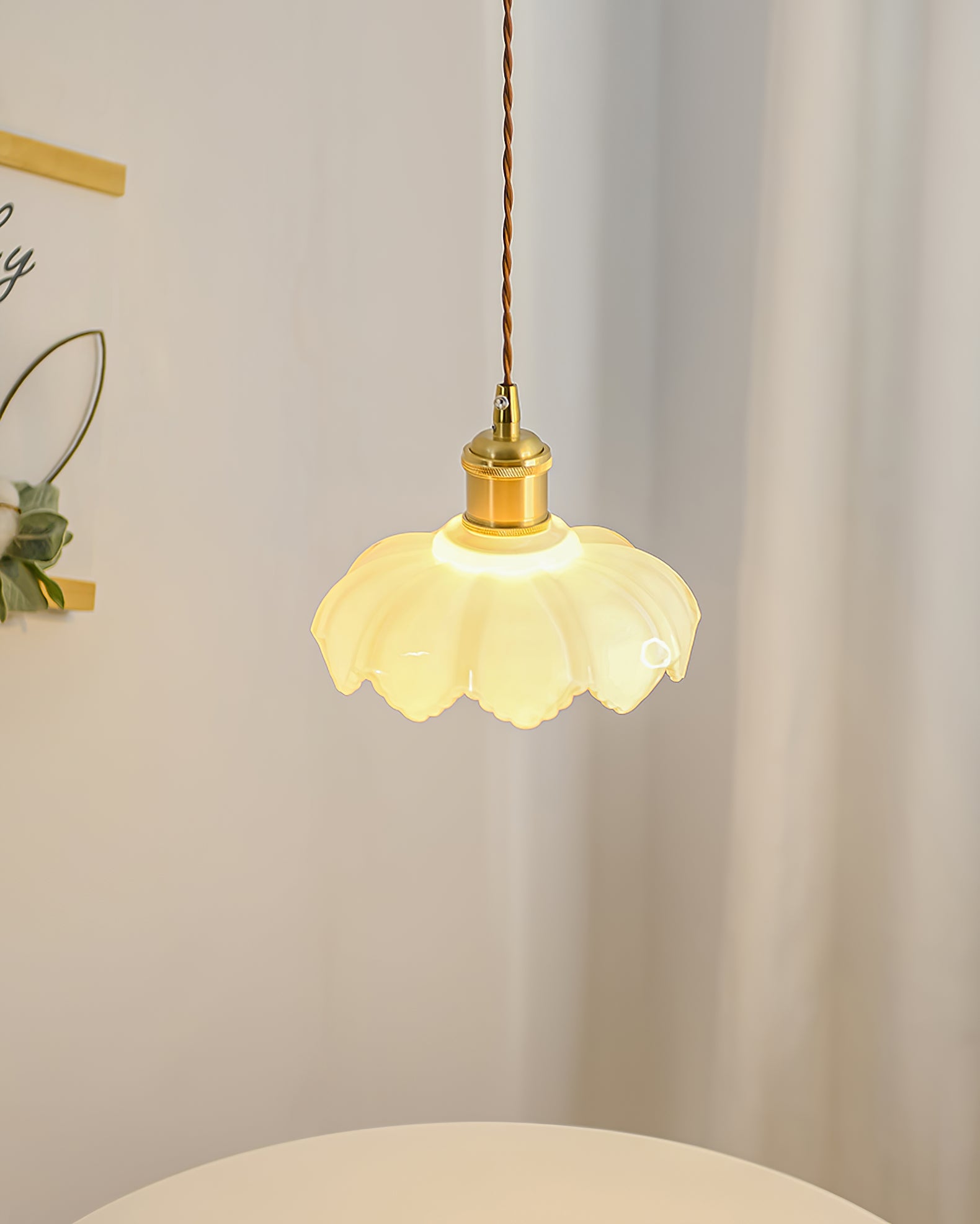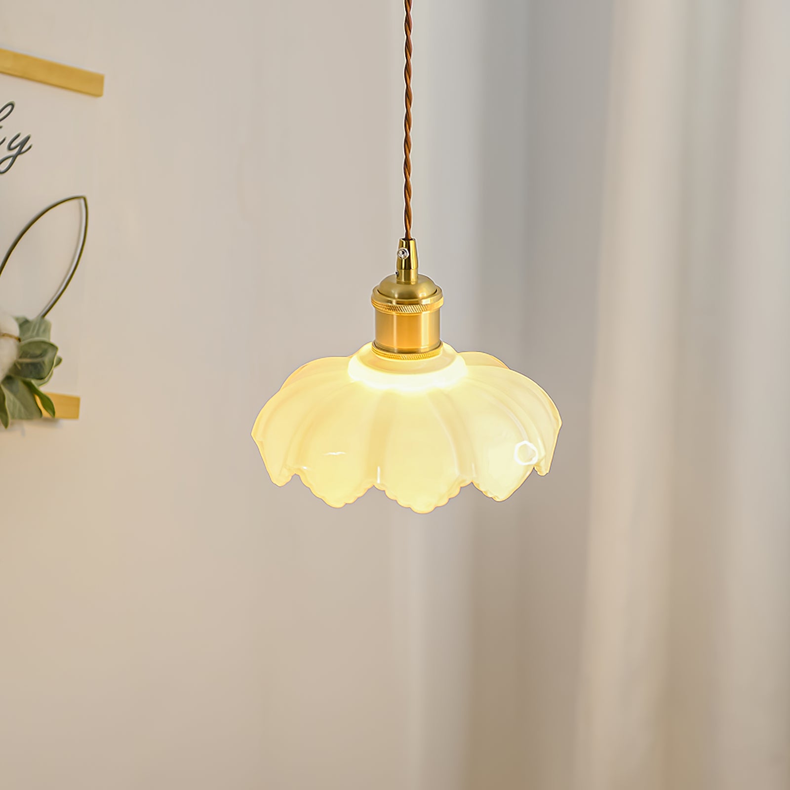 Ranskalainen terälehtivalaisimemme on valmistettu korkealaatuisesta messingistä ja lasista tyylikkään ja tyylikkään muotoilun saavuttamiseksi. Valo säteilee lämmintä hehkua ja lisää modernia eleganssia mihin tahansa huoneeseen. Täydellinen polttopisteen luomiseen missä tahansa ympäristössä.