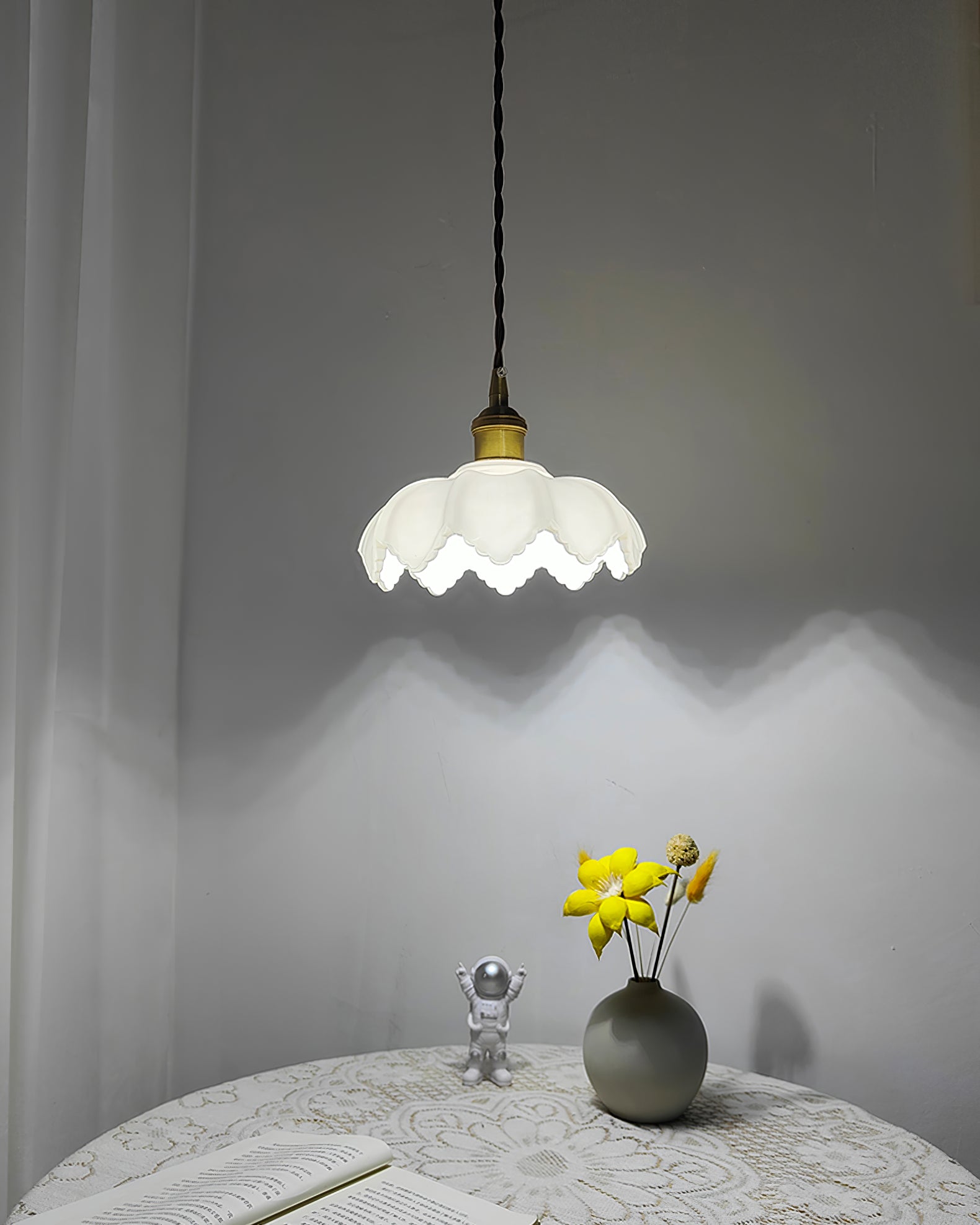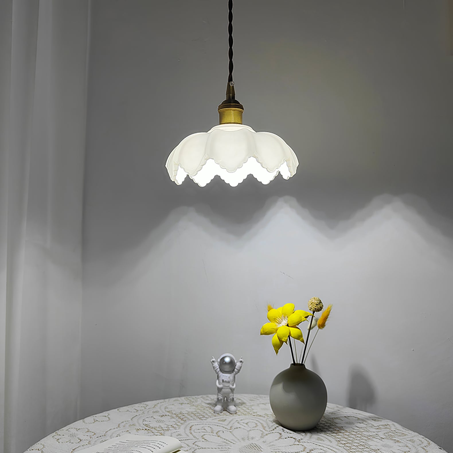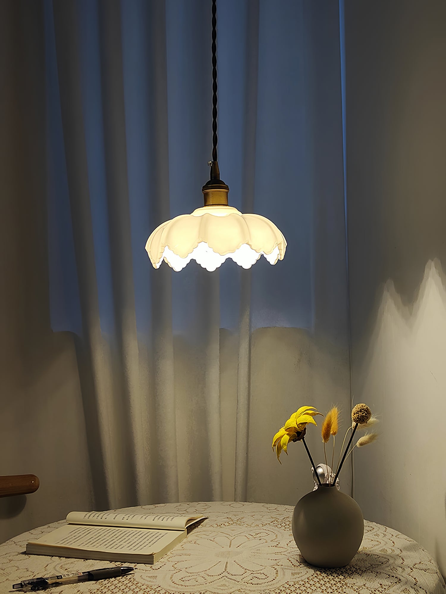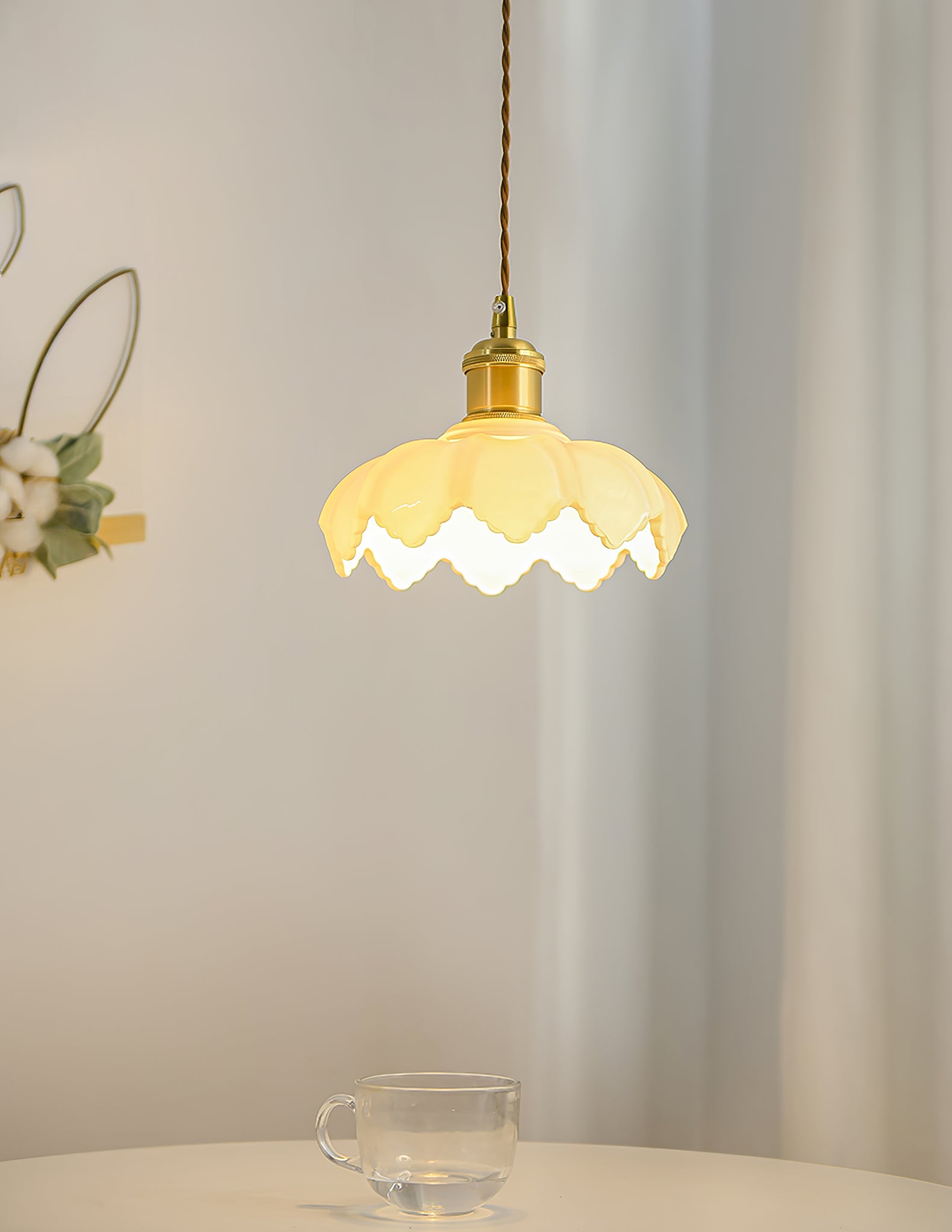 Ranskalainen terälehtivalaisimemme on valmistettu korkealaatuisesta messingistä ja lasista tyylikkään ja tyylikkään muotoilun saavuttamiseksi. Valo säteilee lämmintä hehkua ja lisää modernia eleganssia mihin tahansa huoneeseen. Täydellinen polttopisteen luomiseen missä tahansa ympäristössä.
