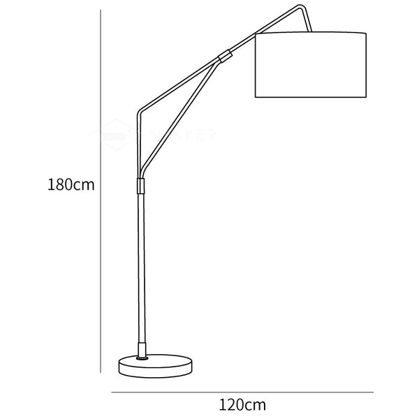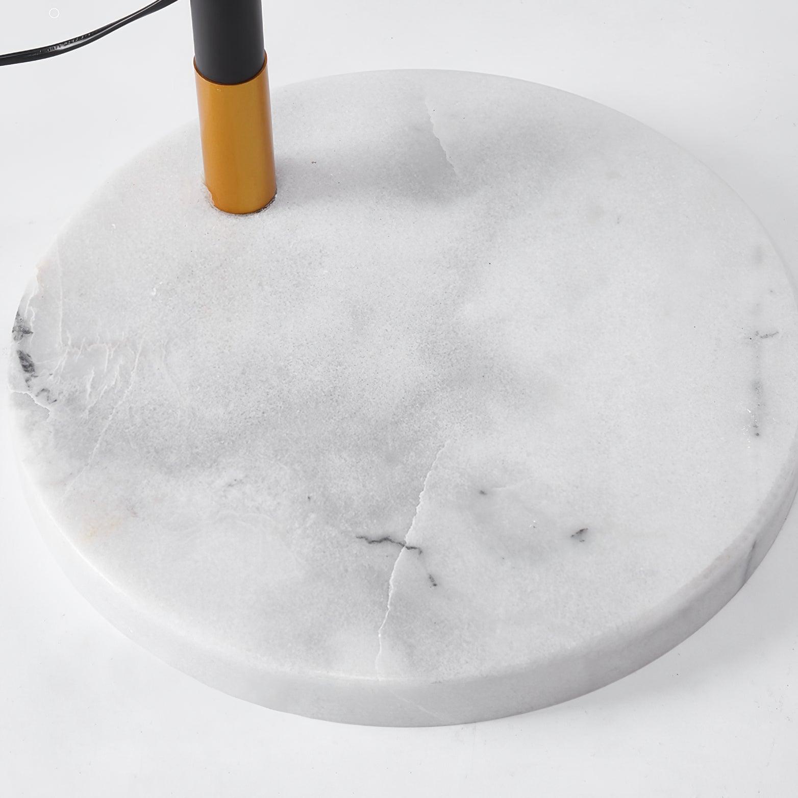 Fulton-lattiavalaisimessa on dramaattinen läsnäolo ylisuurella pellavavarjostimella, joka on ripustettu kulmikkaasta, kultapetsatusta rautakangosta. Marmorisessa pyöreässä pohjassa on tyypillinen valkoinen tausta vaaleanharmaalla juonteella ja se lisää elegantin, kiinteän aksentin tähän moderniin kappaleeseen.