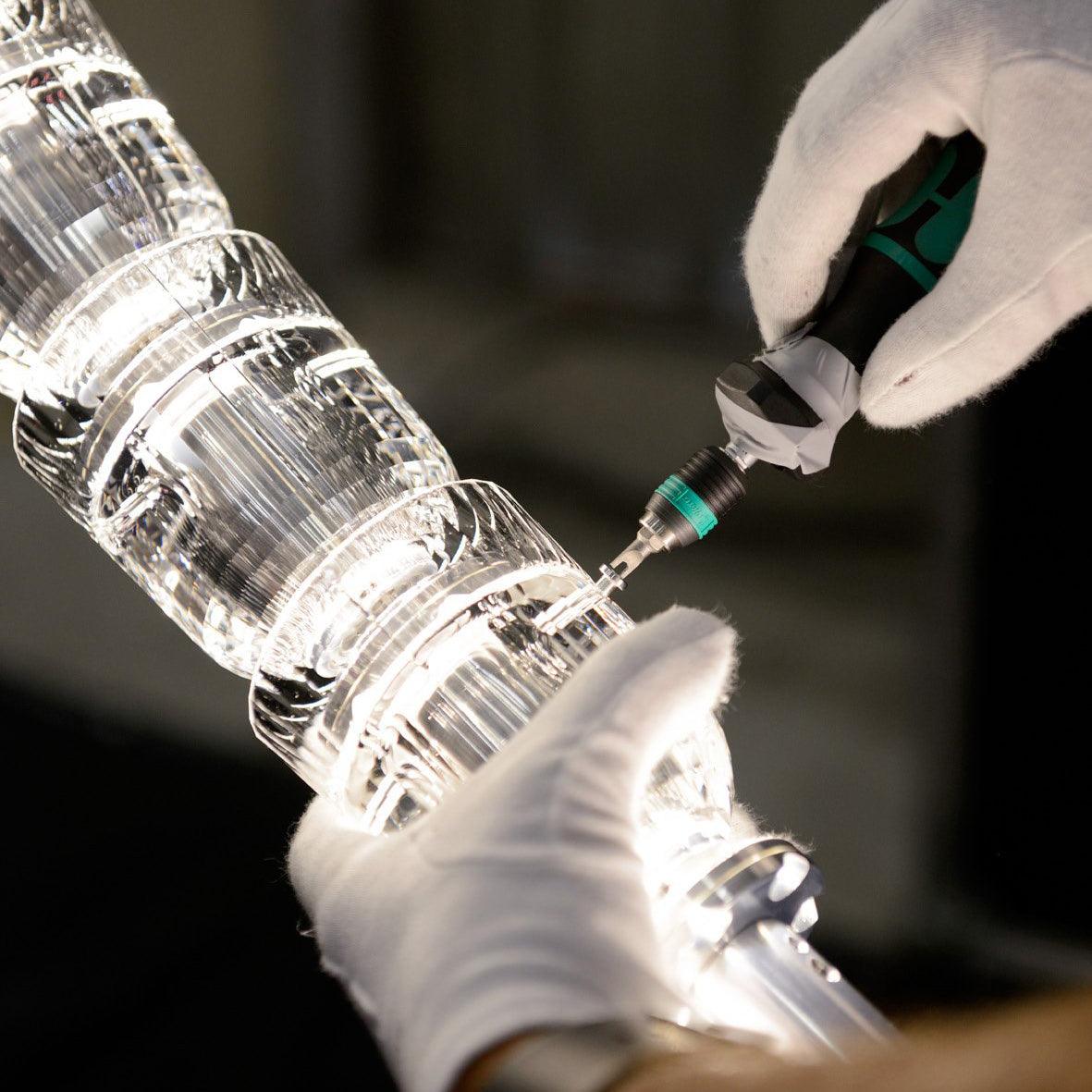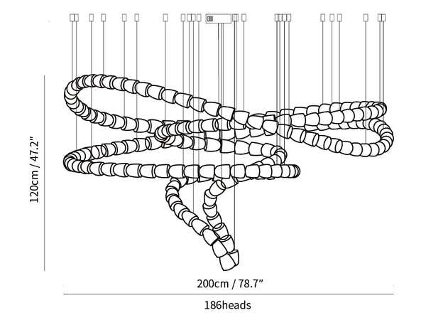 Gabriel Chandelier B:n suunnittelu on saanut inspiraationsa käärmeen tyylikkäästä muodosta ylhäältä. Siinä on huolellisesti kierretty spiraalirakenne, joka luo illuusion tyylikkäästi liikkuvasta käärmeestä. Kunkin osan muoto ja sijainti on suunniteltu tarkasti vangitsemaan käärmeen vartalon kiemurteleva ja sileä luonne, ja se kiinnittää katseen pystysuoralla eleganssilla. Valaistuksen strateginen sijoitus näissä osissa antaa tarkoituksenmukaista hehkua, joka vahvistaa kattokruunun hypnoottista ja dynaamista siluettia, mikä tekee siitä syvällisen kannan mihin tahansa korkeakattoiseen tilaan, joka haluaa ilmaista villiä hienostuneessa veistoksellisessa muodossa.