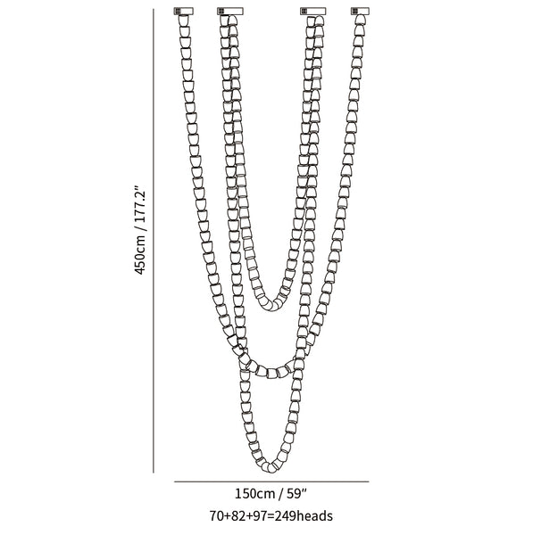 Gabriel Chandelier G tarjoaa kiehtovan valokaskadin, joka muistuttaa käärmeen sulavaa viehätystä. Suunnittelussa on useita yhdistettyjä kierresegmenttejä, jotka sulautuvat tyylikkäästi yhteen ja eroavat muodostaen V-muotoisen riipuksen, joka herättää käärmeen hypnoottisen liikkeen. Yksittäisten elementtien herkkä järjestely luo liikkeen ja syvyyden tunteen, ikään kuin käärme heiluisi lempeästi lumoavassa rytmissä. Valaisimen dramaattinen pystysuora pudotus tekee siitä katseenvangitsijan keskipisteen missä tahansa huoneessa, kun taas integroitu valaistus luo rauhallisen tunnelman ja korostaa valaisimen ohutta eleganssia. Se on nerokas sekoitus orgaanista inspiraatiota ja modernia muotoilua, joka on täydellinen lisäämään ripauksen draamaa minimalistiseen tai moderniin sisustukseen.