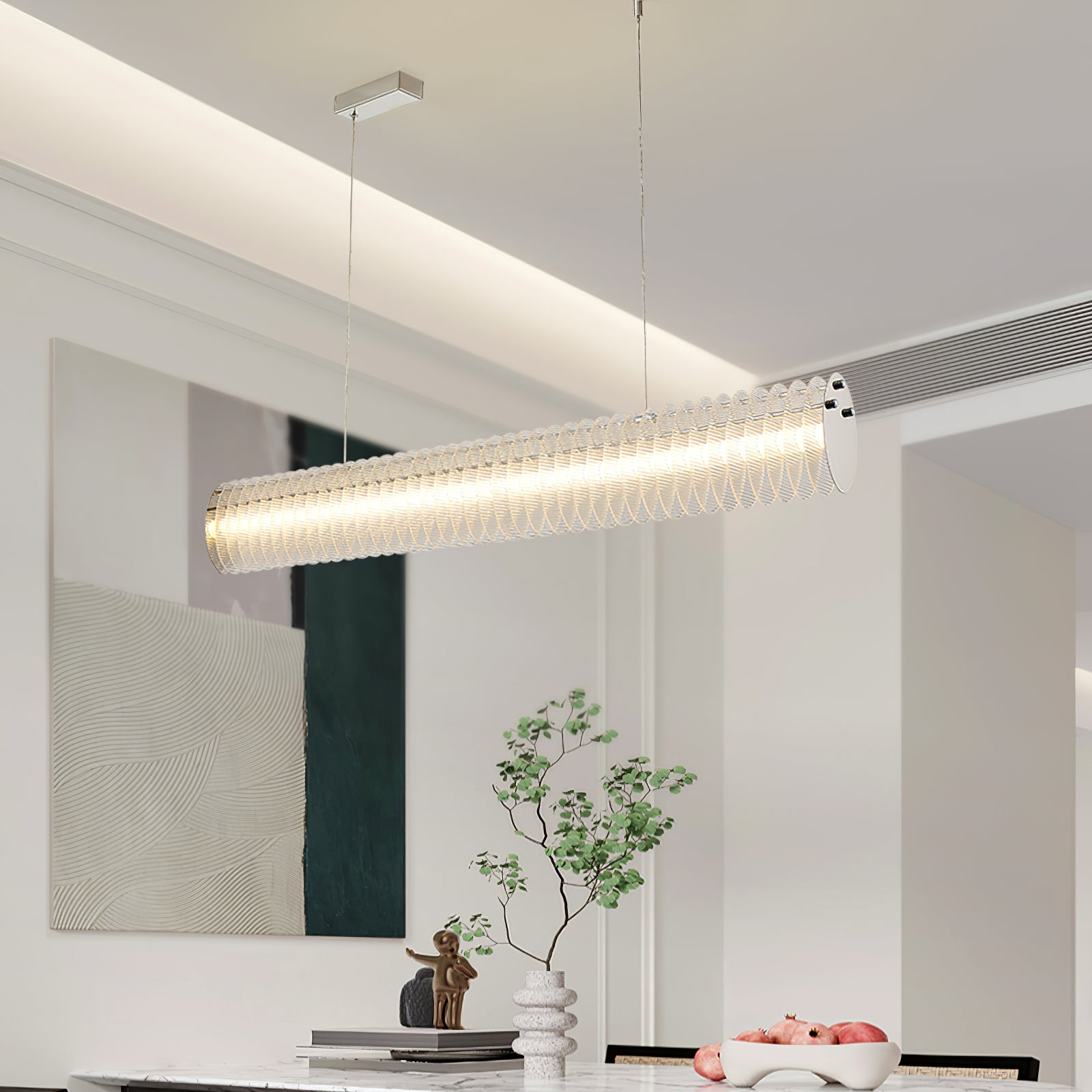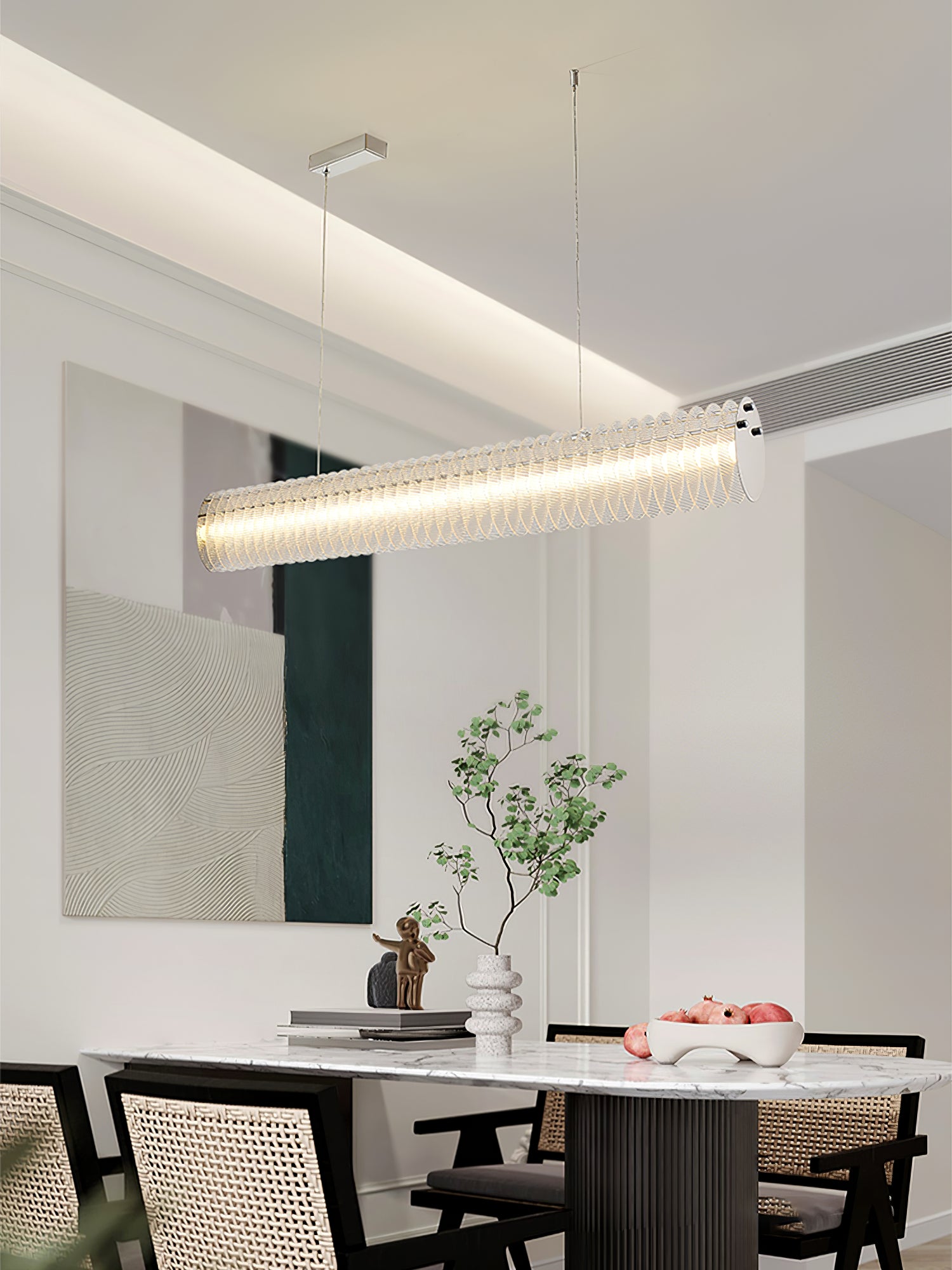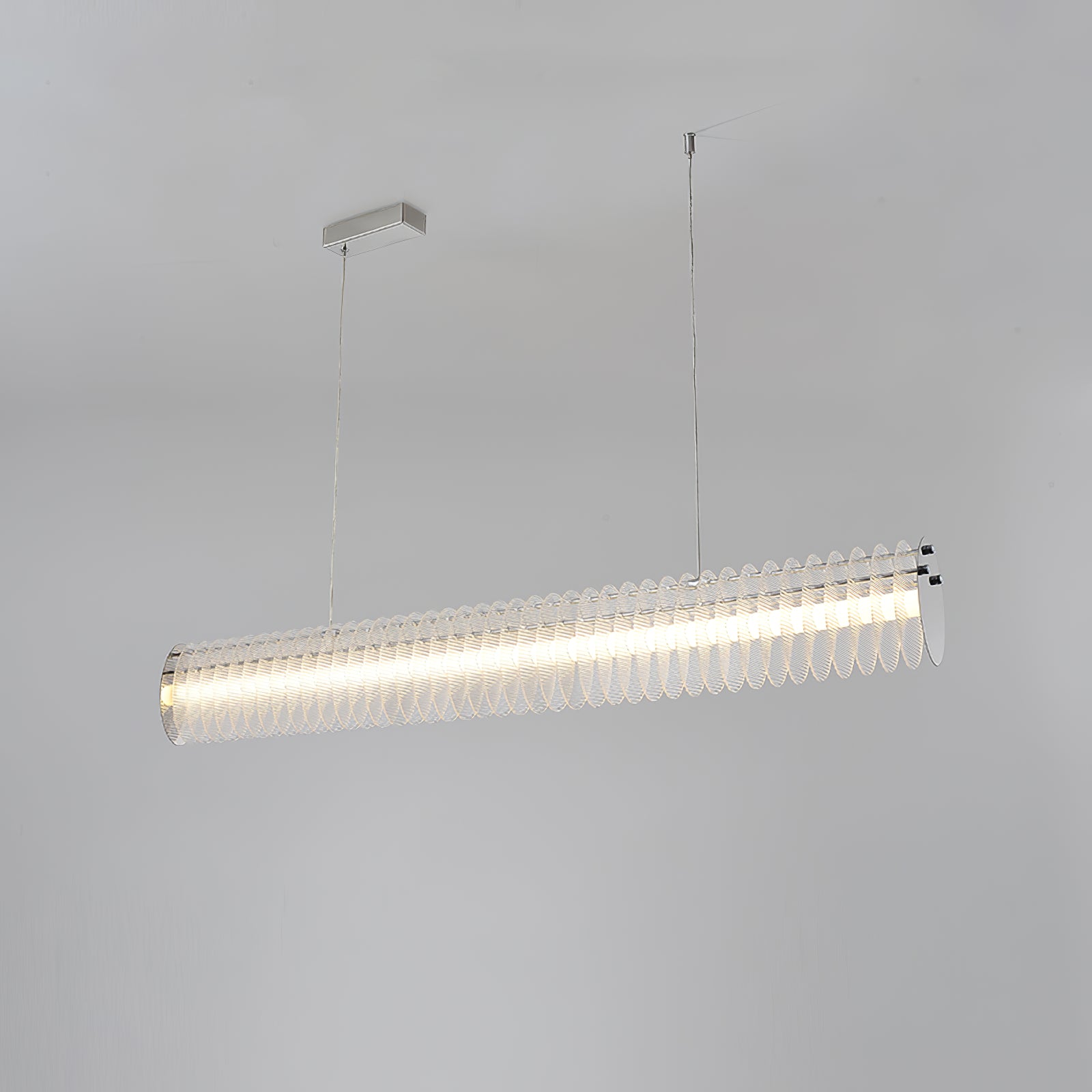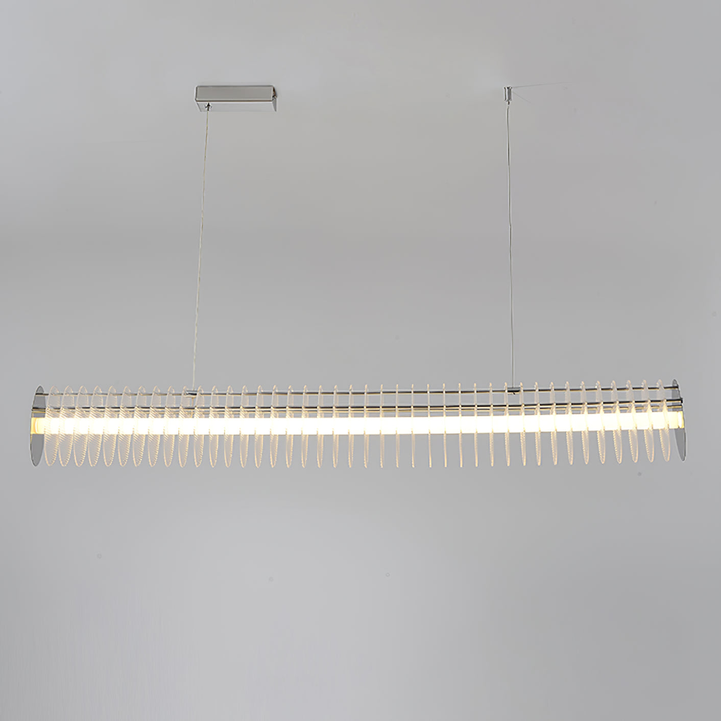 Koko: P 120 cm x L 8 cm x K 15 cm / P 47,2″ x L 3,1″ x K5,9″ (teho ~ 48 W) Koko: P 150 cm x L 8 cm x K 15 cm / P 59″ x L 3,1″ x K 5,9″ (teho ~ 60 W) Tiedot Materiaalit: metalli, akryyli. Valonlähde: Integroitu LED Kelvin-alue: lämmin valo (3000K), neutraali valo (4000K), viileä valo (6000K) Jännite: AC 110-240V. Asennus: Ceiling. Kosteudenkestävyys: IP 20 Kosteusluokitus, ei vedenpitävä, vain sisäkäyttöön. Ympäristö: Sisätilat. Runkopinnat: Chrome. Sävyviimeistely: Läpinäkyvä. Johdot: kiinteä. Ohjaus: Yhteensopiva yleisten painokytkimien kanssa. (ei sisälly) 59″ Säädettävä ripustuskorkeuskaapeli, jota voidaan pidentää tarpeen mukaan. Certification: UL ja CE, ETL, SAA luettelossa.