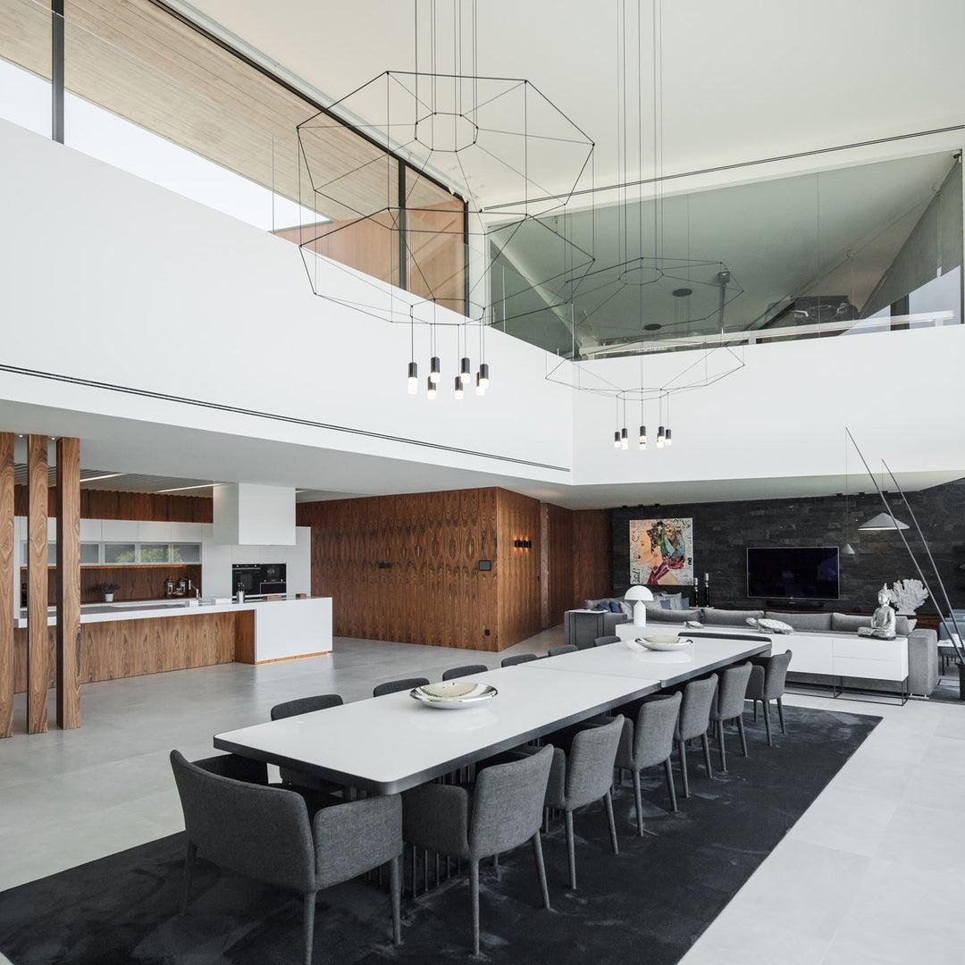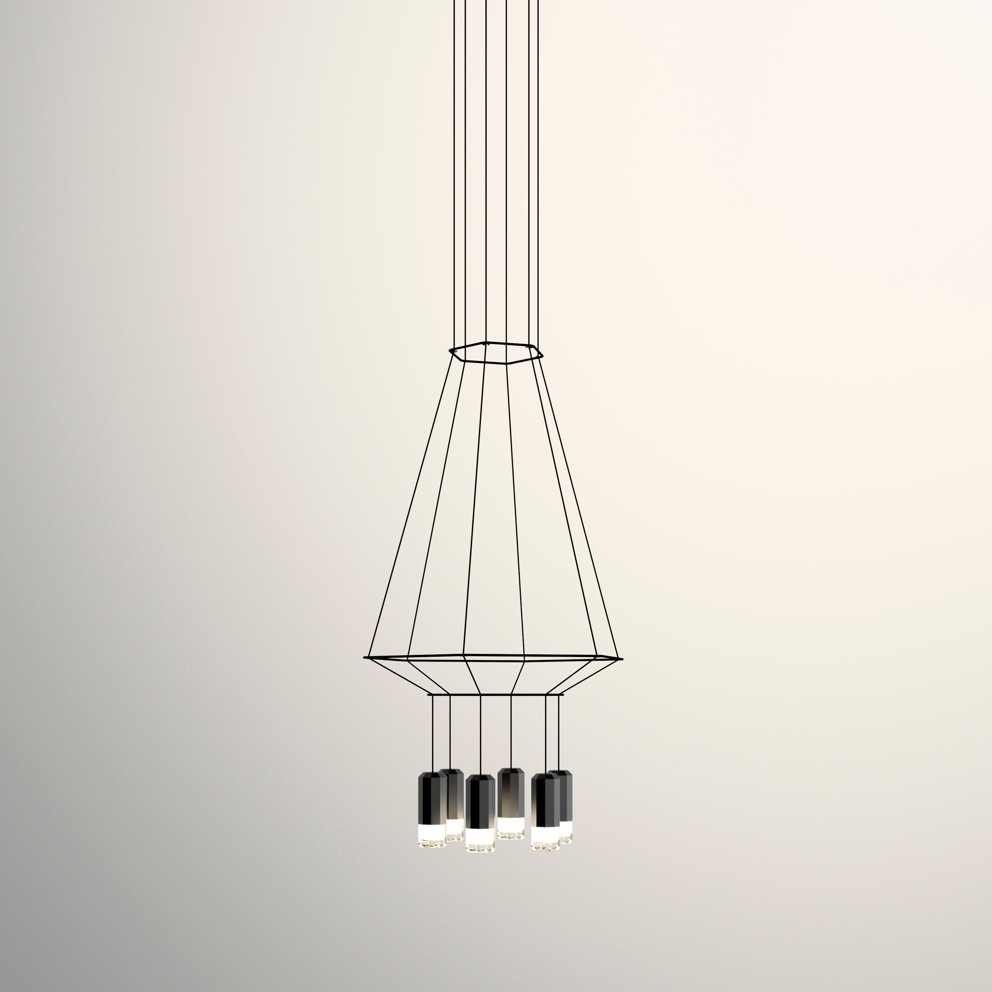 Wireflow-kokoelman sähkökaapelit jäljittelevät kolmiulotteisia geometrioita, jotka suuresta koostaan huolimatta luovat läpinäkyvyyden tunteen, joka määrittelee tämän valaisimen kiehtovan graafisen tunteen.