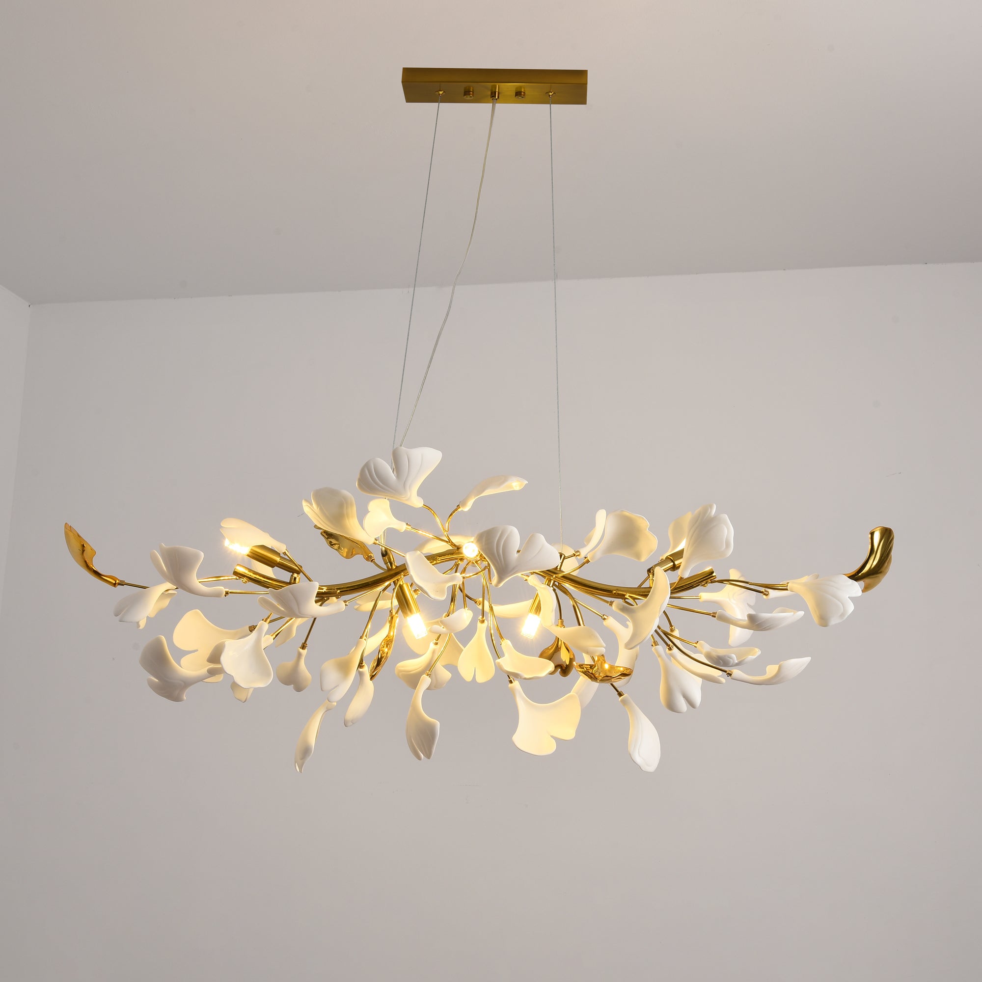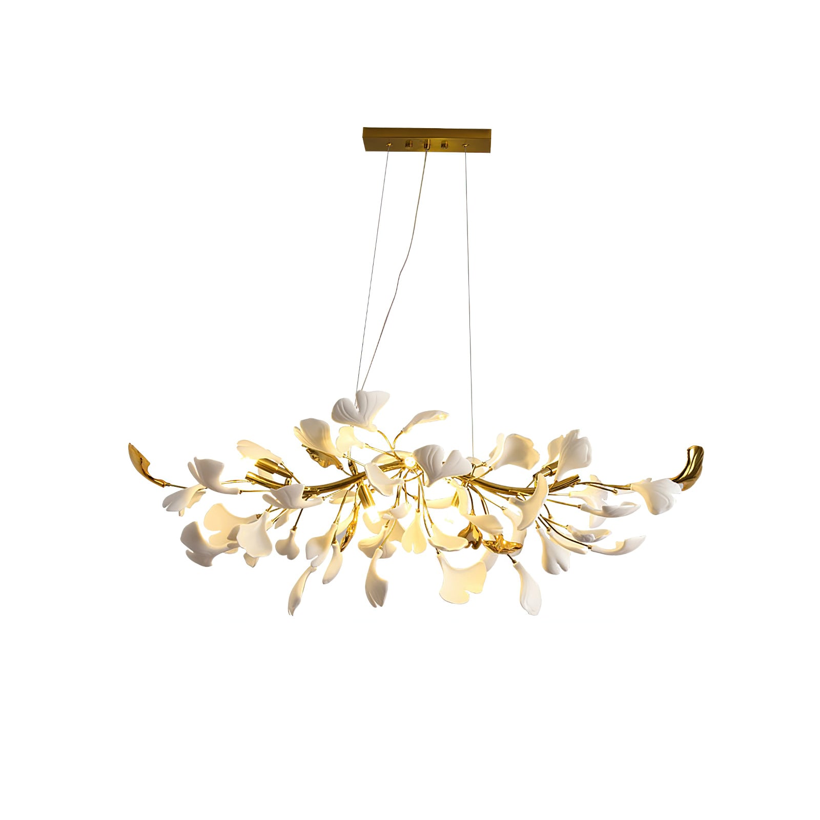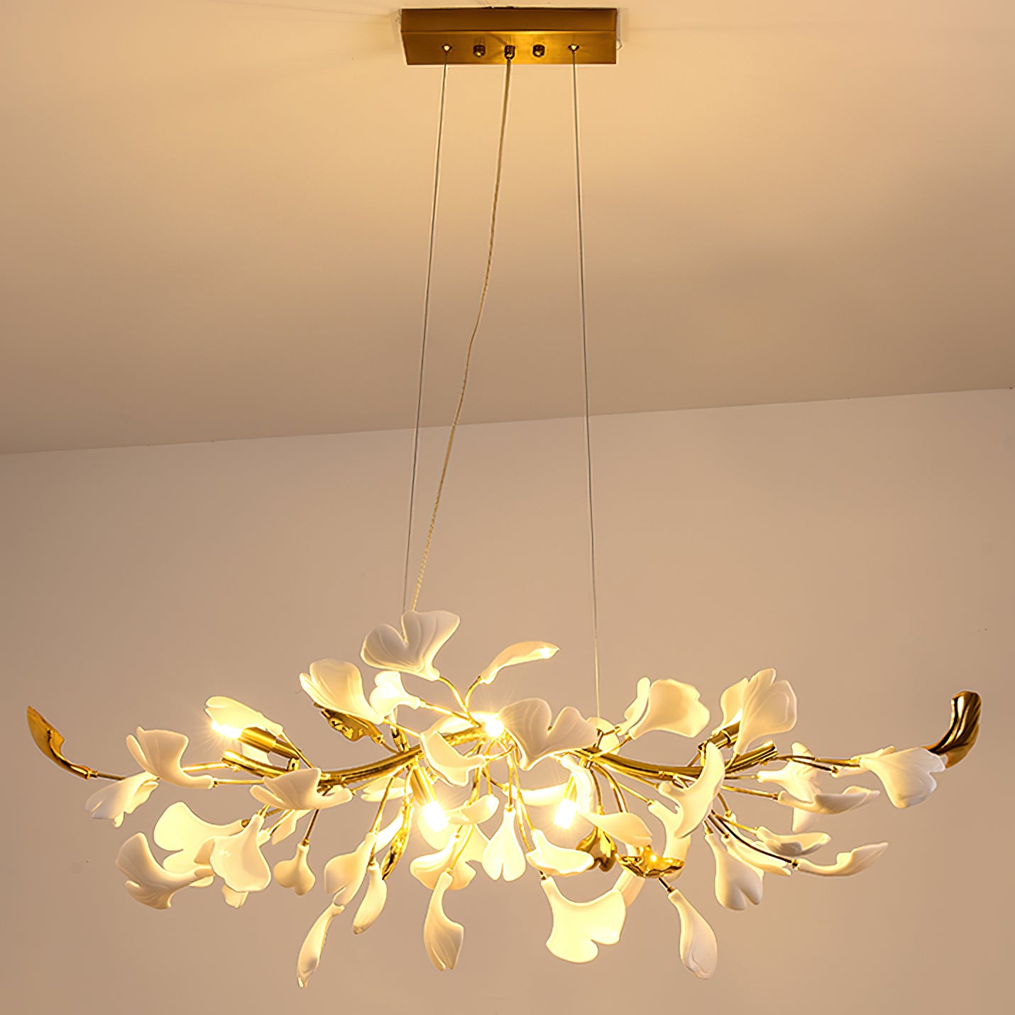 Valaise kotisi tällä ylellisellä Ginkgo Petal -keraamisella kattokruunulla. Ainutlaatuisessa muotoilussa on metallinen valaisinrunko upeilla keraamisilla terälehdillä, joissa yhdistyvät moderni valaistus ja luonnonkasveja. Nauti luonnollisesta ja ylellisestä viehätysvoimasta kotonasi.