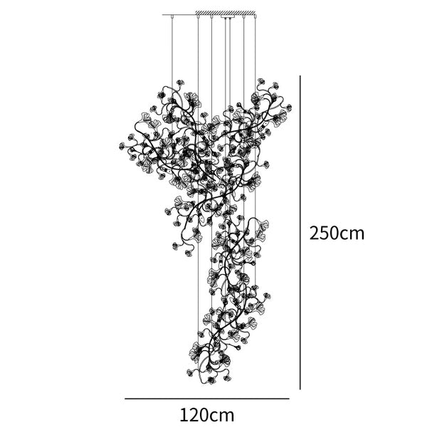 Tämä keraaminen ginkgo-puun terälehtikruunu näyttää ylellisen tyylinsä yleisessä suunnittelussa, materiaalissa ja valmistustekniikassa. Messinkivalaisimen runko on peitetty hienoilla keraamisilla terälehdillä, mikä heijastaa valaistussuunnittelun ja luonnonkasvien täydellistä yhdistelmää.