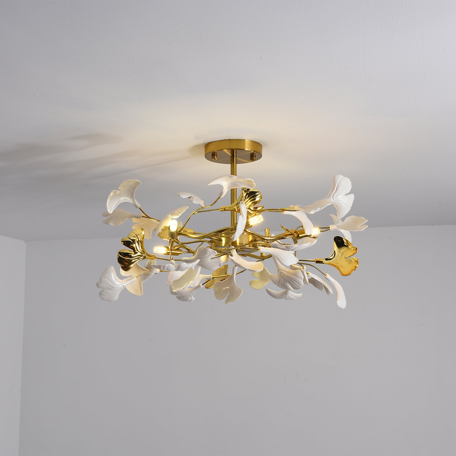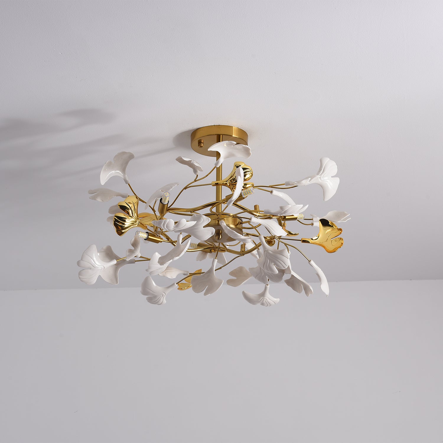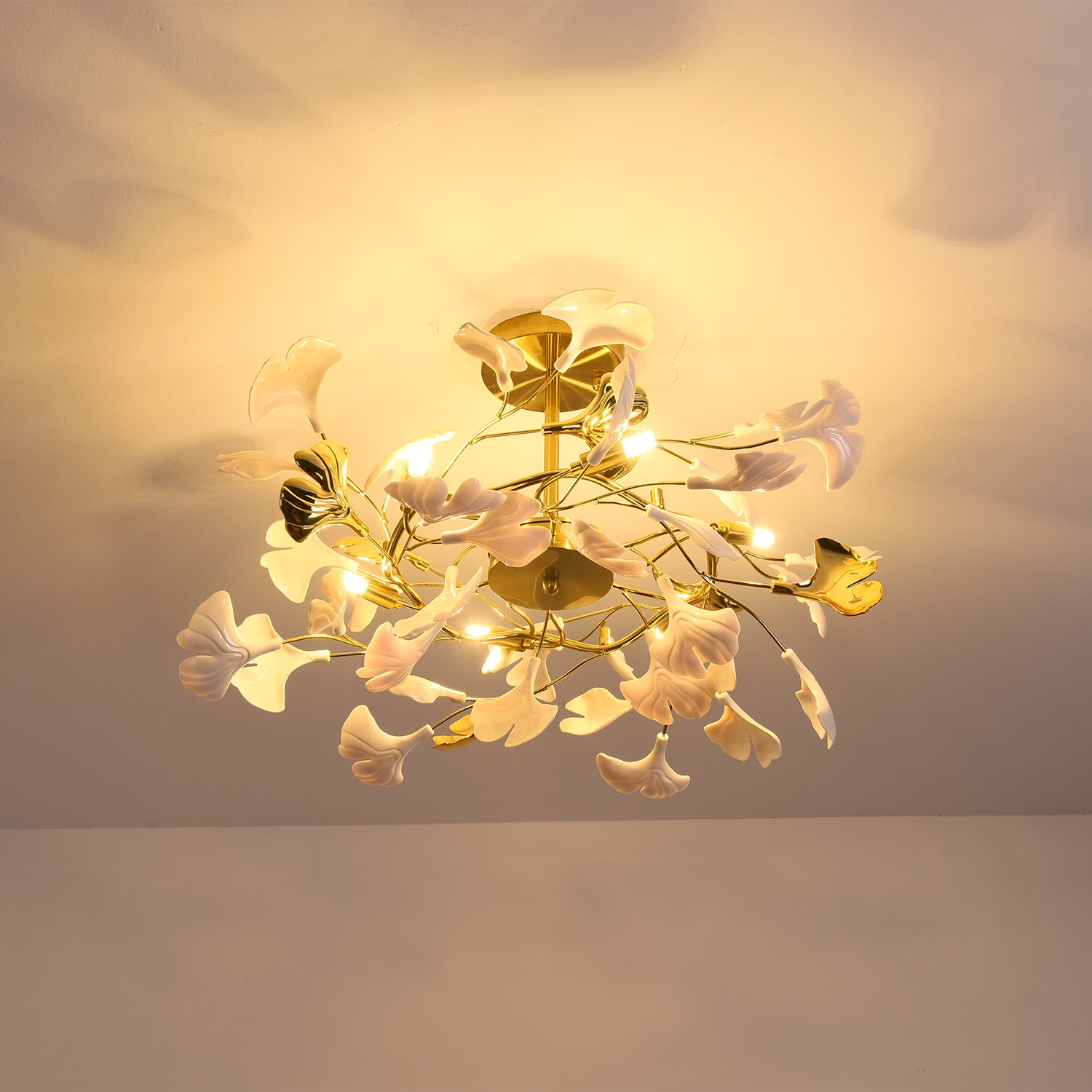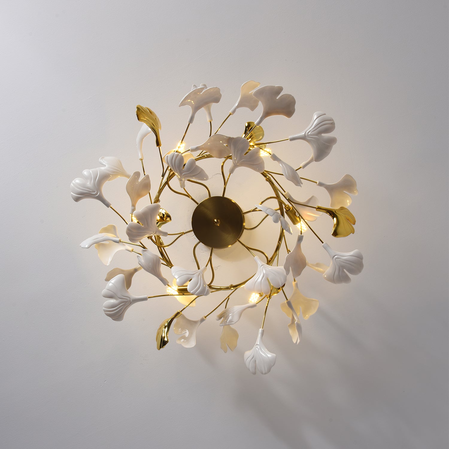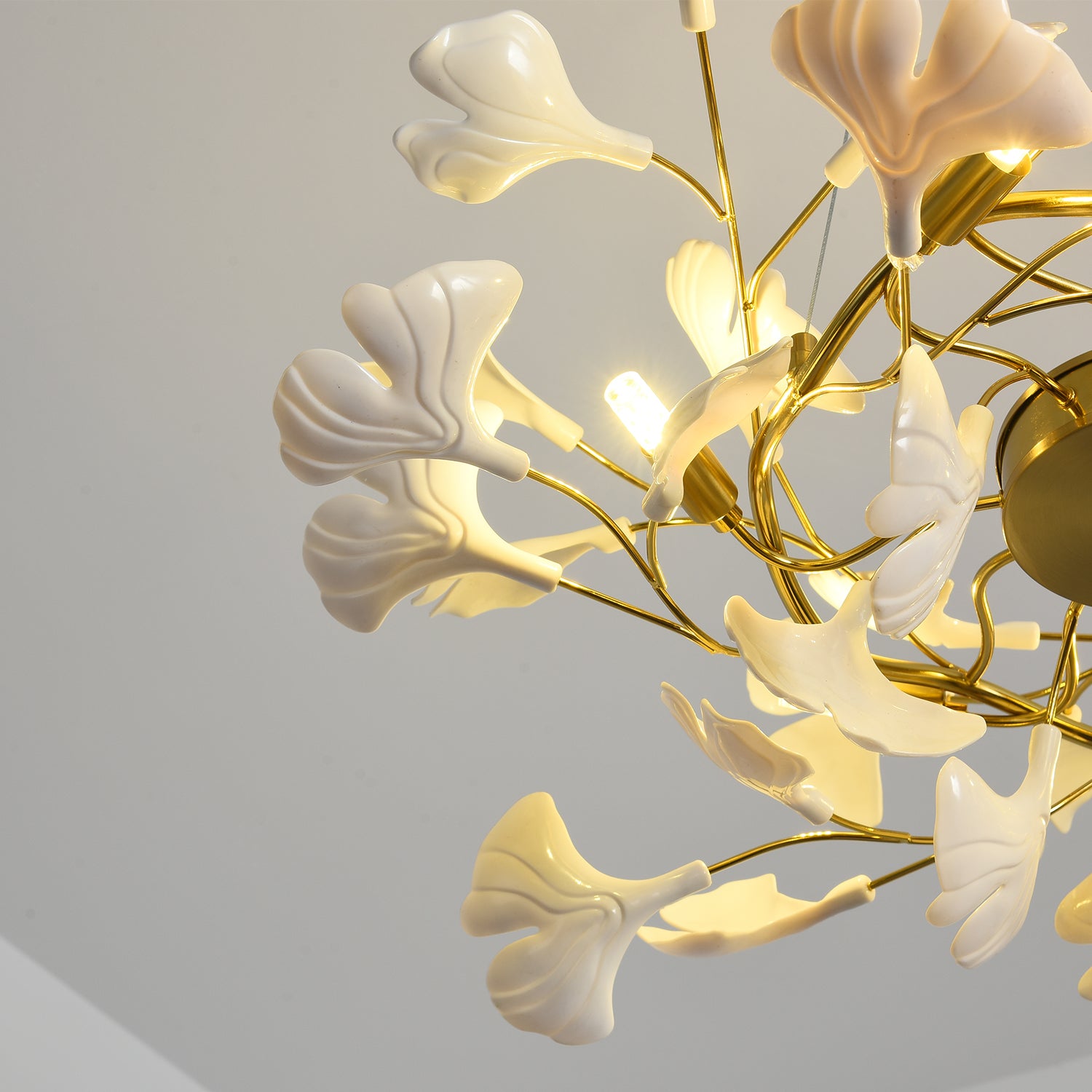 Gingko Kattokruunut ovat vaikuttavia mittatilaustyönä tehtyjä installaatioita, jotka koostuvat käsintehdyistä posliinilehdistä. Keramiikan ja valon vuorovaikutus voi luoda hyvän olon ja lämpimän tunnelman. Valoveistos menee paljon pidemmälle kuin sen toiminnallinen tarkoitus on valaista tilaa. Valaisemalla itsensä se määrittelee oman muotonsa ja läsnäolonsa, ja siitä tulee lumoava taideteos. Elävän kasvin tavoin sillä on luonnollista, dynaamista energiaa, joka sekä rauhoittaa että elvyttää meitä. Installaatioiden suunnittelu kulkee käsi kädessä arkkitehtonisen tilan sekä arkkitehtien ja sisustussuunnittelijoiden ideoiden kanssa.