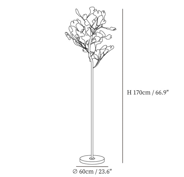 Gingko Floor Lamp ovat vaikuttavia mittatilaustyönä tehtyjä installaatioita, jotka koostuvat käsintehdyistä posliinilehdistä. Keramiikan ja valon vuorovaikutus voi luoda hyvän olon ja lämpimän tunnelman. Valoveistos menee paljon pidemmälle kuin sen toiminnallinen tarkoitus on valaista tilaa. Valaisemalla itsensä se määrittelee oman muotonsa ja läsnäolonsa, ja siitä tulee lumoava taideteos. Elävän kasvin tavoin sillä on luonnollista, dynaamista energiaa, joka sekä rauhoittaa että elvyttää meitä. Installaatioiden suunnittelu kulkee käsi kädessä arkkitehtonisen tilan sekä arkkitehtien ja sisustussuunnittelijoiden ideoiden kanssa.